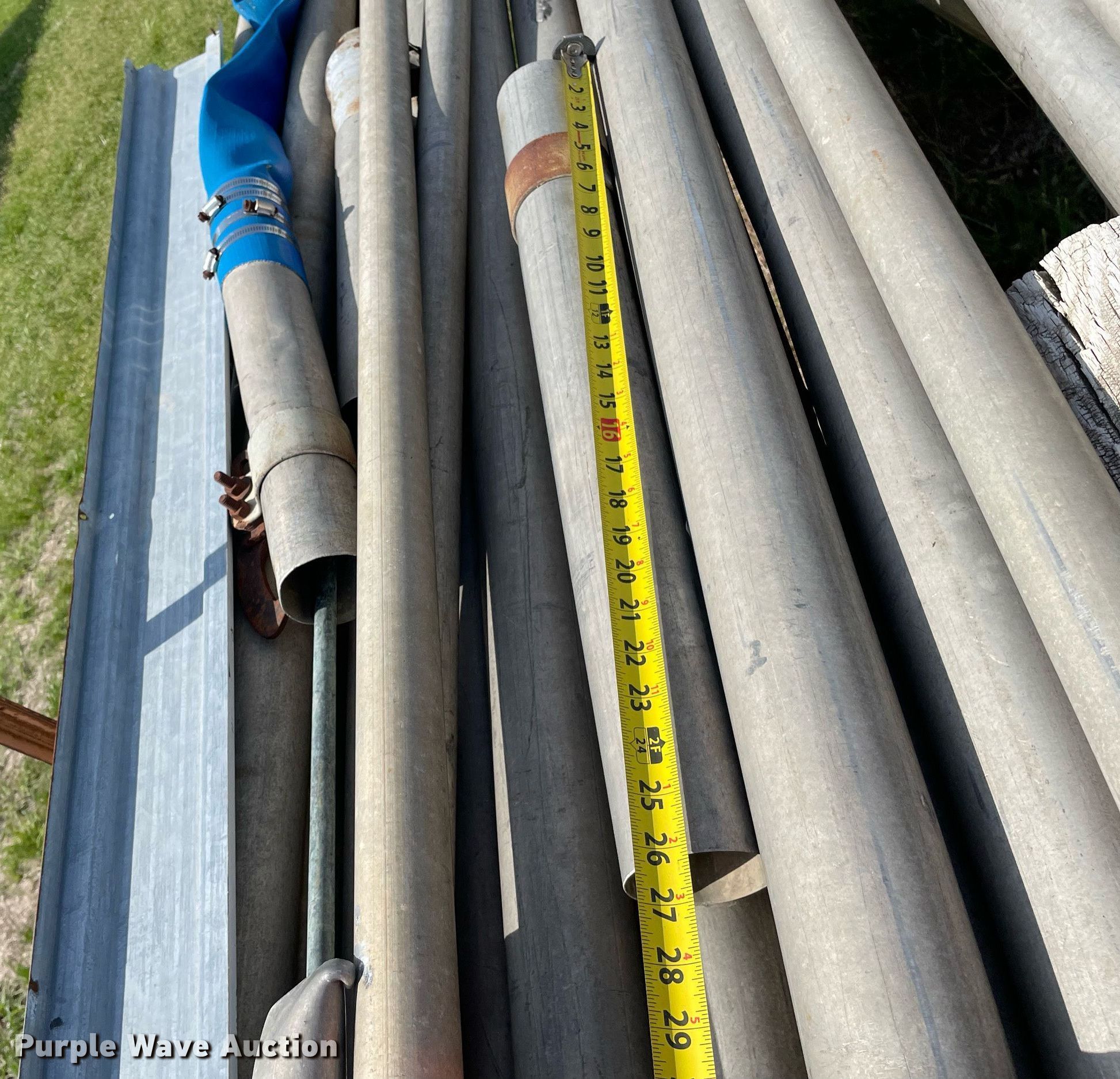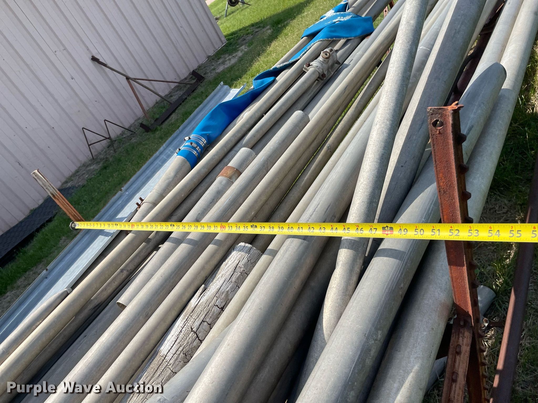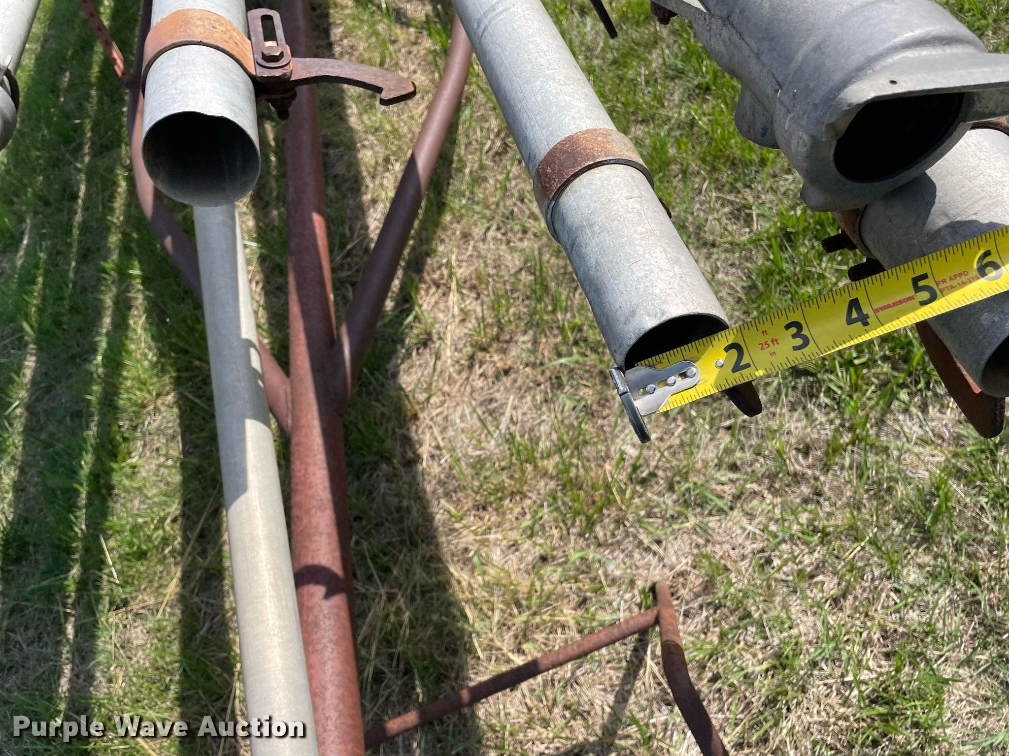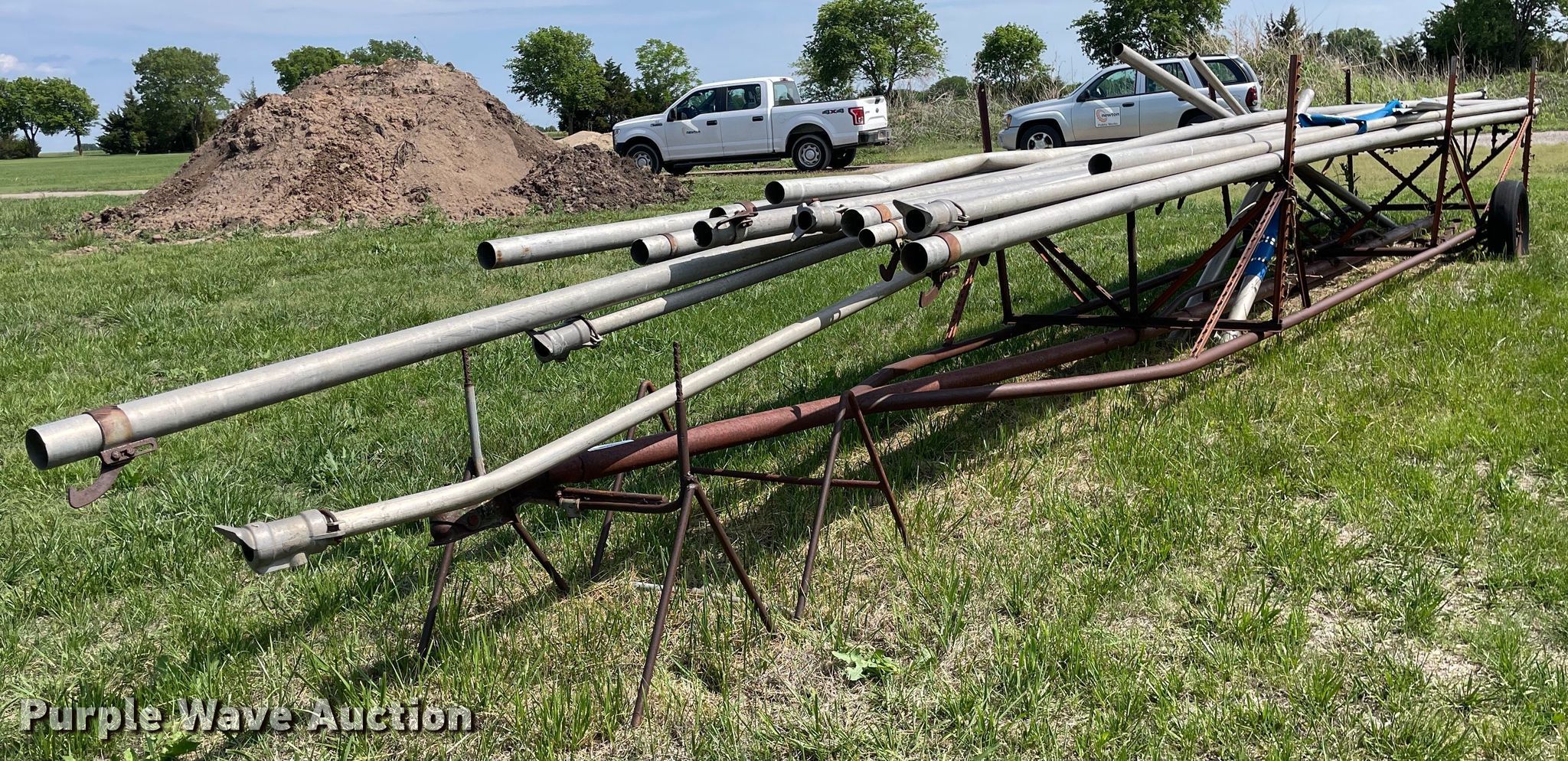 Purple Wave is selling a used Trailer Other in Kansas. This item is a Shop built irrigation trailer with the following: Overall: 32' L x 52" W, Approx. 20 pieces of pipe, Widths range: 2"-3", Lengths range: 26"- 39'