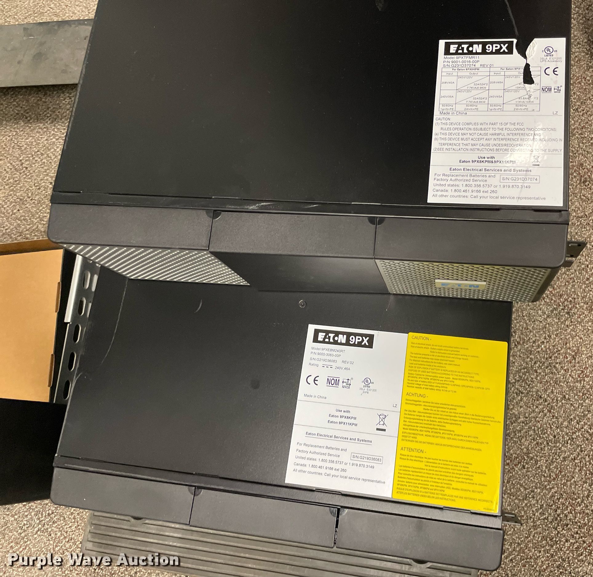 Purple Wave is selling a used Electronics in Kansas. This item is a Eaton 9PX battery backup system with the following: (2) battery backups, Controller, Rack
