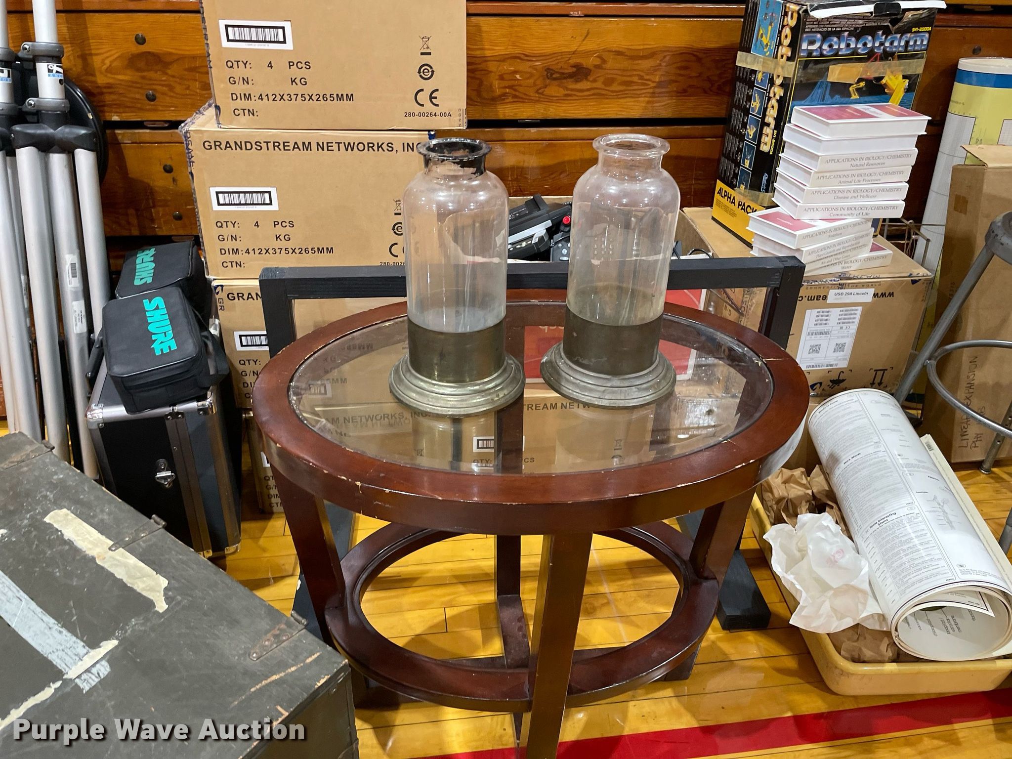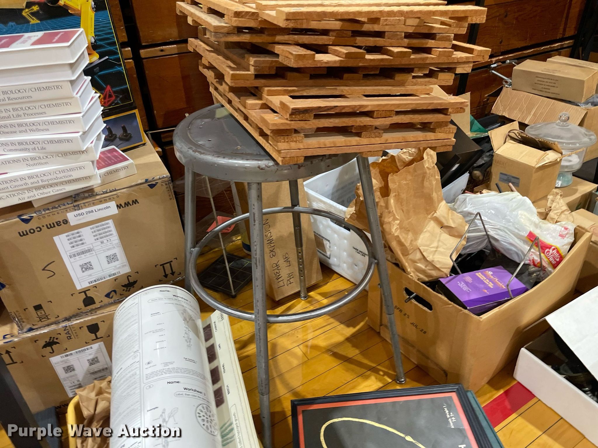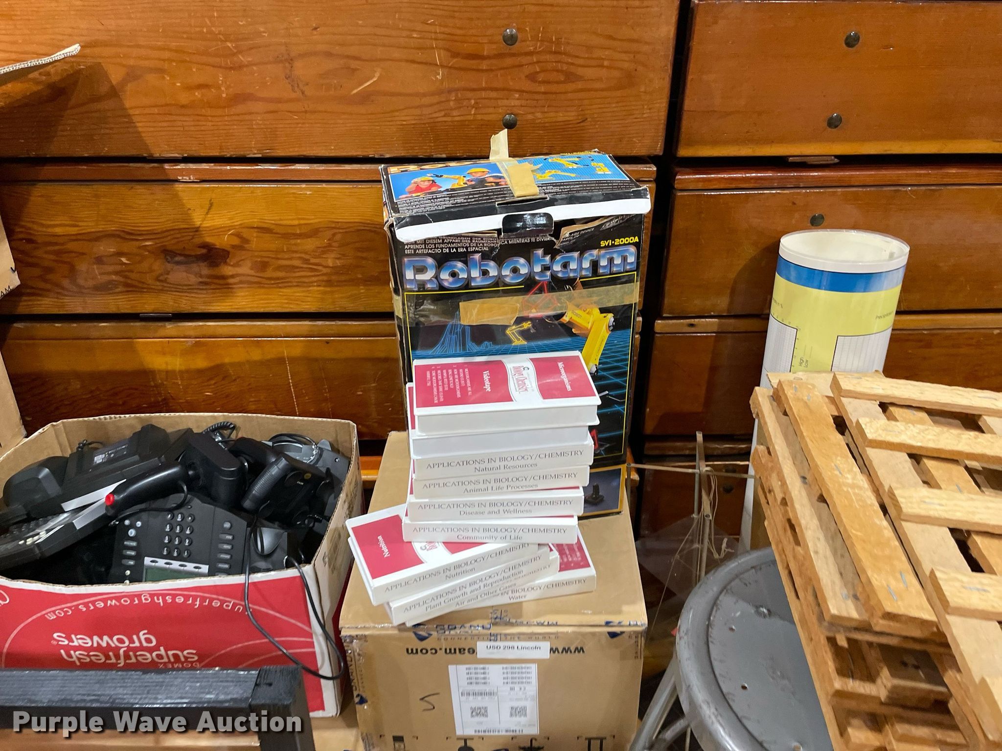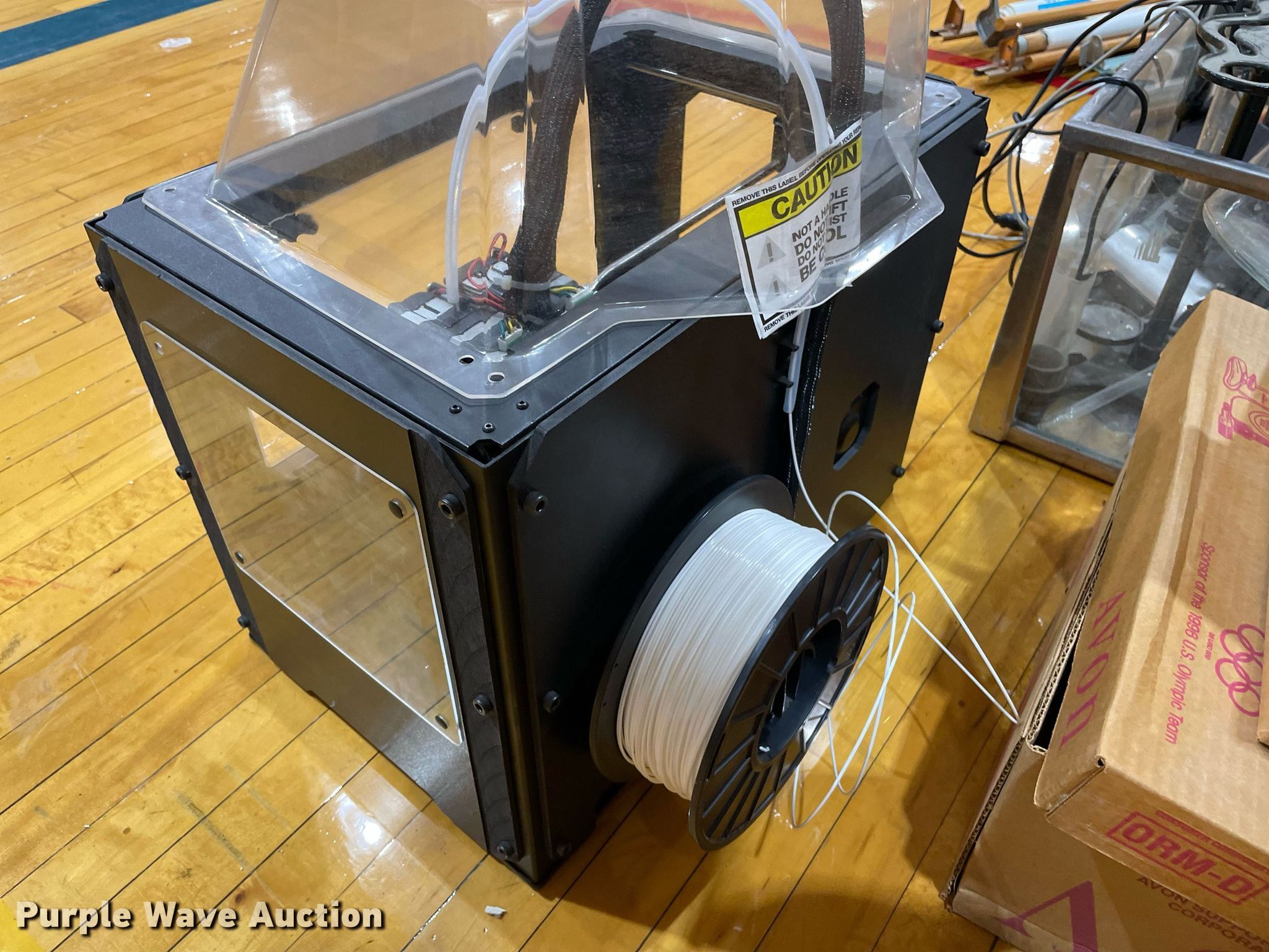 Purple Wave is selling a used Office Supplies and Equip. in Kansas. This item is a Office supplies and equipment with the following: Maker-Bot Replicator 2X 3D printer, Science equipment, Microscopes, School books, (7) overhead projectors, (2) Sargent-Welch PH8000, Maps, (2) tripods, (2) rolling carts, End table, Phones, Stool and more