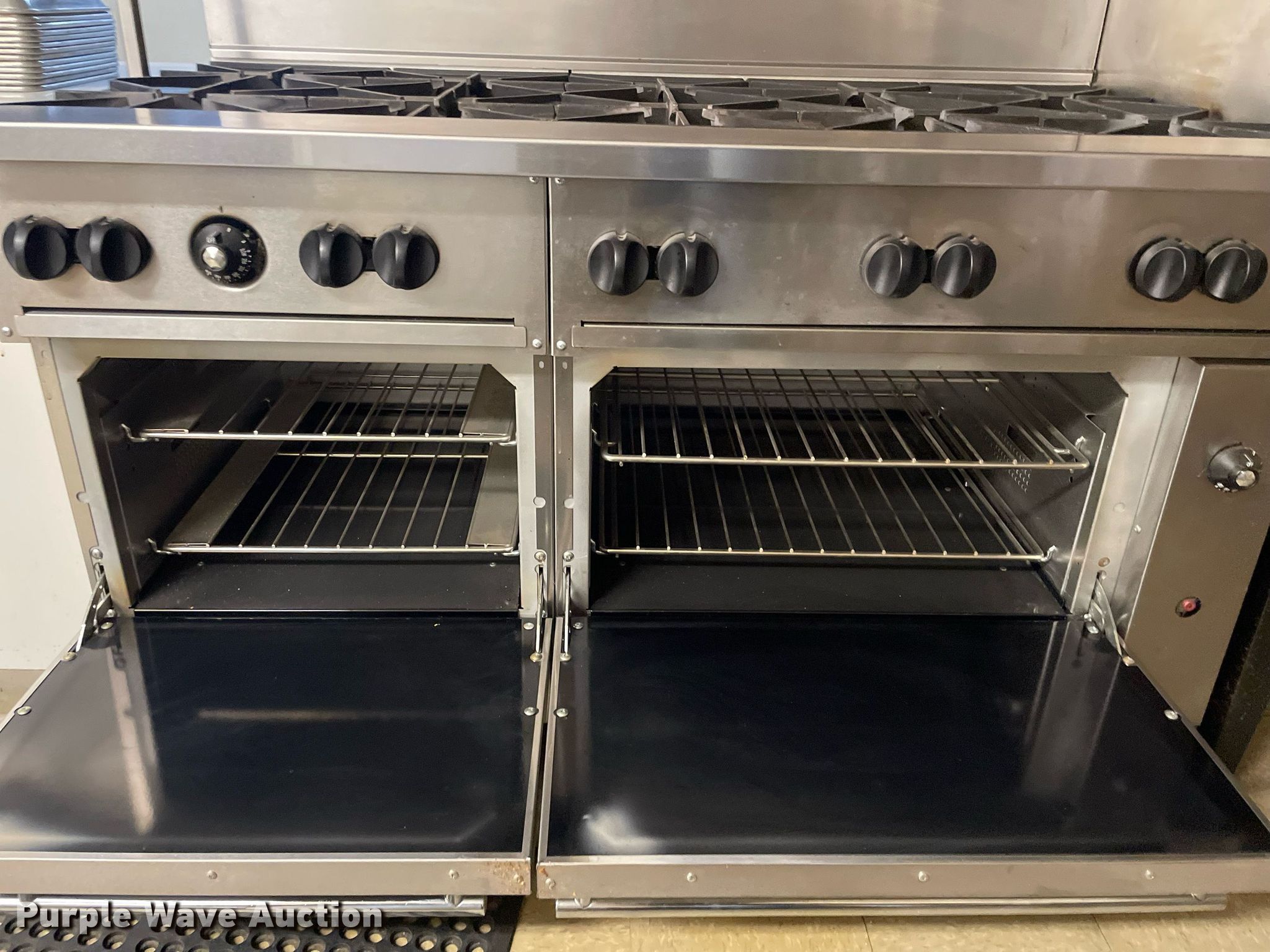 Purple Wave is selling a used Restaurant Equip. in Kansas. This item is a Vulcan range with the following: (10) burners, Natural gas fired