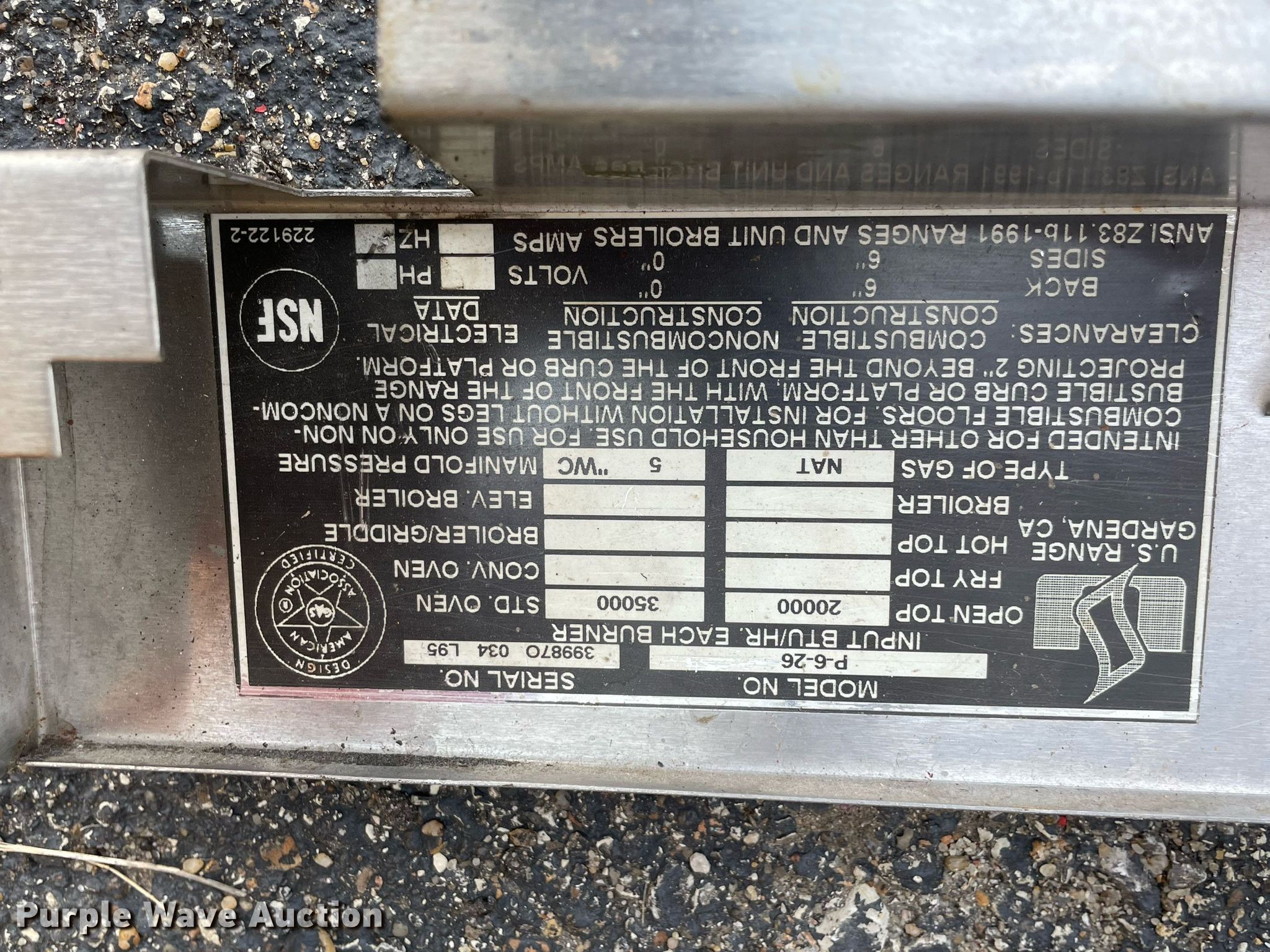 Purple Wave is selling a used Appliances in Kansas. This item is a (3) appliances with the following: US Range P-6-26 range, Natural gas fired, Vulcan oven, Natural gas fired, Blodgett oven, Natural gas fired