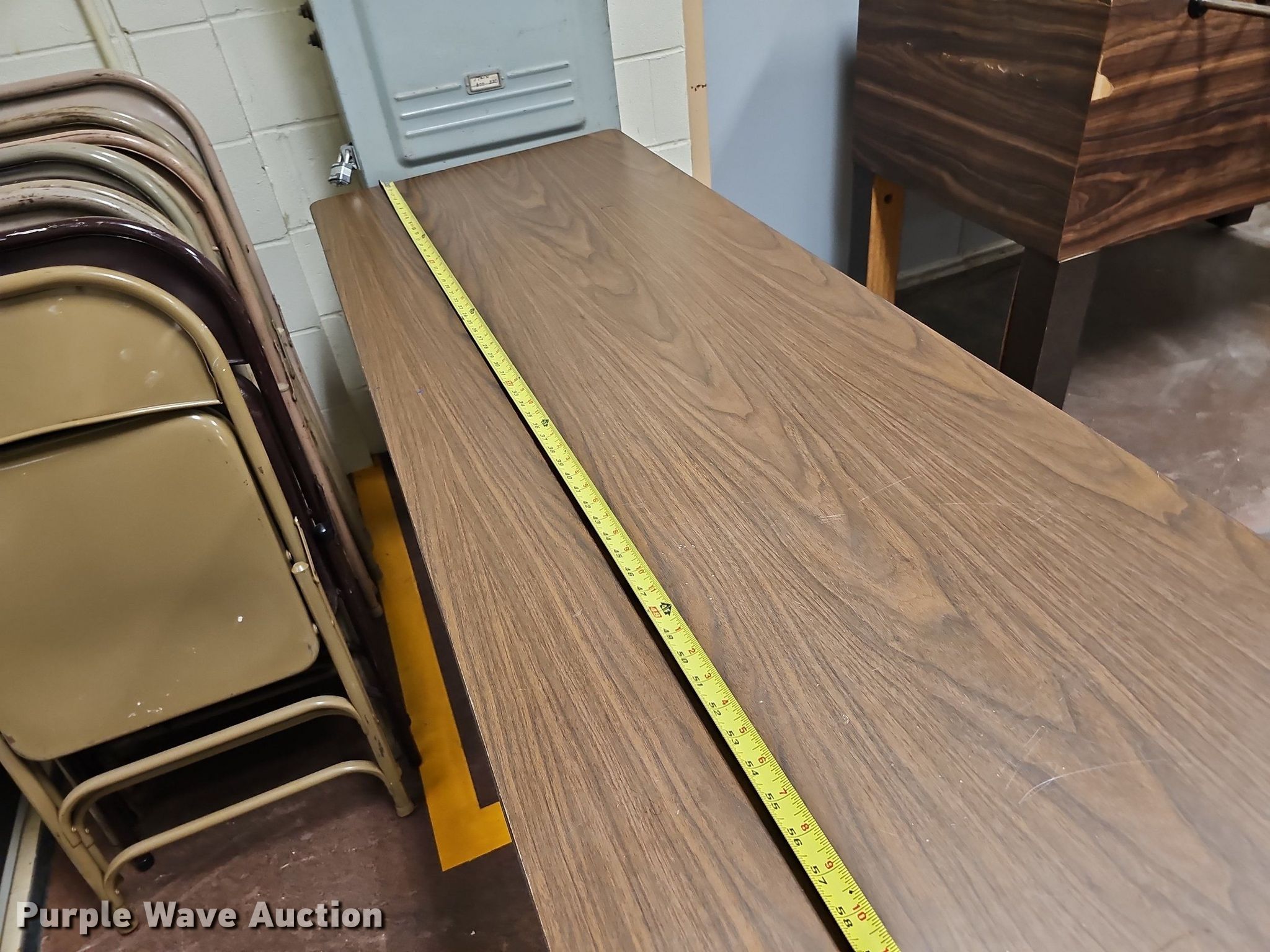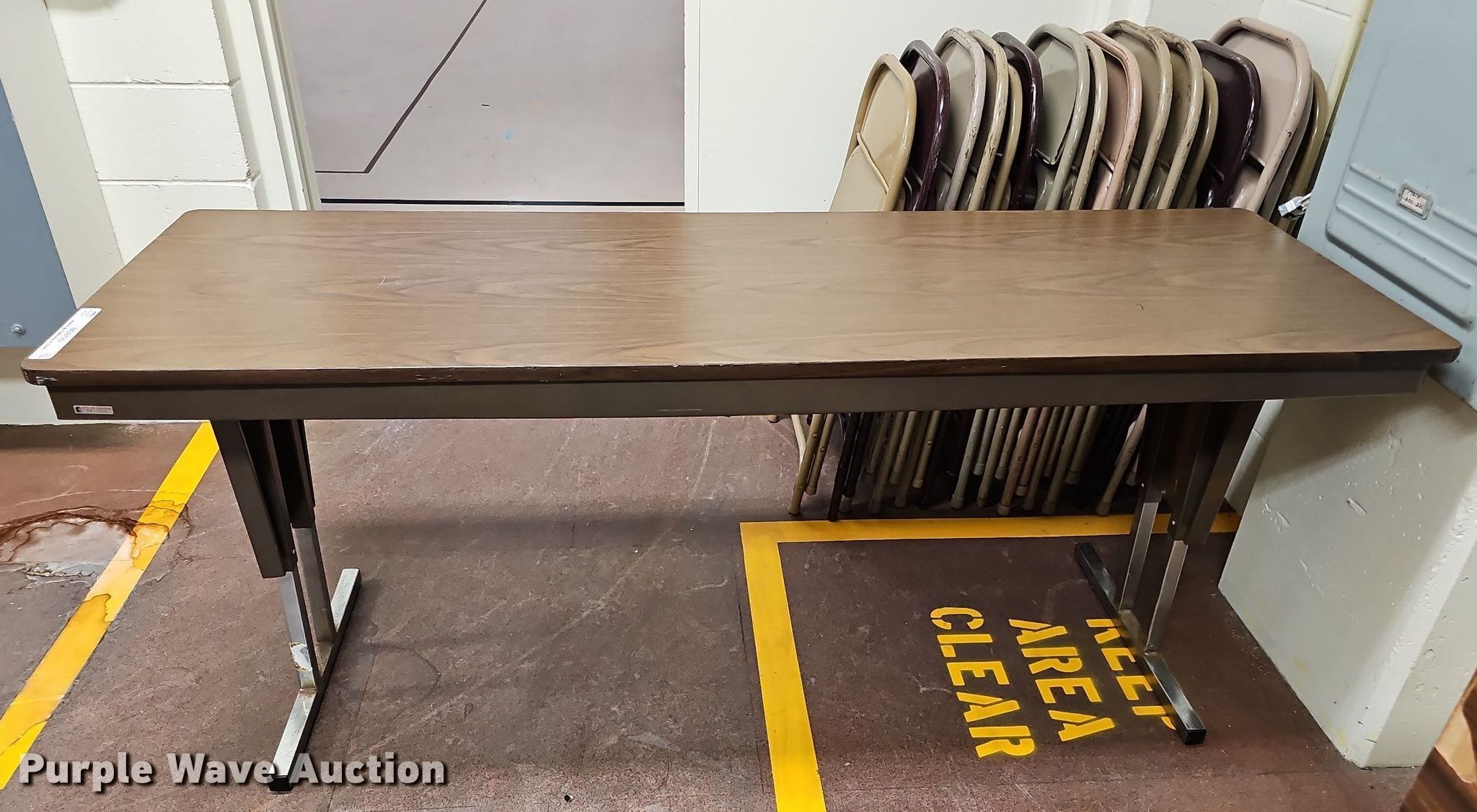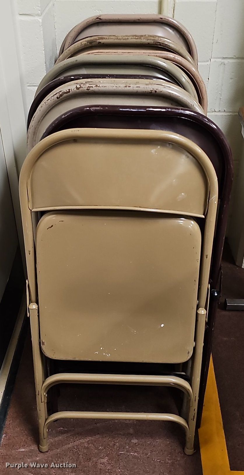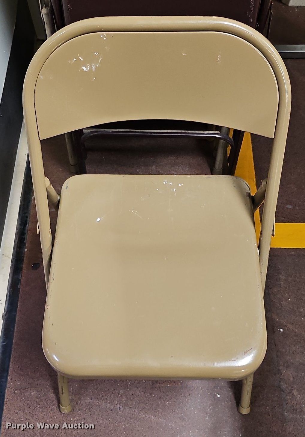 Purple Wave is selling a used Furniture in Nebraska. This item is a Furniture with the following: Approx. 16 folding chairs, Folding table, 6' L x 24"W x 30"H