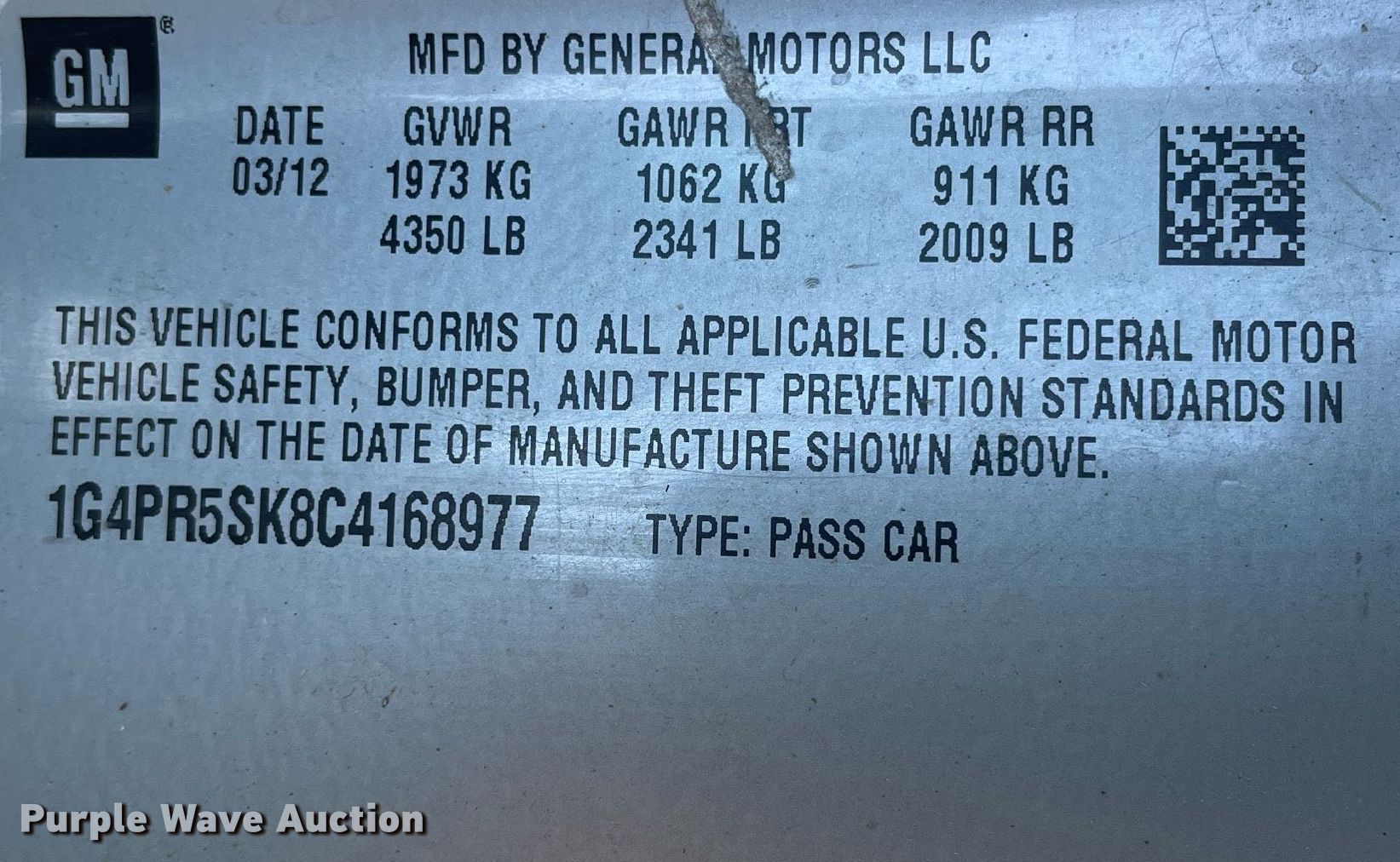 - VIN: 1G4PR5SK8C4168977