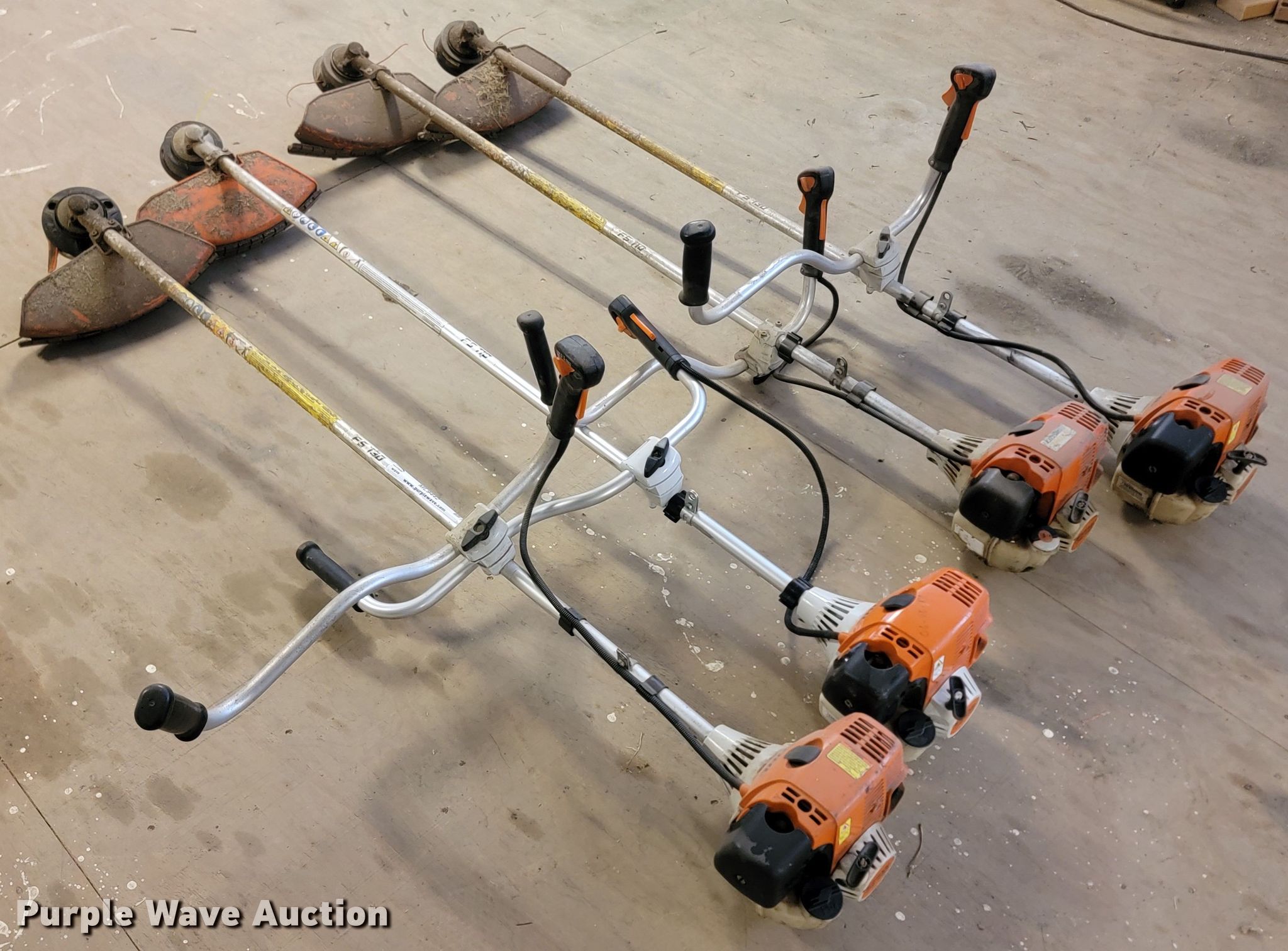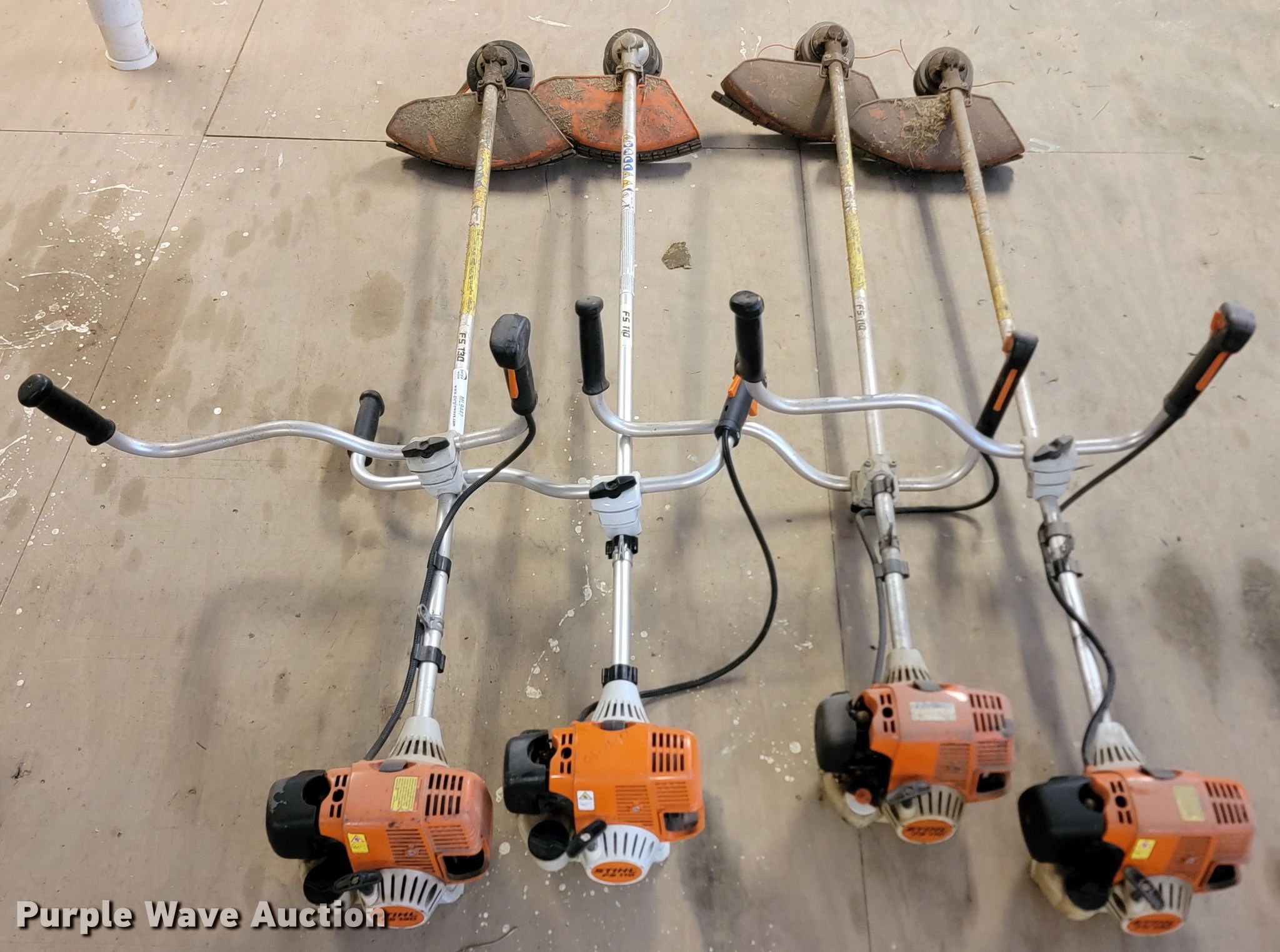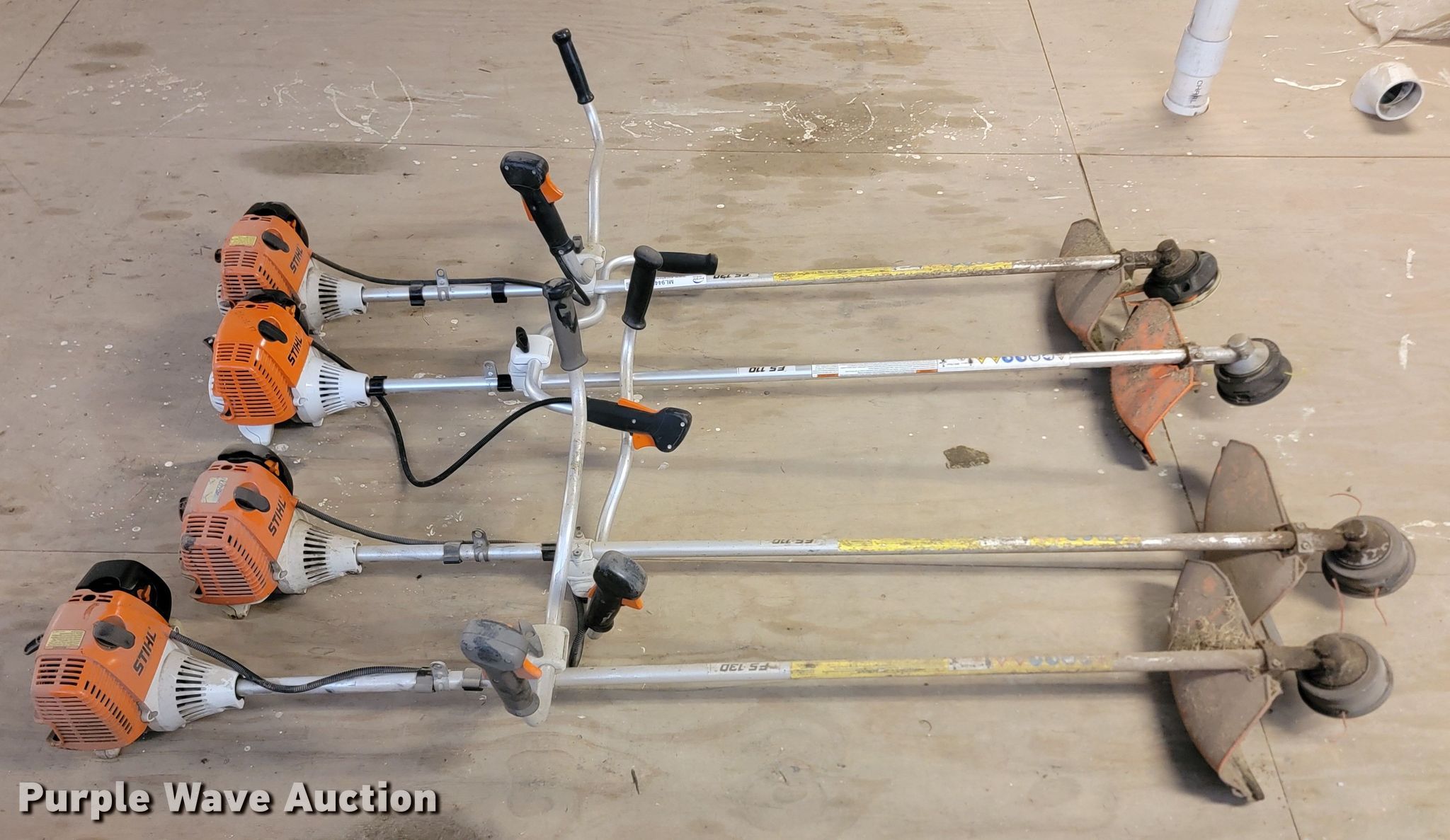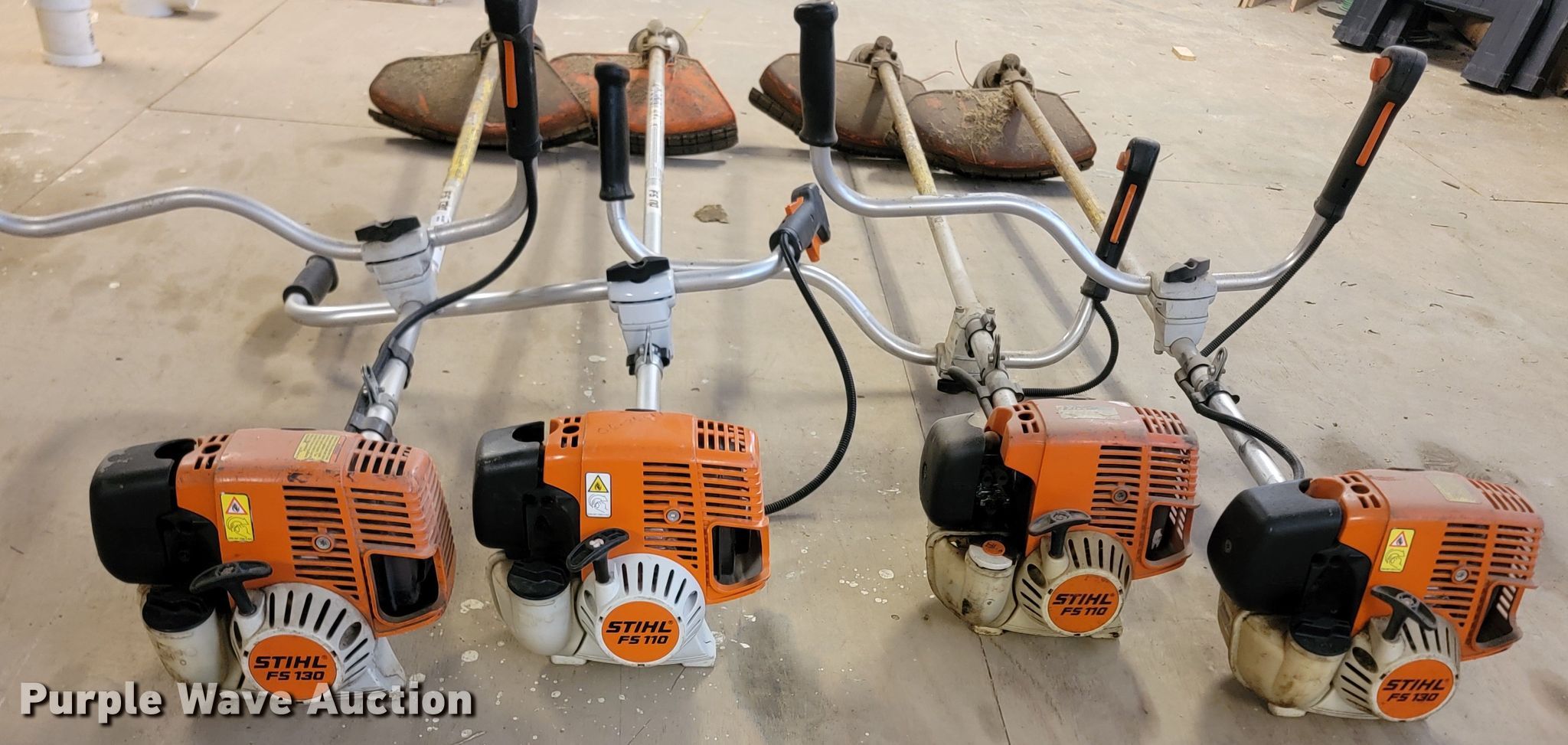 Purple Wave is selling a used Lawn and Garden in South Dakota. This item is a (4) Stihl string trimmers with the following: Models, (2) FS110, (2) FS130, Single cylinder gas engines
