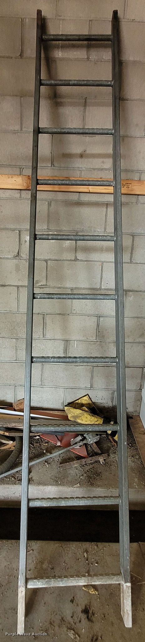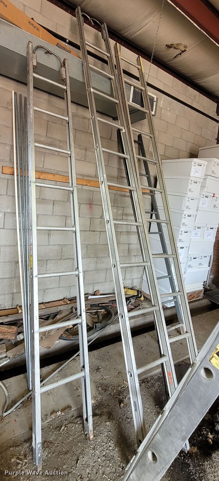 Purple Wave is selling a used Tools in Kansas. This item is a (5) ladders with the following: (2) attic, 14', 11', (2), 13', 10', Extension, 16'