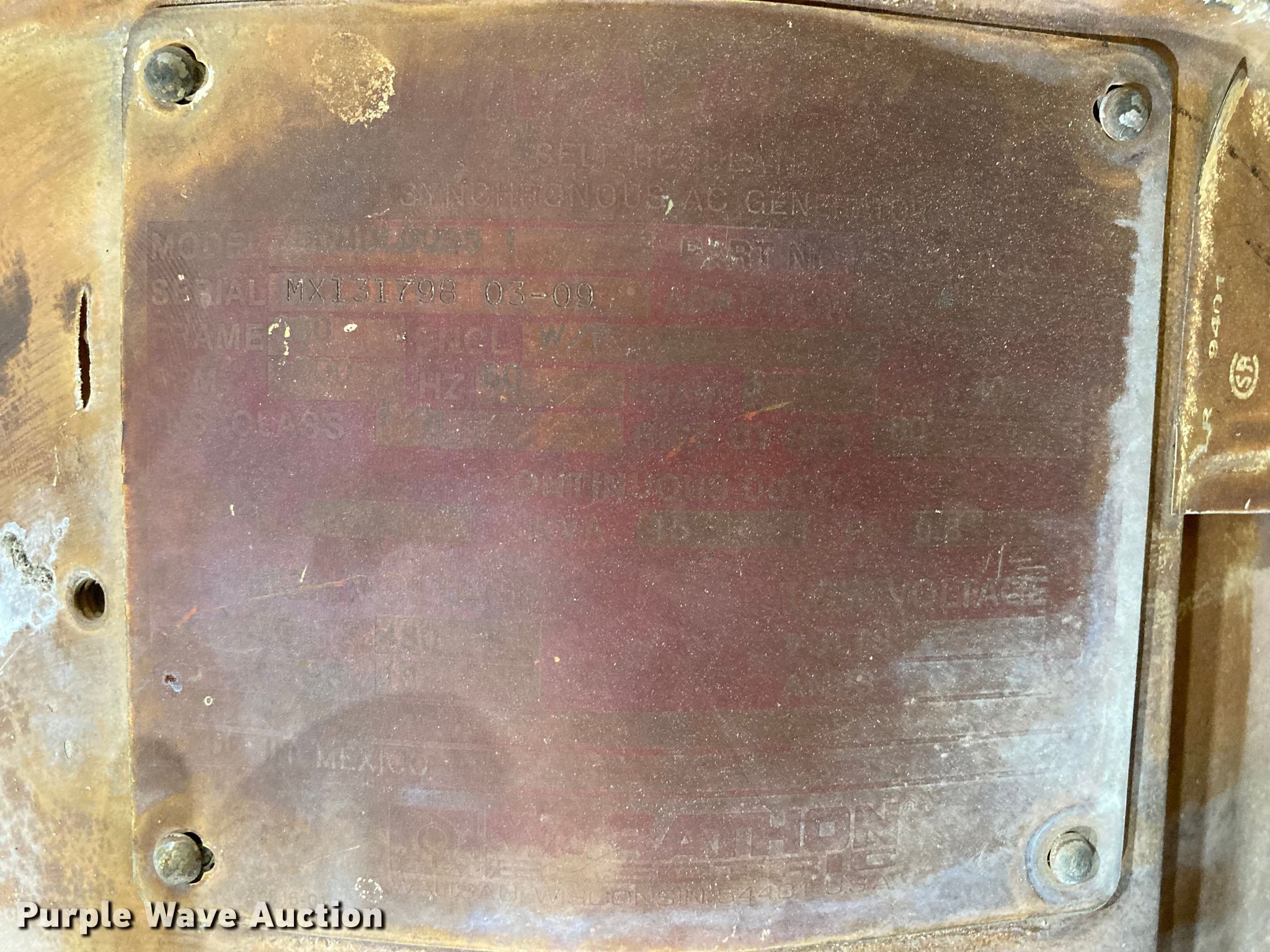 John Deere 4045TF285B irrigation power unit. Hours: 4,532 on meter, Cylinders: 4, Fuel type: Diesel. Generator Marathon 280MDL0055, Serial: MX131798, Volts: 480, kW: 12, kVA: 15. Midwest Concrete Materials. Manhattan, KS 66502