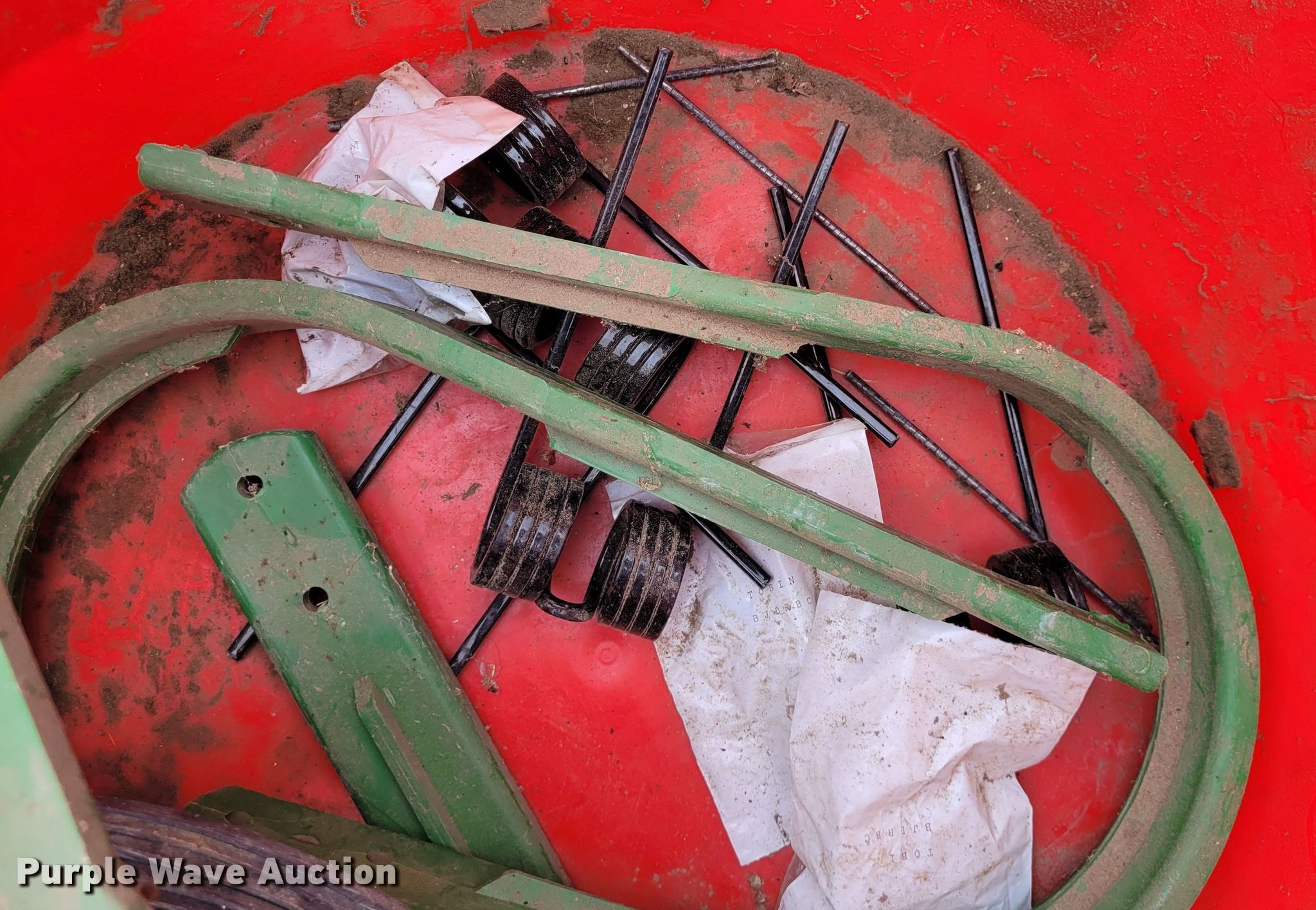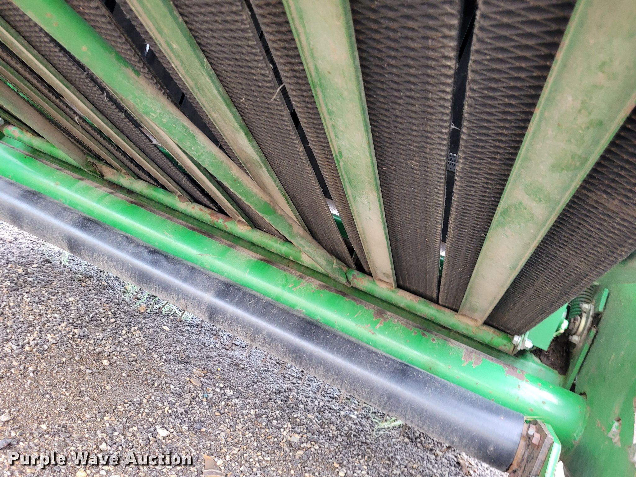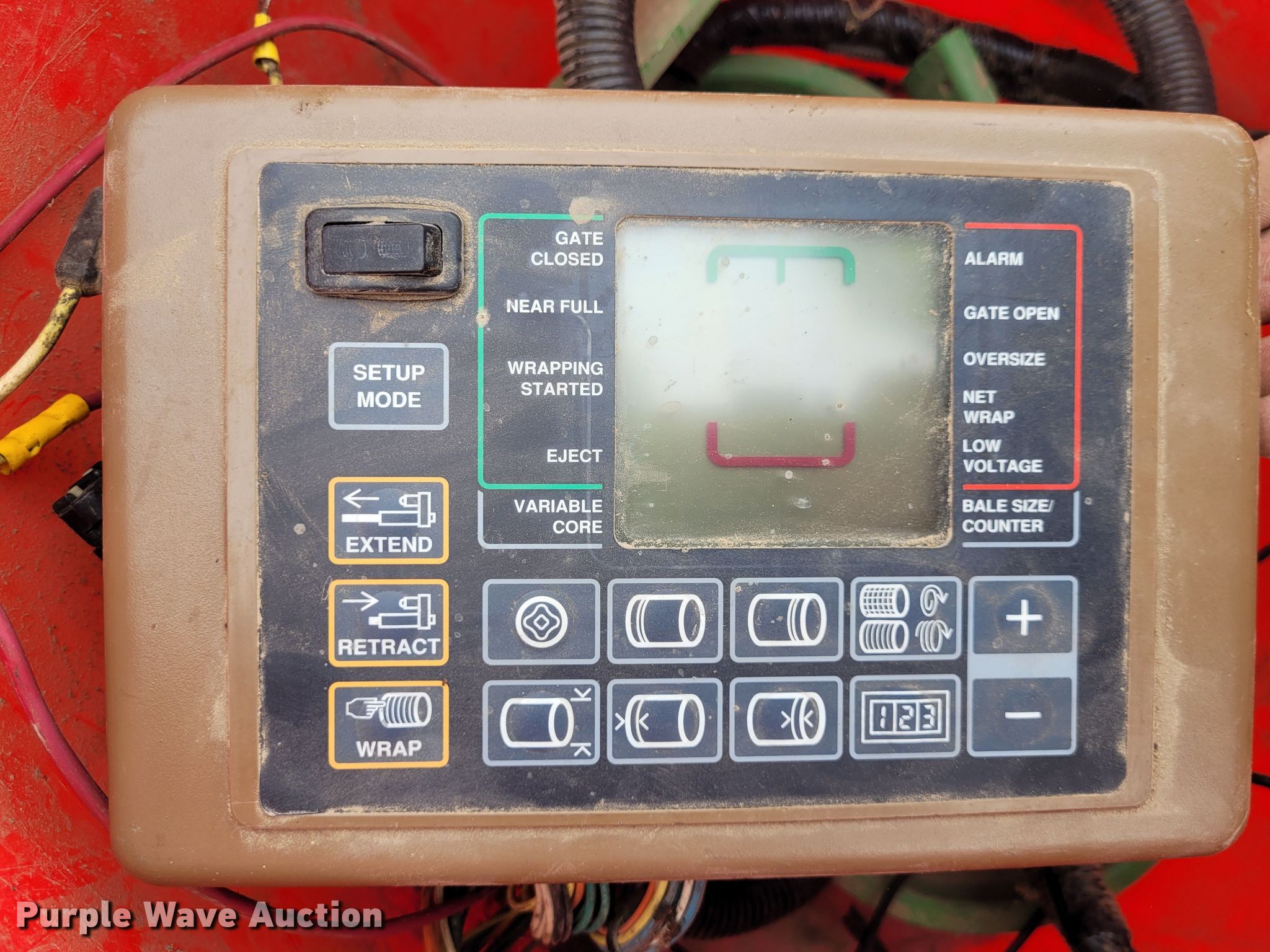 2000 John Deere 566 round baler. Bale count: 17,859, Serial: E00566X147008. Features PTO: 1000, Monitor John Deere 1700, Transport lights, Gathering wheels, Gauge wheels Size: 16x6.50-8, Pickup width: 5', Hydraulic pickup lift, Bale size: 5'x6', Auto-tie, Net-wrap, Bale kicker. Tires Size: 31x13.5-15, Brand: Samson. Notes Additional parts Belt, Guards, Teeth. Wamego, KS 66547