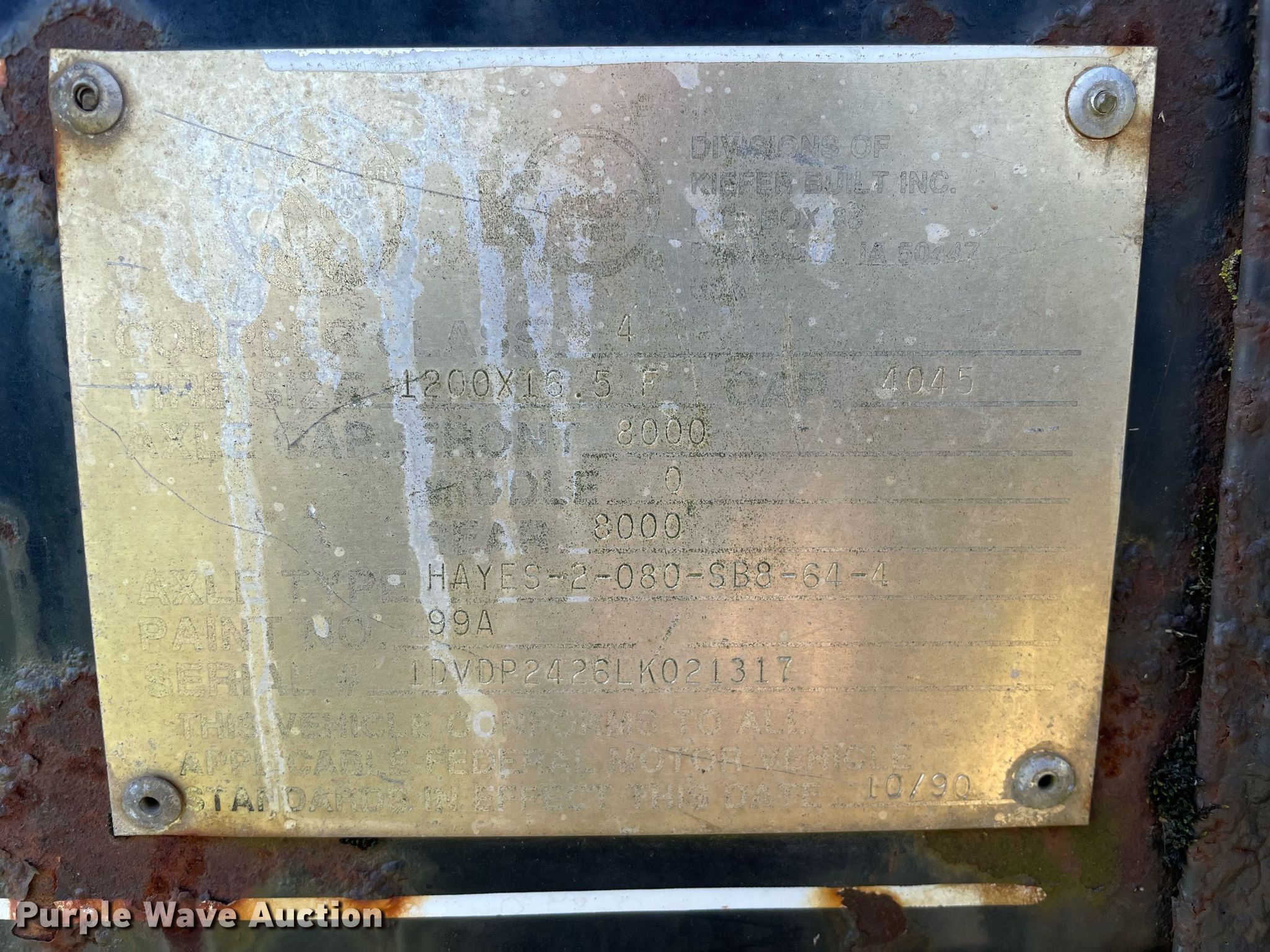 1990 Kiefer Built livestock trailer. VIN: 2DVDP2426LK021317. Dimensions Overall: 31' L x 90" W, Body: 25' L x 82" W, Side height: 80". Chassis Hitch: Gooseneck, Landing gear: Single, Suspension: Spring, Axles: Tandem, GAWR: 8,000 lbs. Tires Steel wheels, Size: 12-16.5. Illinois title. Title distribution may be delayed up to 14 days from verification of funds. Christensen Family Farms. 2209 North 460th Street. Kansas, IL 61933