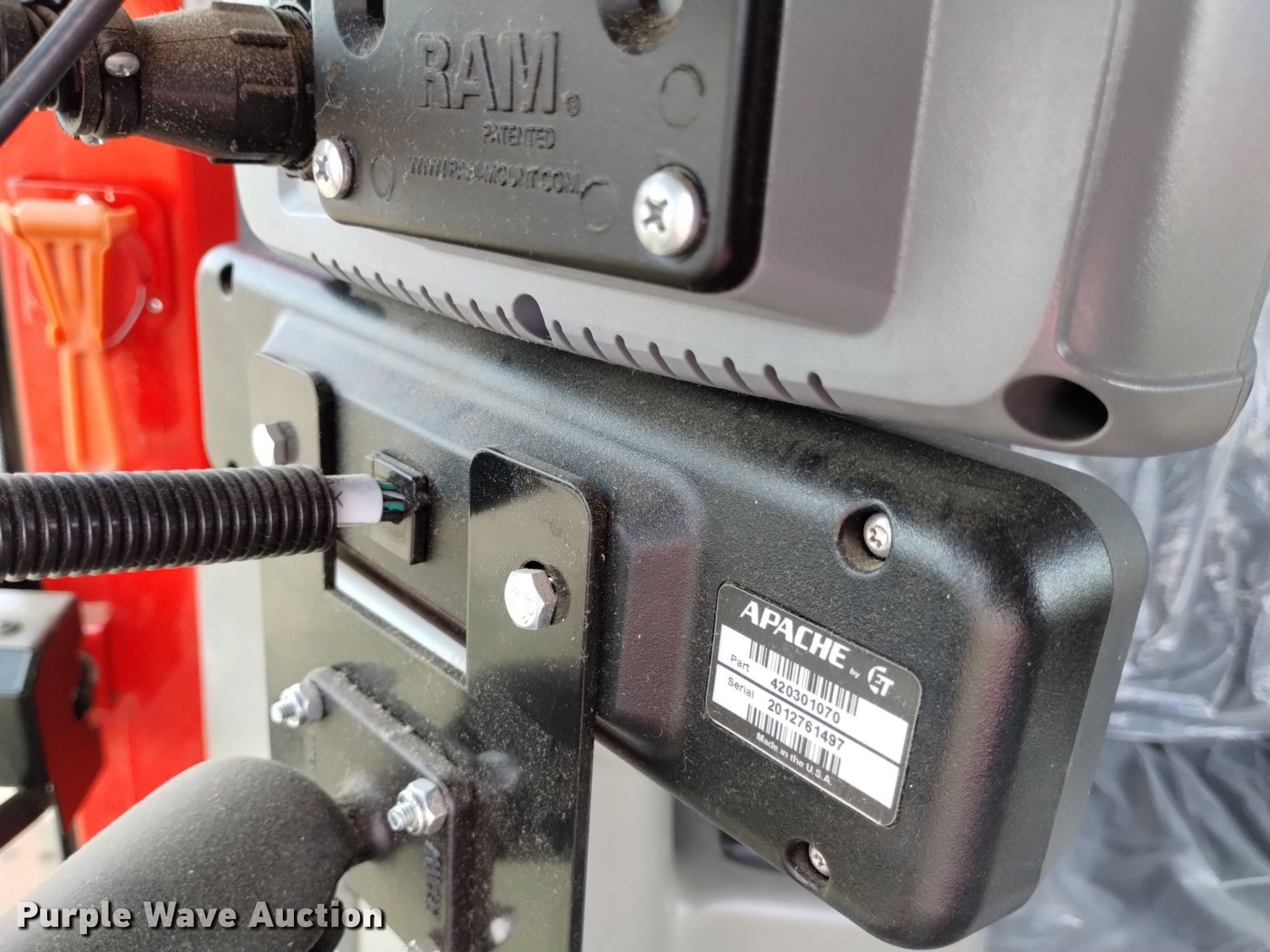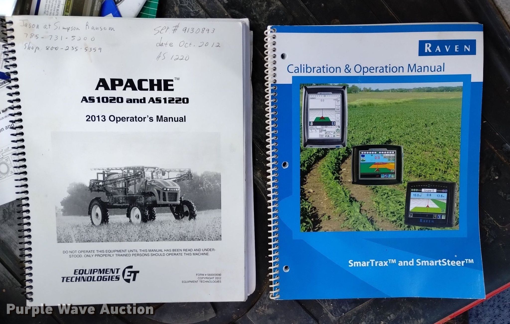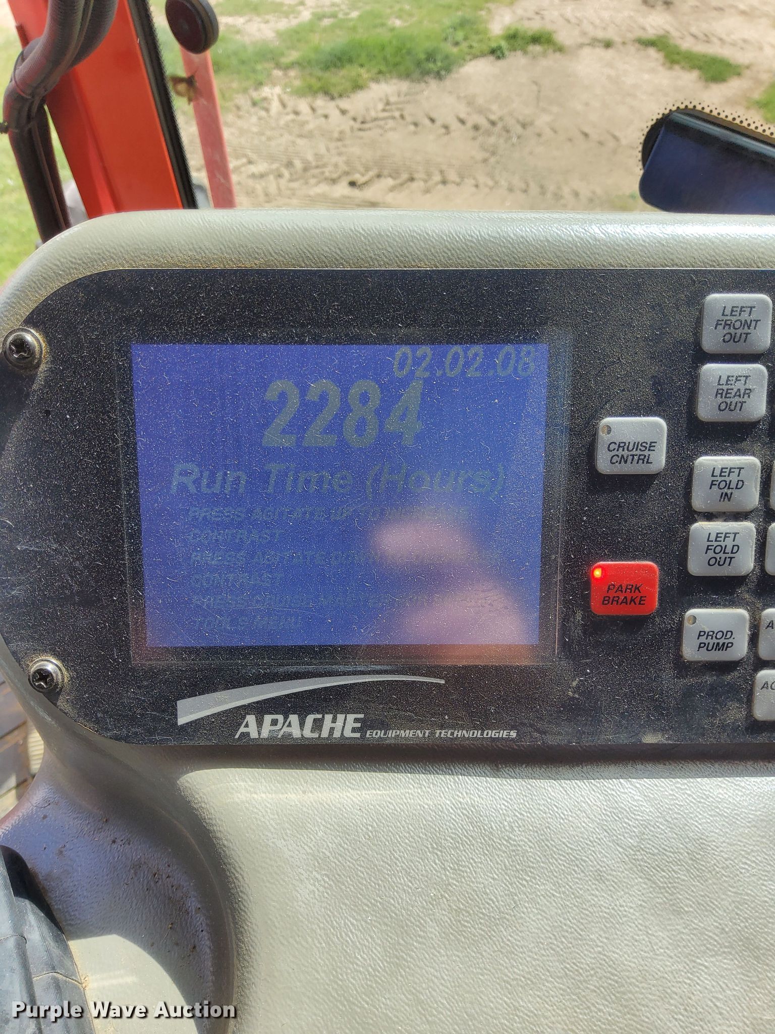 2013 Apache AS1220 sprayer. Engine hours: 2,284 on meter, Serial: 9130893. Engine Cummins , Serial: 73455849, Displacement: 6.7L, Cylinders: 6, Fuel type: Diesel. Transmission Powershift, 6F-1R. Operators station AC, Heat. Features Hydraulic ladder, Solution tank Capacity: 1,200 gallons, Type: Poly, Capacity: 5 gallons, Type: Poly, Rinse tank Capacity: 100 gallons, Boom Width: 100', Sections: 5, Hydraulic boom fold, Automatic height control, Nozzle Spacing: 30", Nozzle bodies: 3-way, Electronics GPS monitor Equipment Technologies EnvizoPro, GPS receiver Raven, Spray controls Raven, Auto steer. Tires Front: 380/80R38, Rear: 380/90R46, Row crop tires. 4605 Rd V. Flagler, CO 80815
