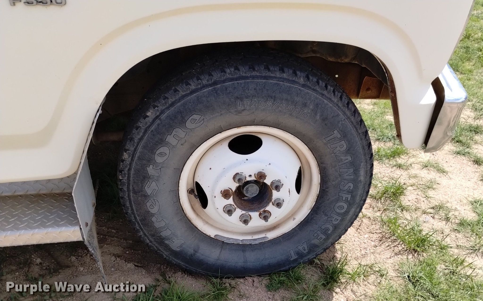 1981 Ford F350 flatbed pickup truck. Miles: 20,523 on odometer, VIN: 1FDJF37Z1BKA33360. Engine Displacement: 6.6L V8 OHV, Cylinders: 8, Fuel type: Gas. Transmission Manual, Speed: 4. Interior Heat. Features Flatbed 12' L x 94" W. Tires Size: 235/85R16. Notes Windshield chipped or cracked. Colorado title. Title distribution may be delayed up to 14 days from verification of funds. 4605 Rd V. Flagler, CO 80815