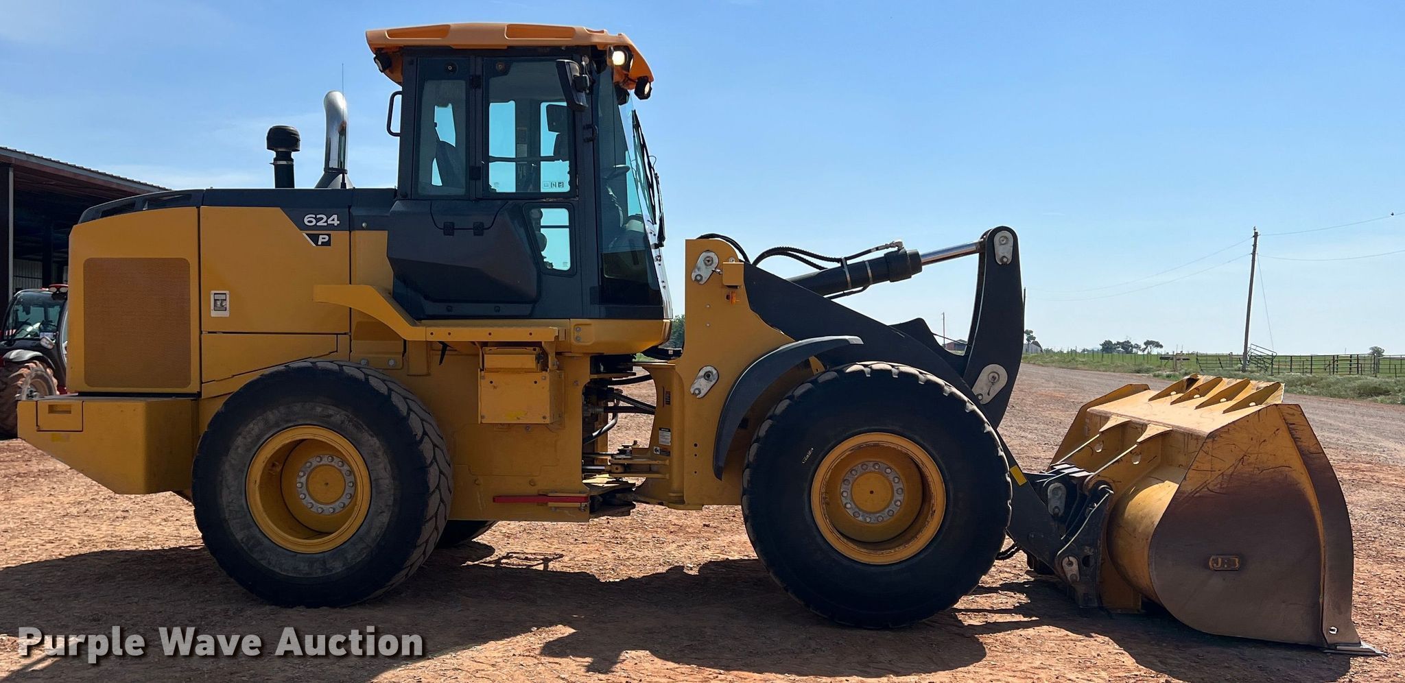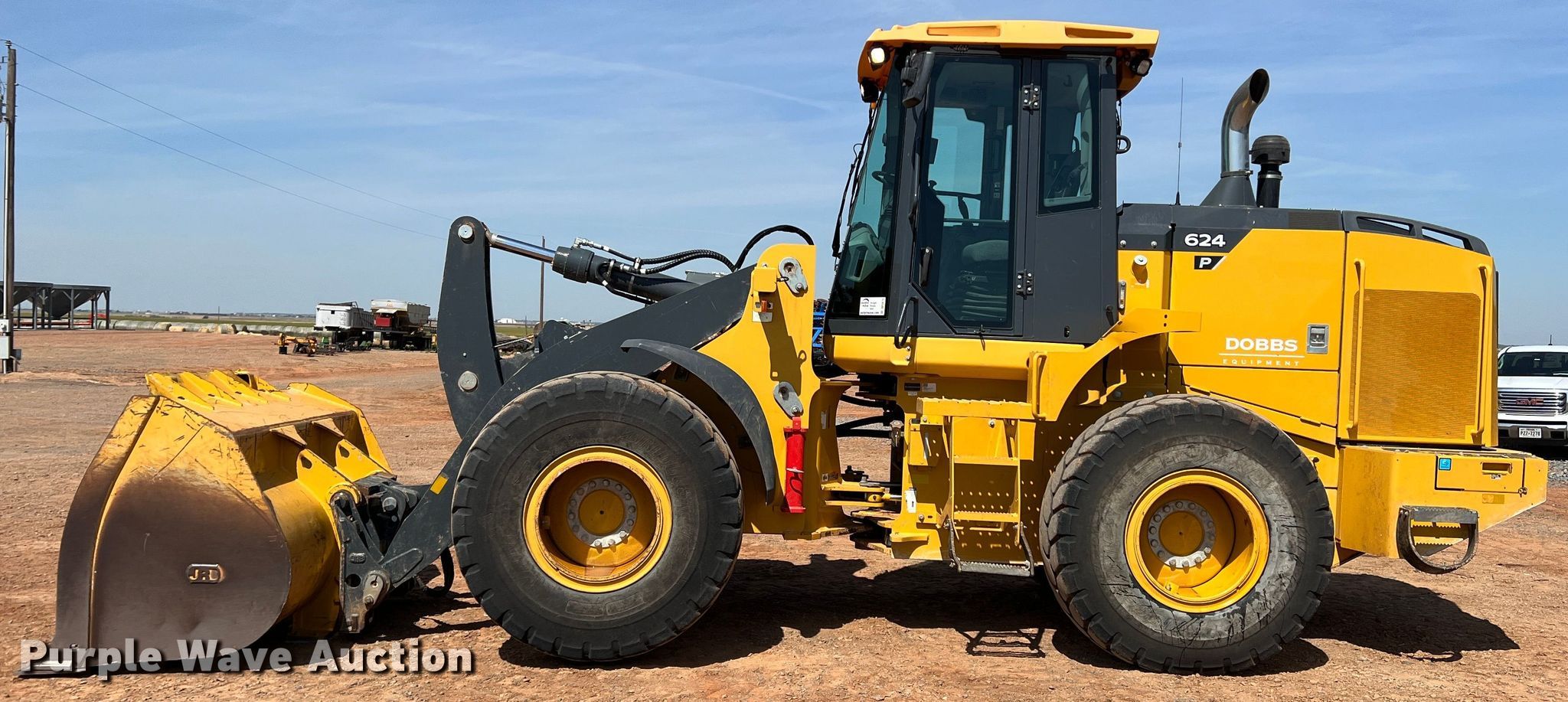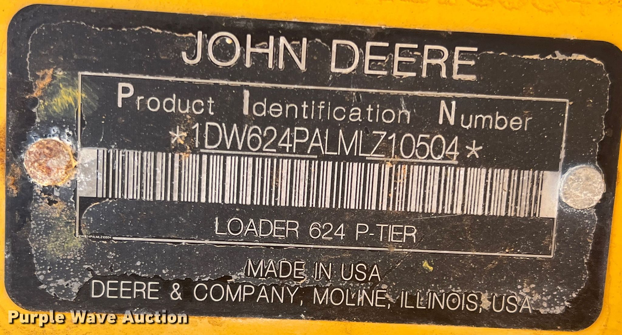Purple Wave is selling a used Wheel Loader in Oklahoma. This item is a 2021 John Deere 624 P-Tier wheel loader with the following: Hours: 3,444 on meter, Miles or hours may vary, unit still in use, Serial: 1DW624PALMLZ10504