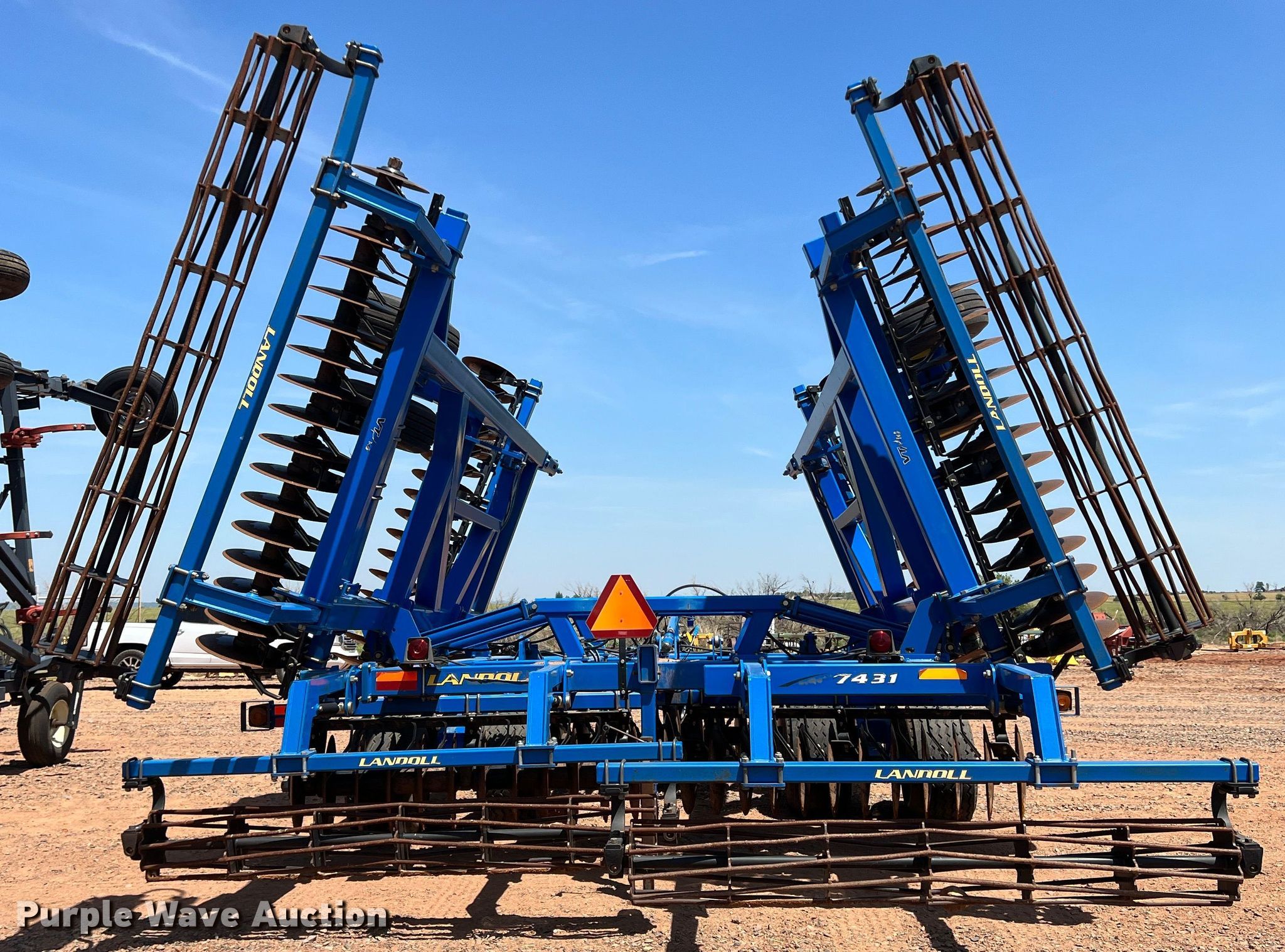 Purple Wave is selling a used Vertical Tillage in Oklahoma. This item is a 2012 Landoll 7431-33 vertical tillage with the following: Overall width: 33', Serial: 74E1203000