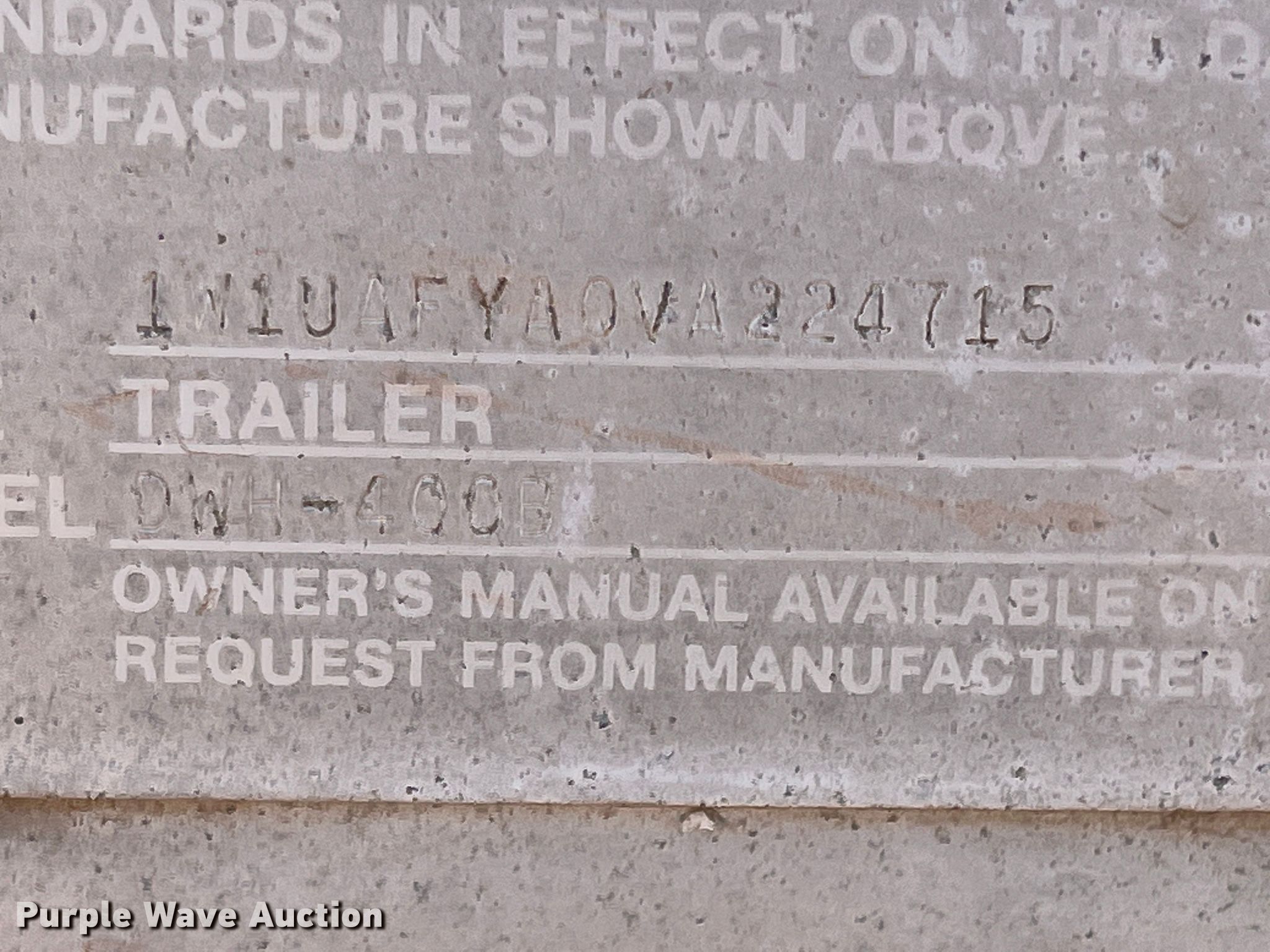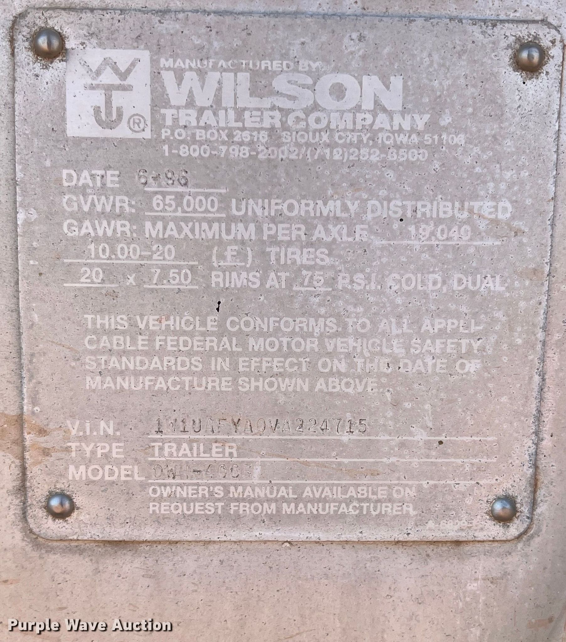 Purple Wave is selling a used Grain or Commodity Trailer in Oklahoma. This item is a 1997 Wilson DWH-400B grain trailer with the following: VIN: 1W1UAFYA0VA224715