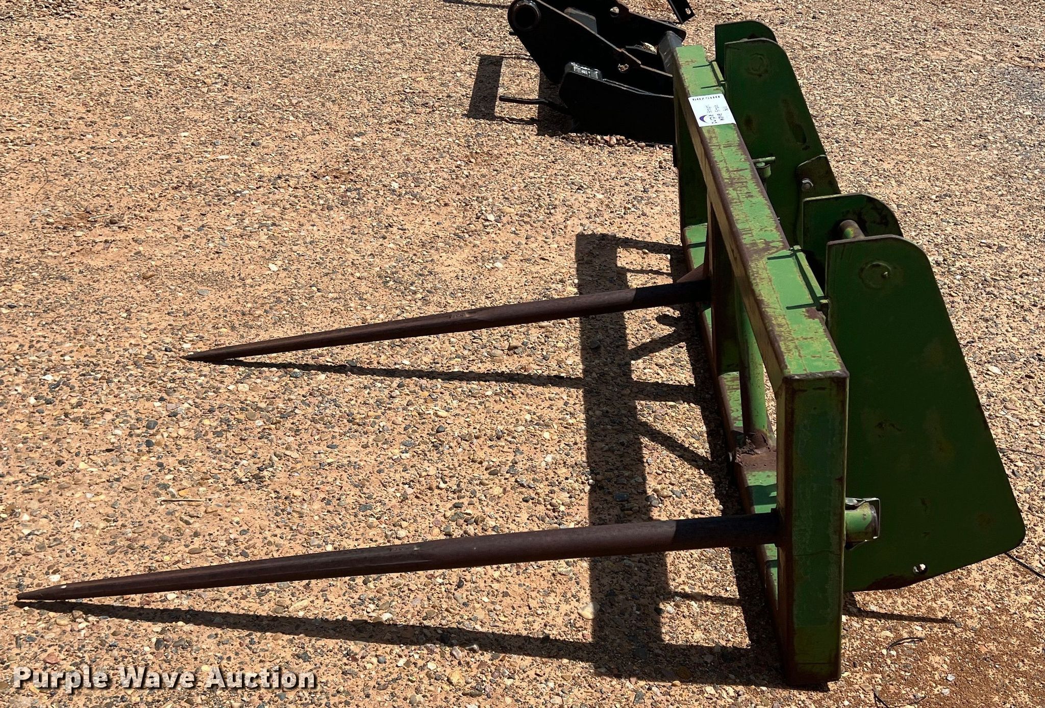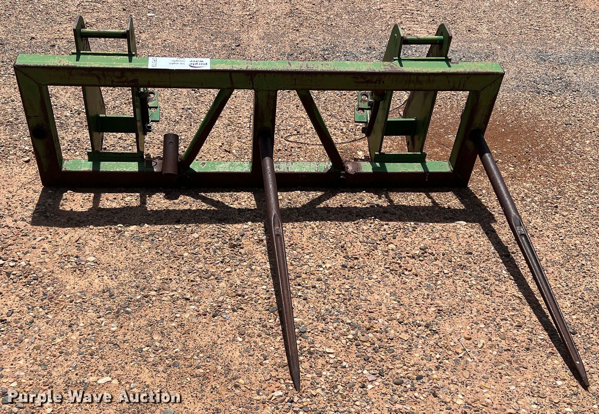 Purple Wave is selling a used Ag Tractor Loader or Attach. in Oklahoma. This item is a 41"L bale spear with the following: 41"L bale spear. Miller Family Farms LLC. 21246 SCR 162 Rd. Headrick, OK 73549