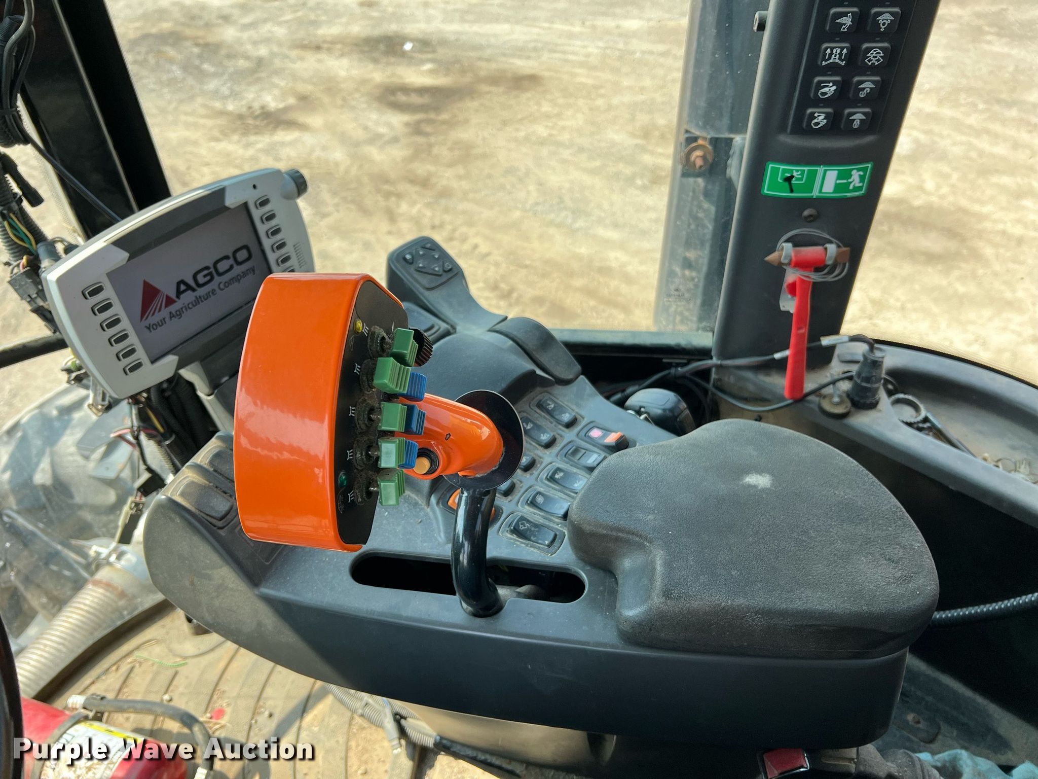RoGator RG1100 applicator. Engine hours: 4,853 on meter. Engine AGCO Sisu Power 84AWI 716, Serial: X31562, Displacement: 8.4L, Cylinders: 6, Fuel type: Diesel, kW: 252. Transmission Hydrostatic, Four wheel drive. Chassis Hydraulic axle width adjust. Operators station AC, Heat. Features Hydraulic ladder, Dry fertilizer spreader bed New Leader 54596801-11, Serial: 133736, Length: 11', Dual spinners, Conveyor belt Width: 22", Electronics GPS monitor AgLeader, GPS receiver AgLeader GPS 7500, Auto steer. Tires Size: 650/65R38, Flotation tires. Notes (4) 380/90R46 row crop tires and wheels. MFA Ag Inc.. 15778 Audrain Rd 741. Martinsburg, MO 65264