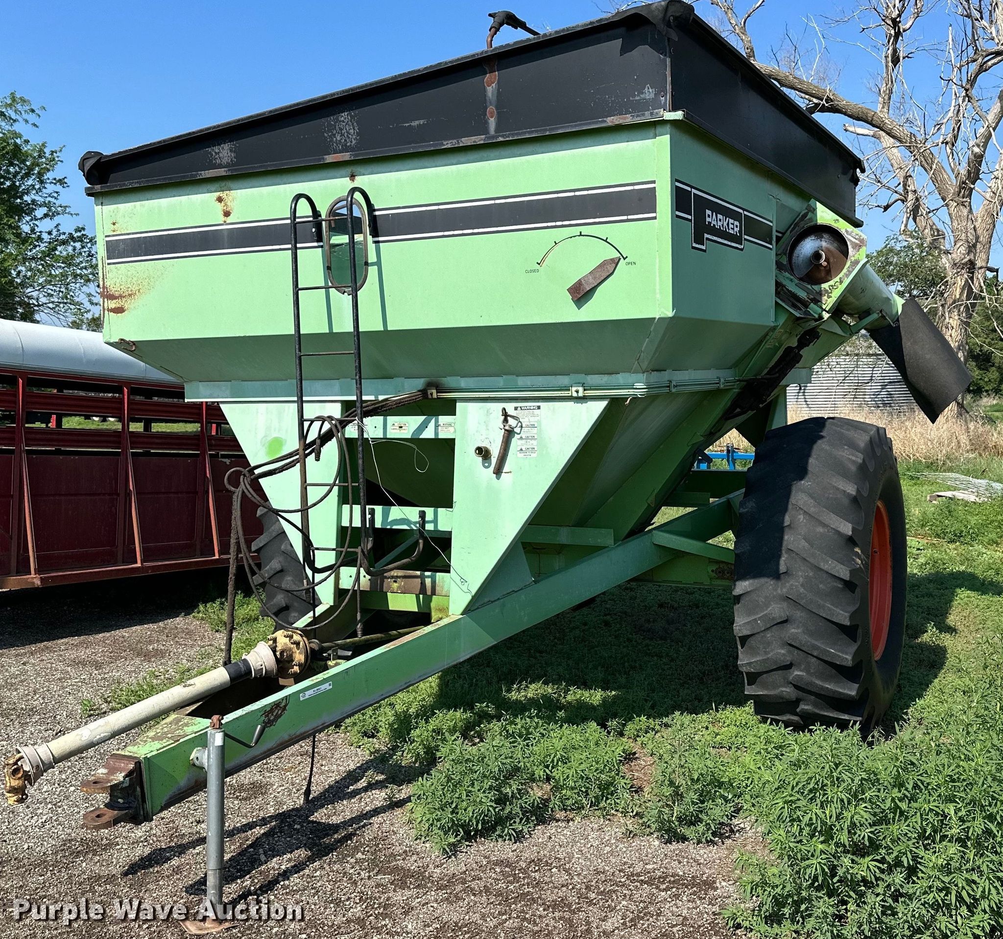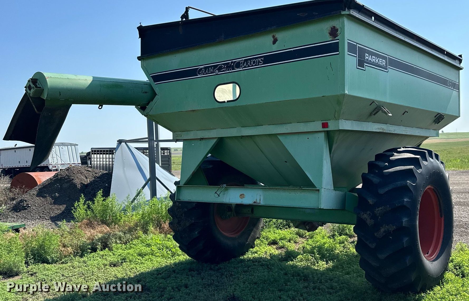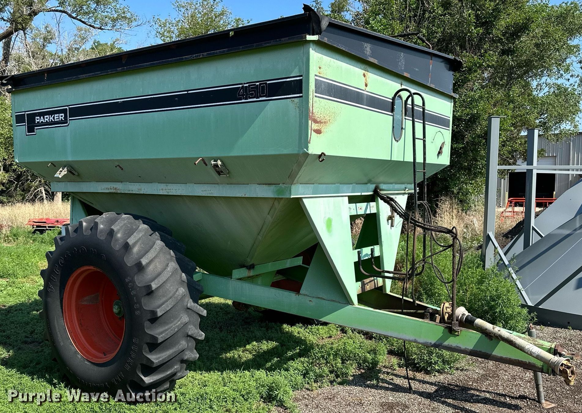 Purple Wave is selling a used Grain Cart or Gravity Wagon in Kansas. This item is a Parker 450 grain cart with the following: Serial: PIA76269
