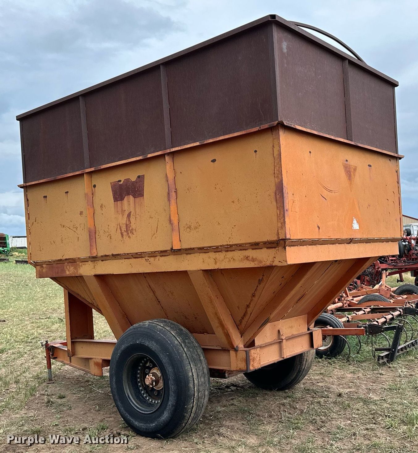 Purple Wave is selling a used Grain Cart or Gravity Wagon in Kansas. This item is a Gravity wagon with the following: Capacity: 1,000 bushels, Shut-off gate: Manual