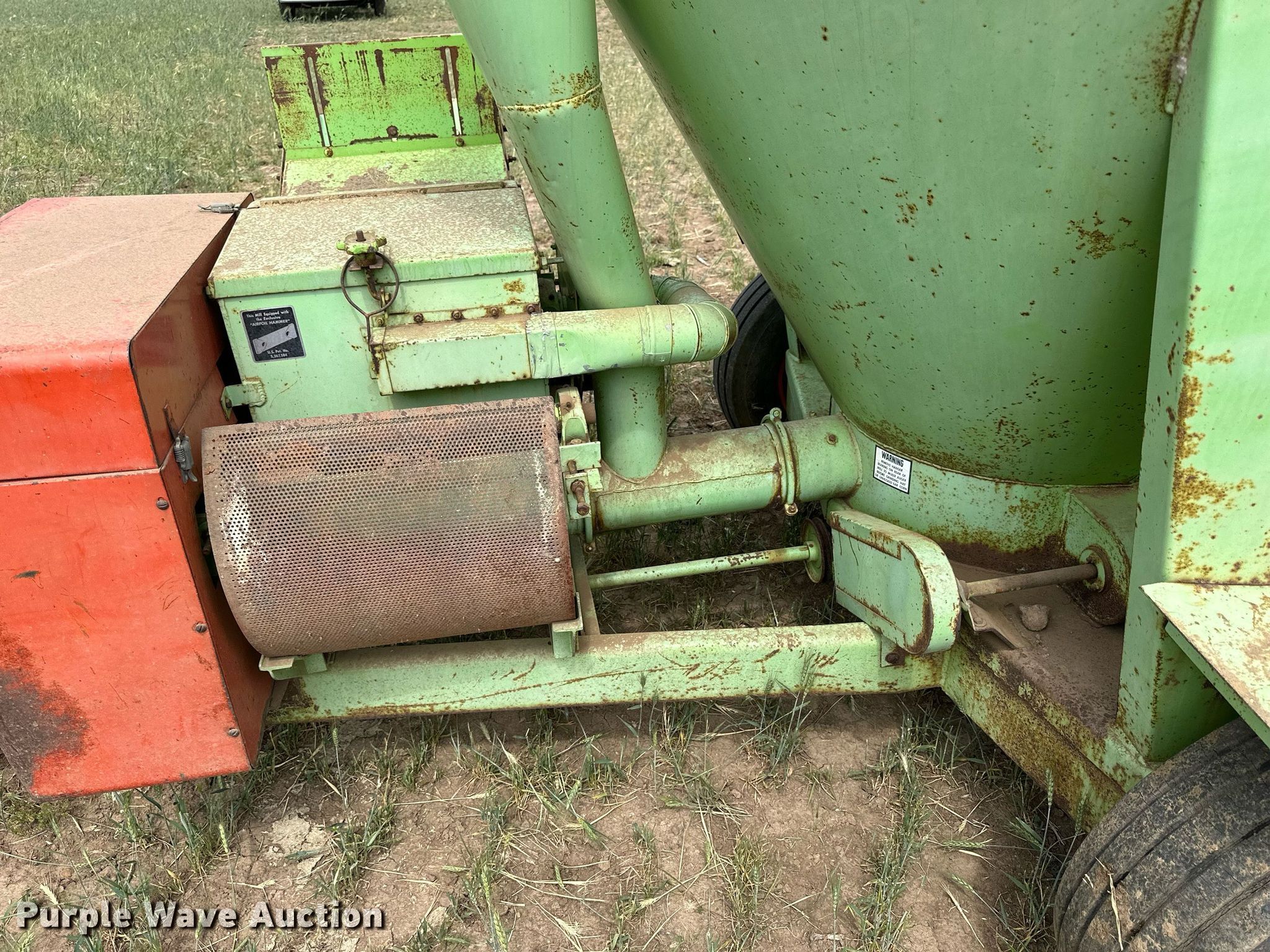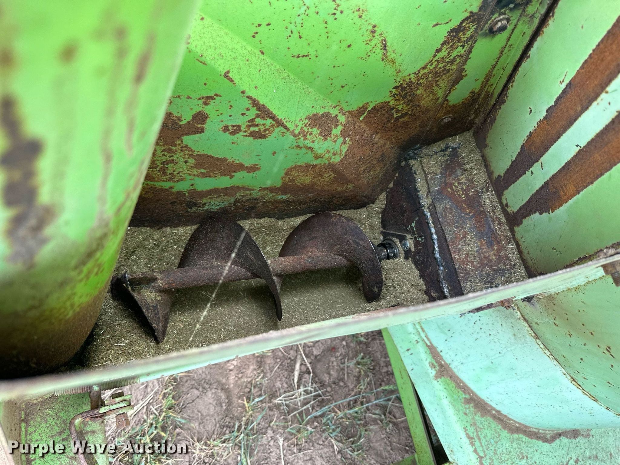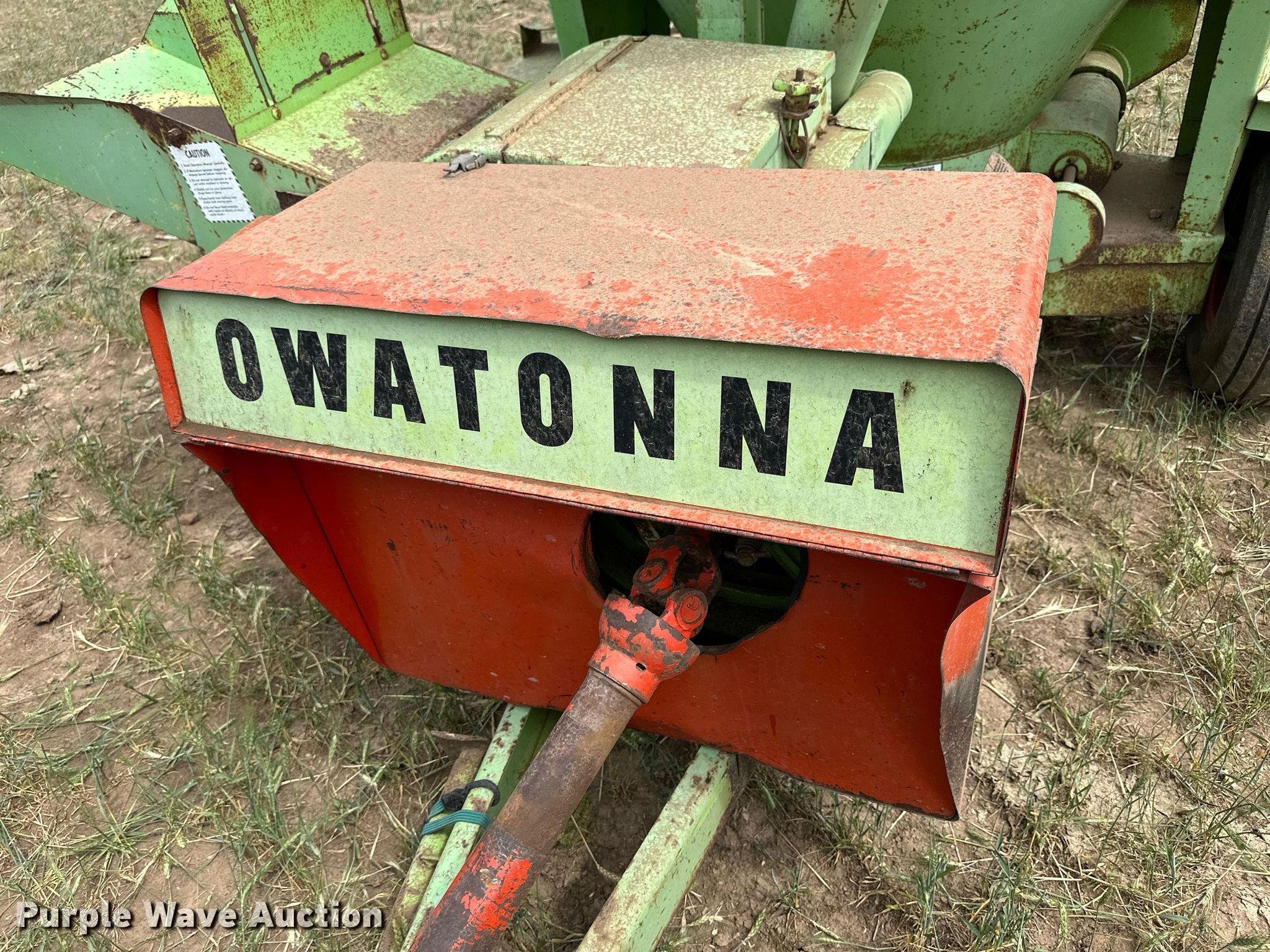 Owatonna 117 feed mixer. Serial: 1379. Features PTO: 540, Auger Quantity: 1, Diameter: 7", Door: Manual, Auger extensions. Tires Size: 11-15. Notes Tractor not included. Delphos, KS 67436
