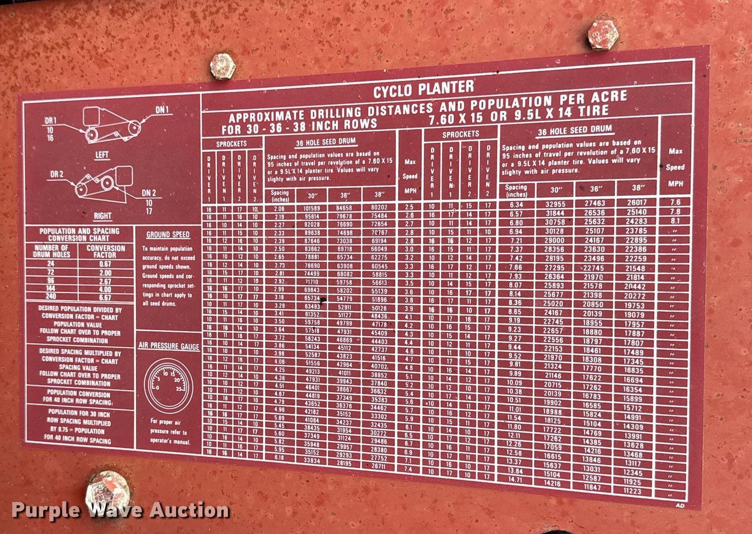 Purple Wave is selling a used Planter in Kansas. This item is a International 800 Cyclo Air planter with the following: Row units: 12, Row spacing: 30", Serial: 970783U018847