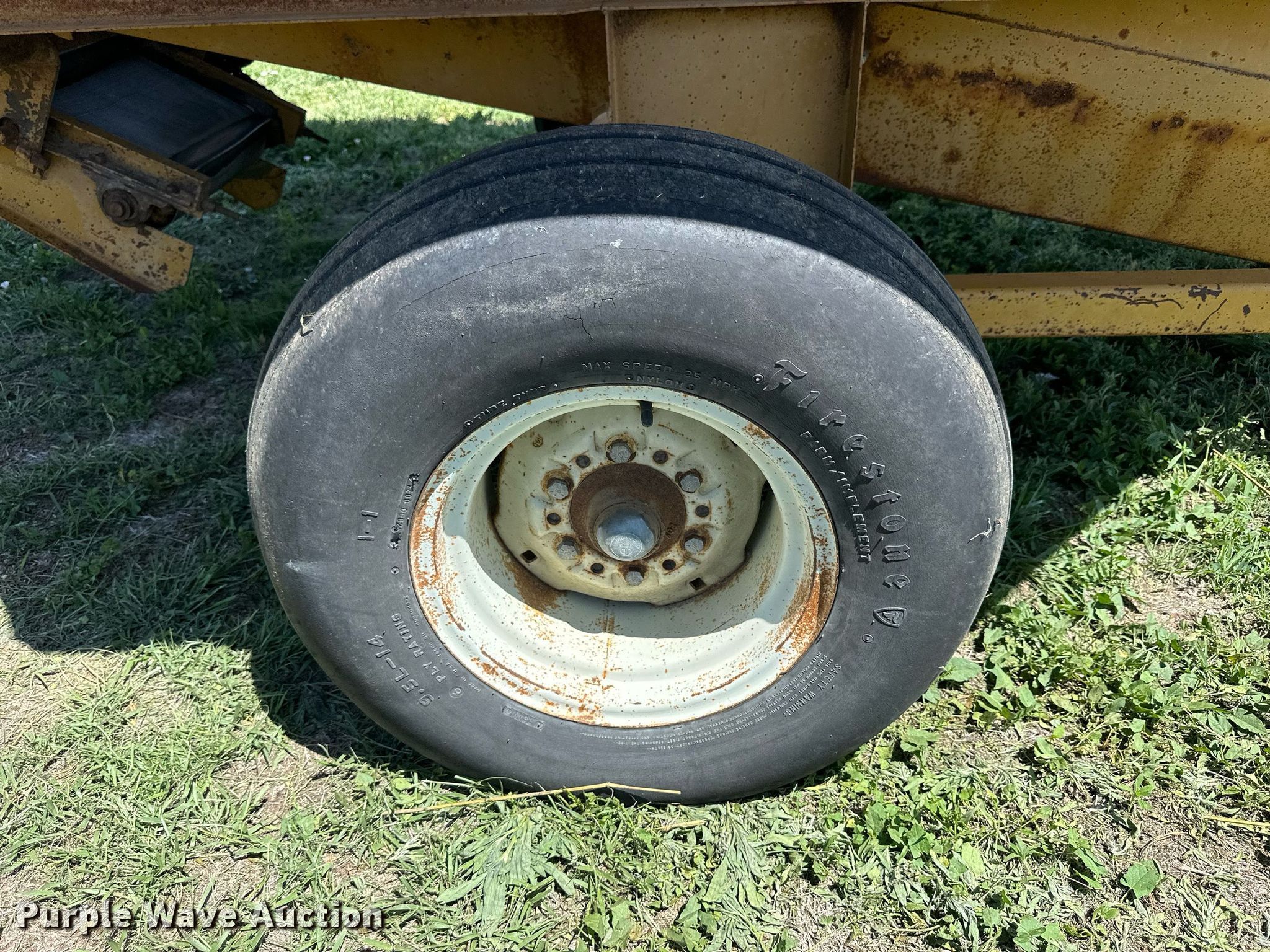 HayBuster H-1000 bale processor. Serial: 8401904. Features PTO: 1000, Auger Quantity: 2, Diameter: 8", Discharge: Rear, Conveyor Width: 18". Tires Size: 9.5L-14. 995 Front Street. Grainfield, KS 67737