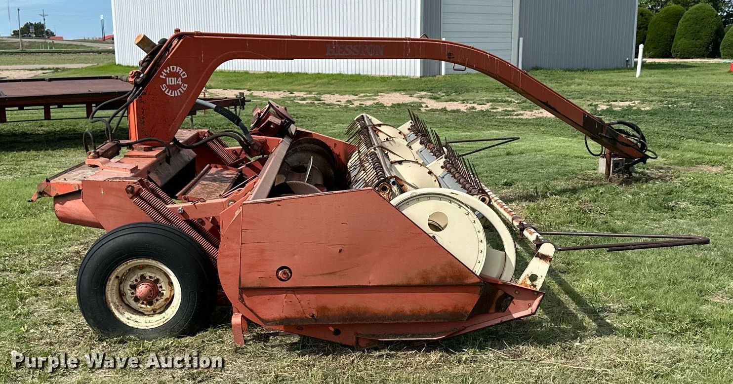 Purple Wave is selling a used Windrower Pull Type in Kansas. This item is a Hesston 1014 Hydroswing swather / windrower with the following: Serial: 12092