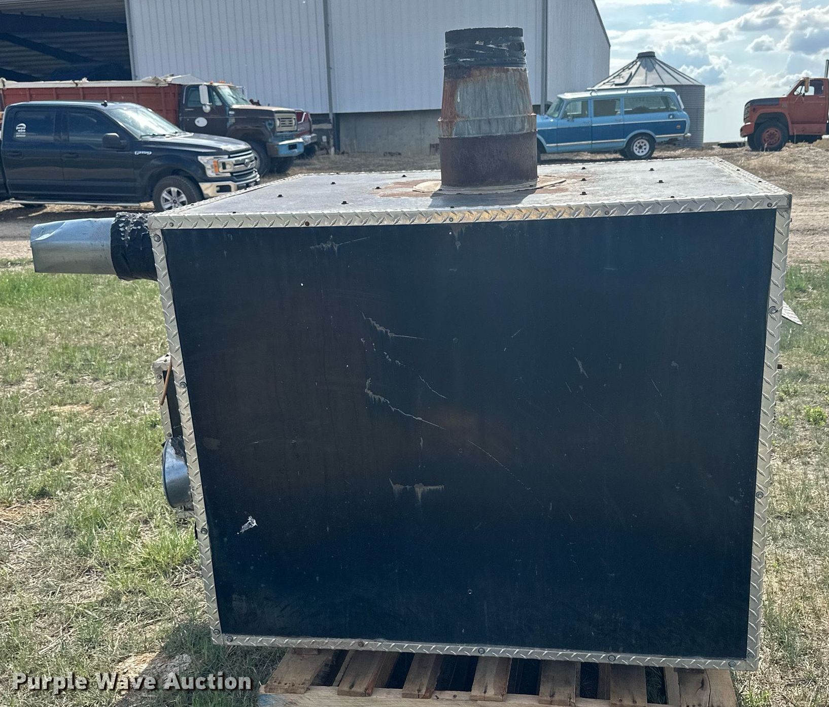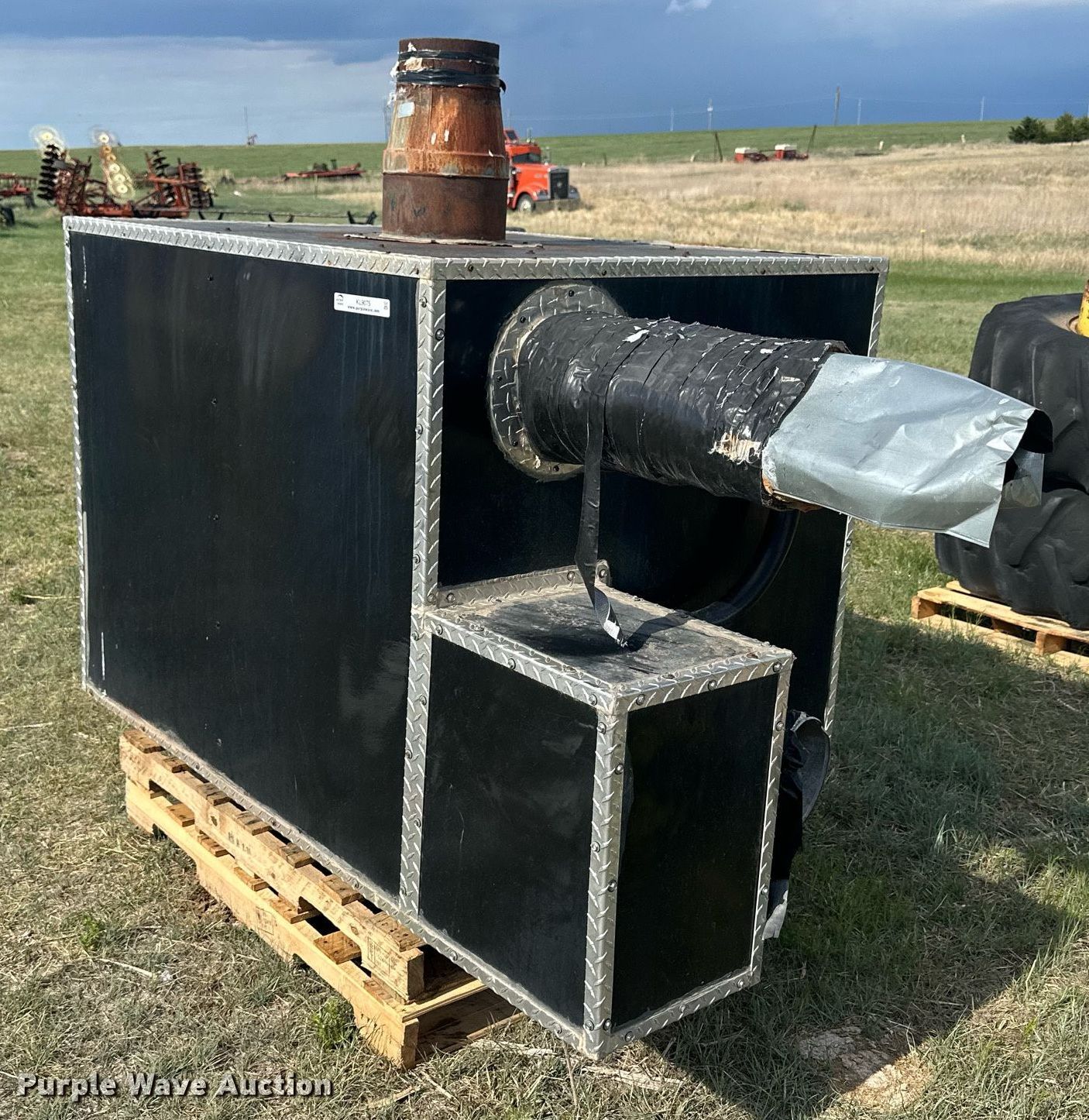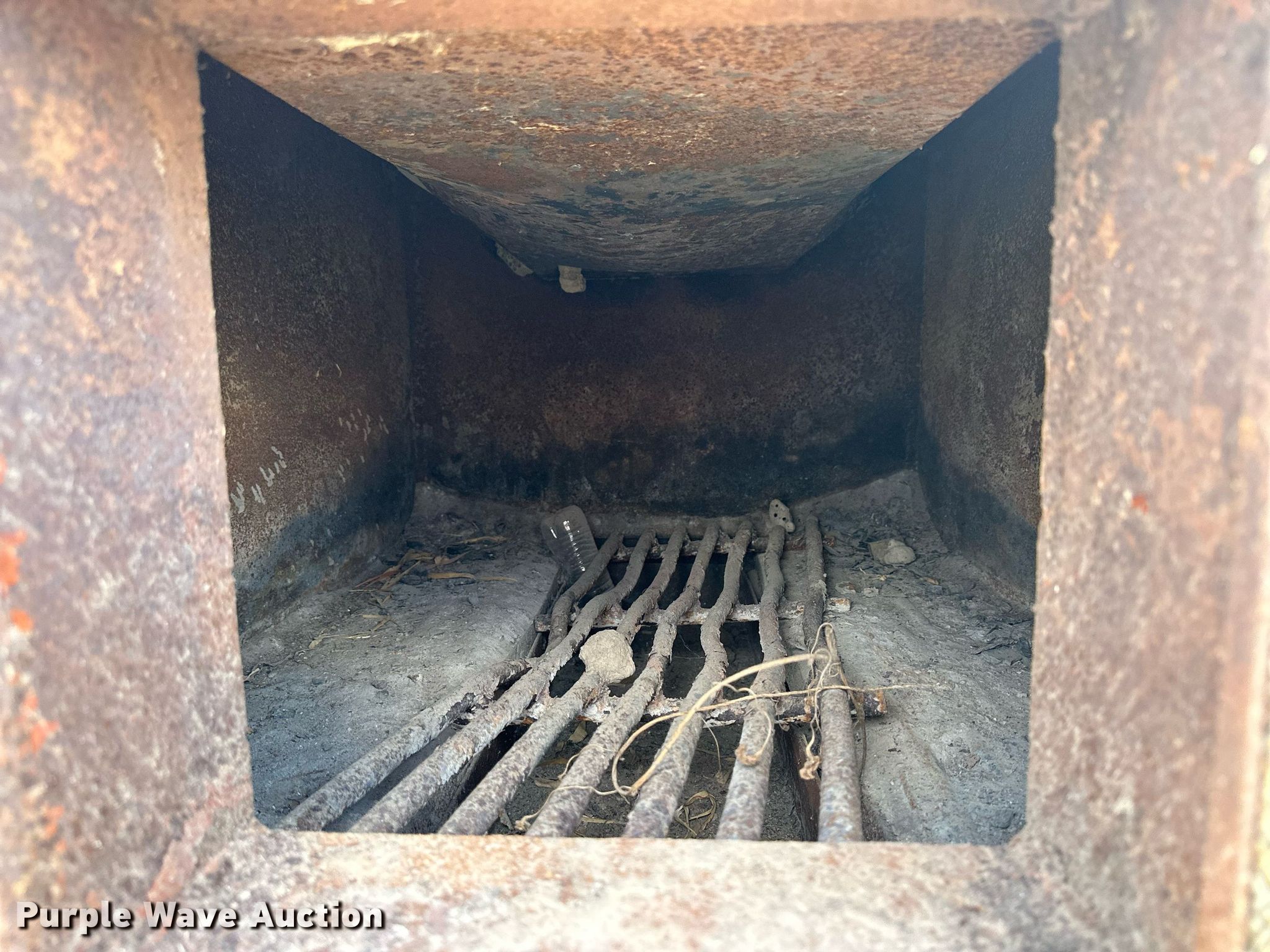 Wood burning stove. 53" x 43"W x 43"H, Vents damaged. Leiker Farms & Trucking. 426 280th Avenue. Hays, KS 67601