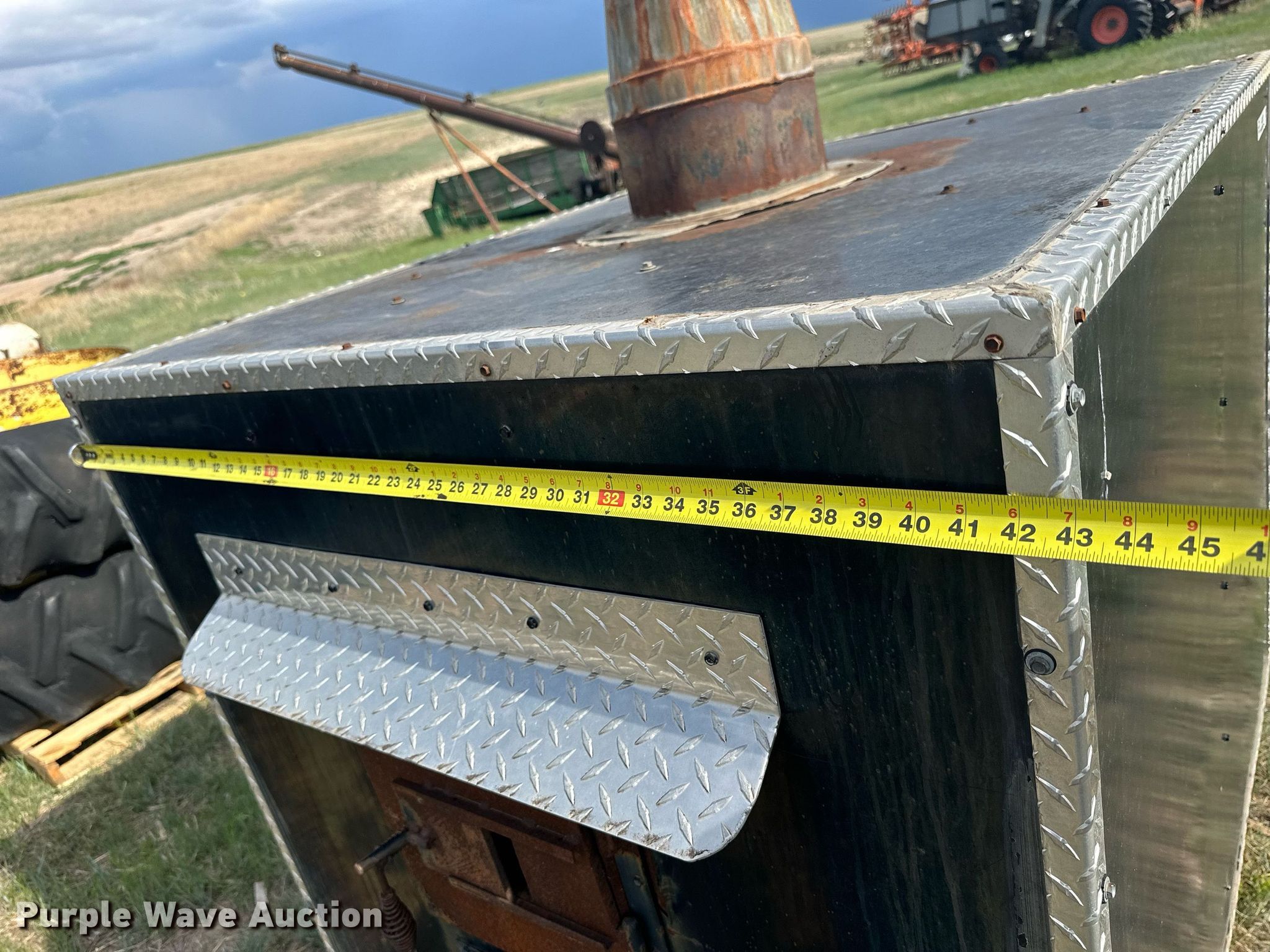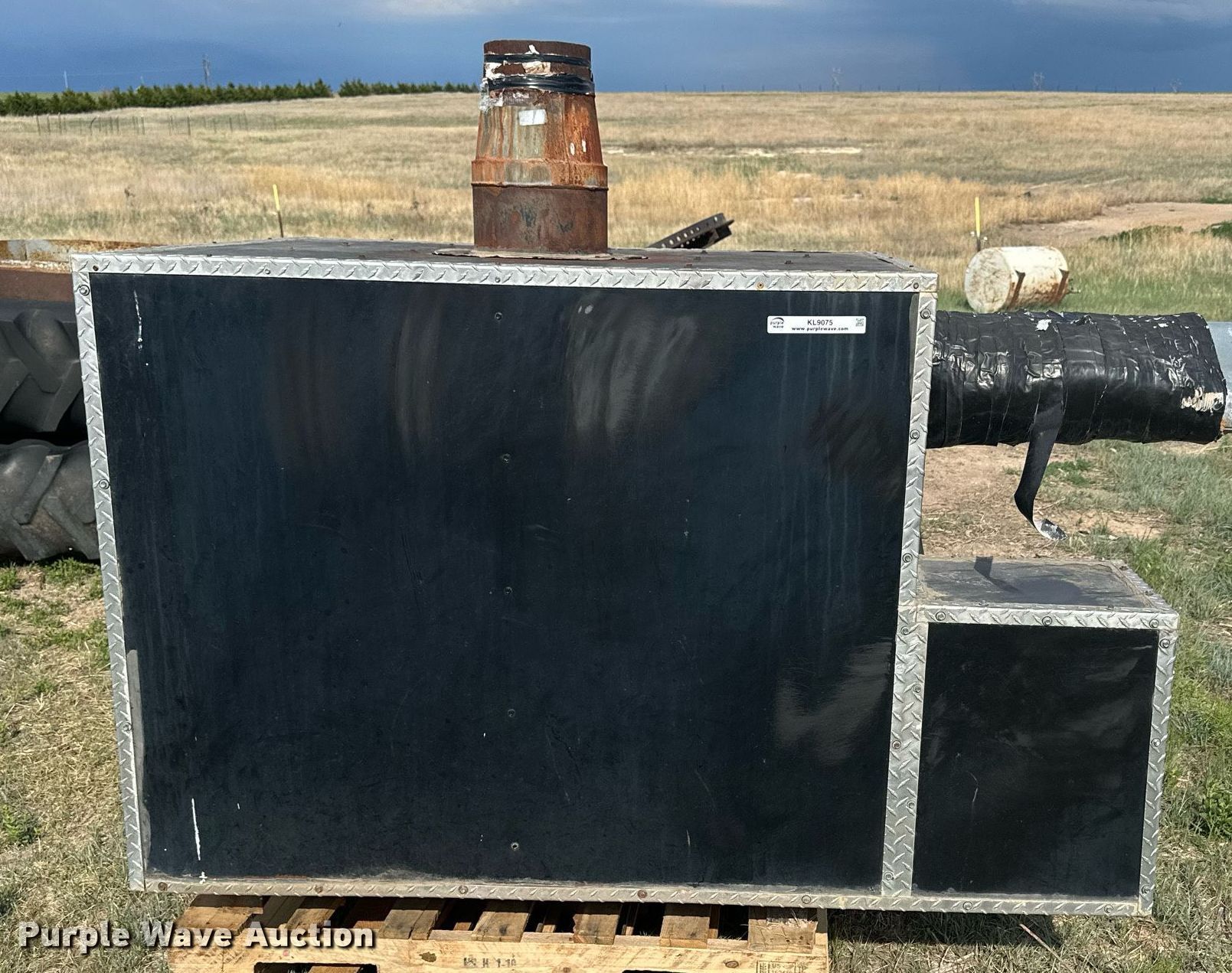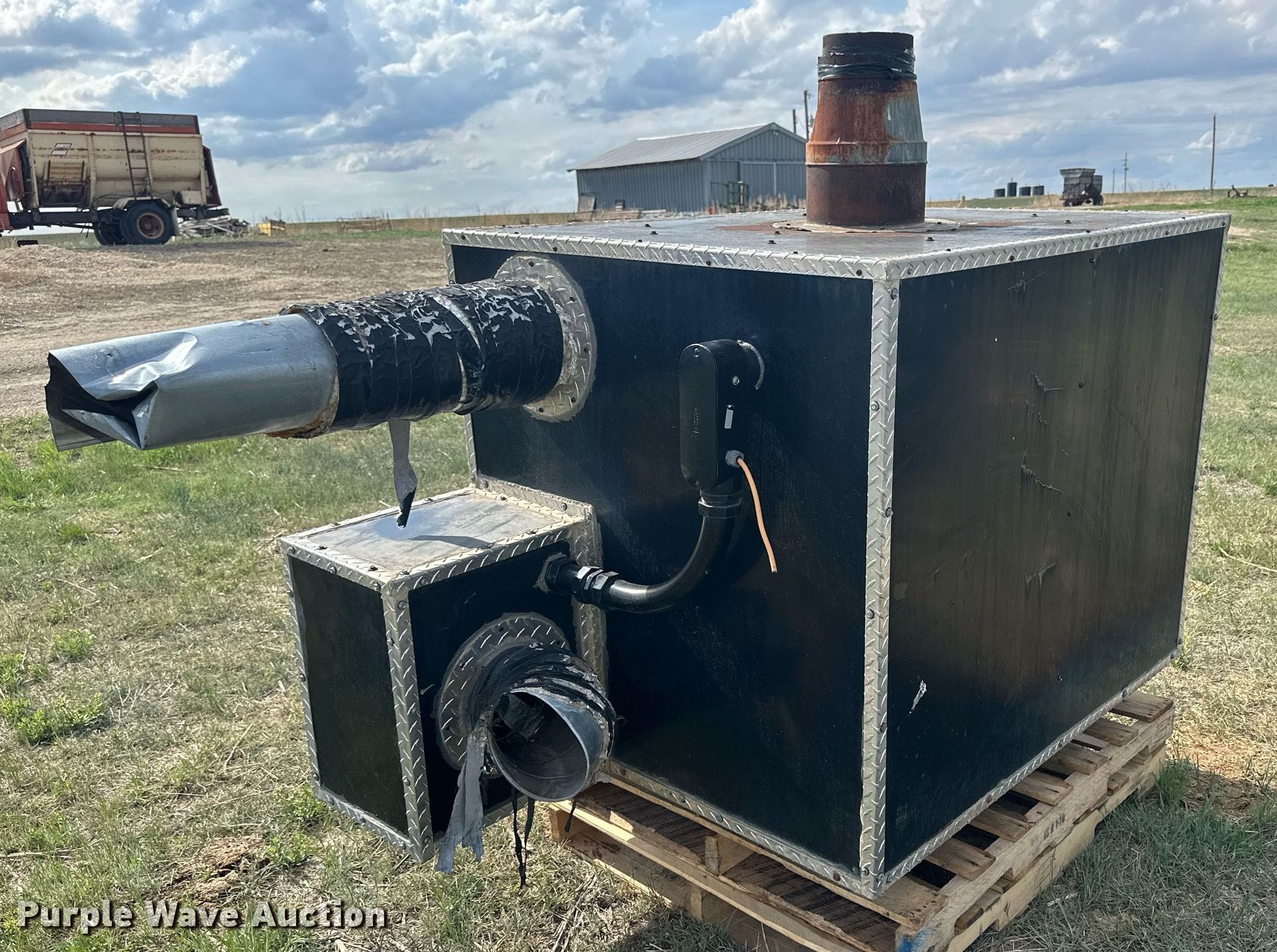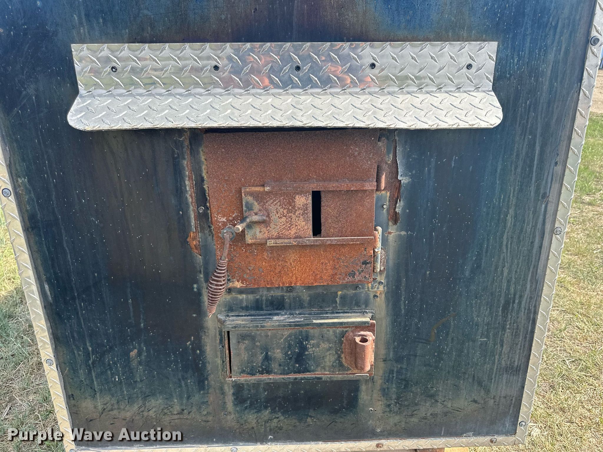 Wood burning stove. 53" x 43"W x 43"H, Vents damaged. Leiker Farms & Trucking. 426 280th Avenue. Hays, KS 67601