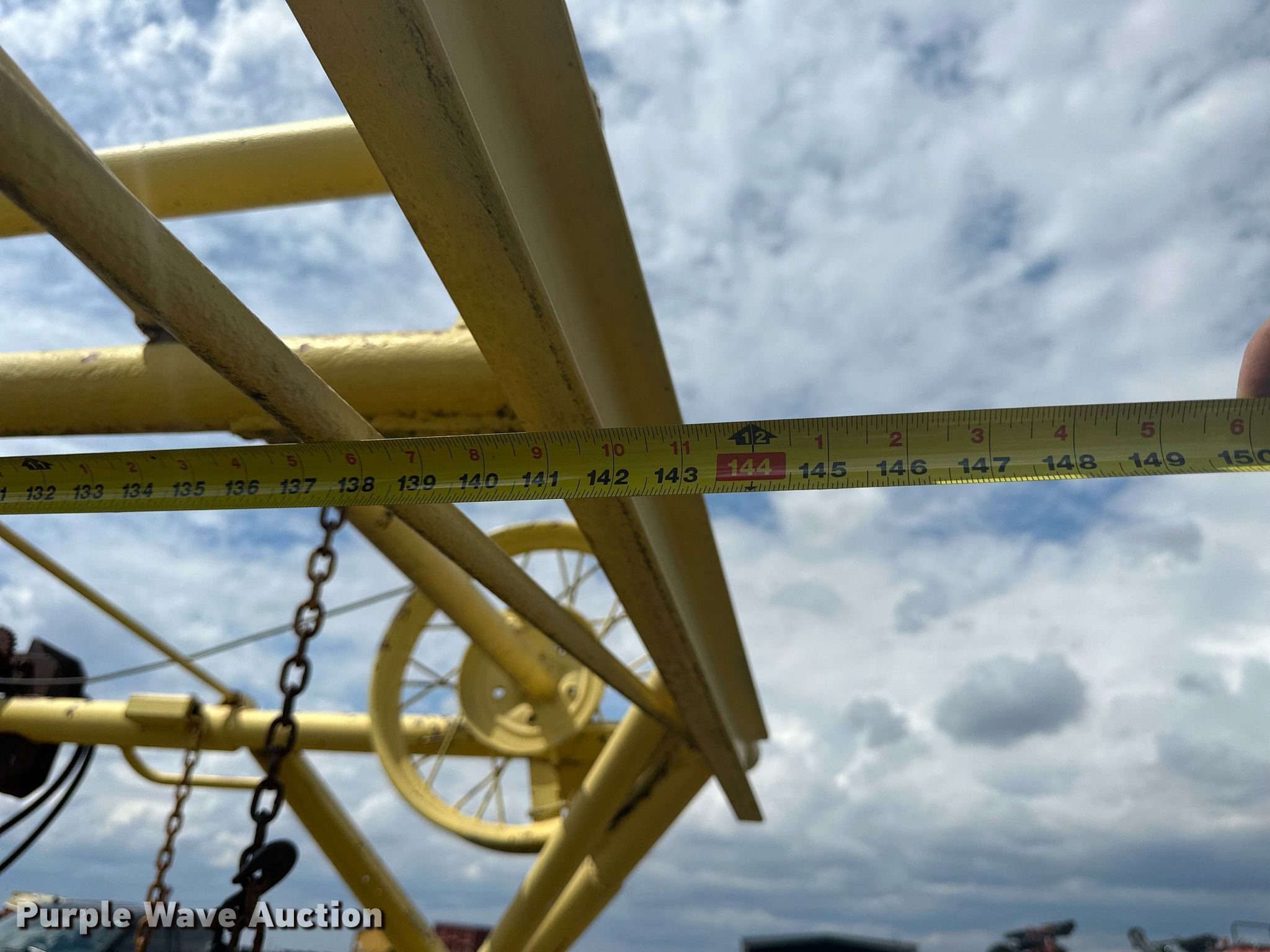 Inland tank mover. Dimensions. Overall: 31'L x 12'W. Features Winch. Tires Size: 8.25-20. Leiker Farms & Trucking. 426 280th Avenue. Hays, KS 67601