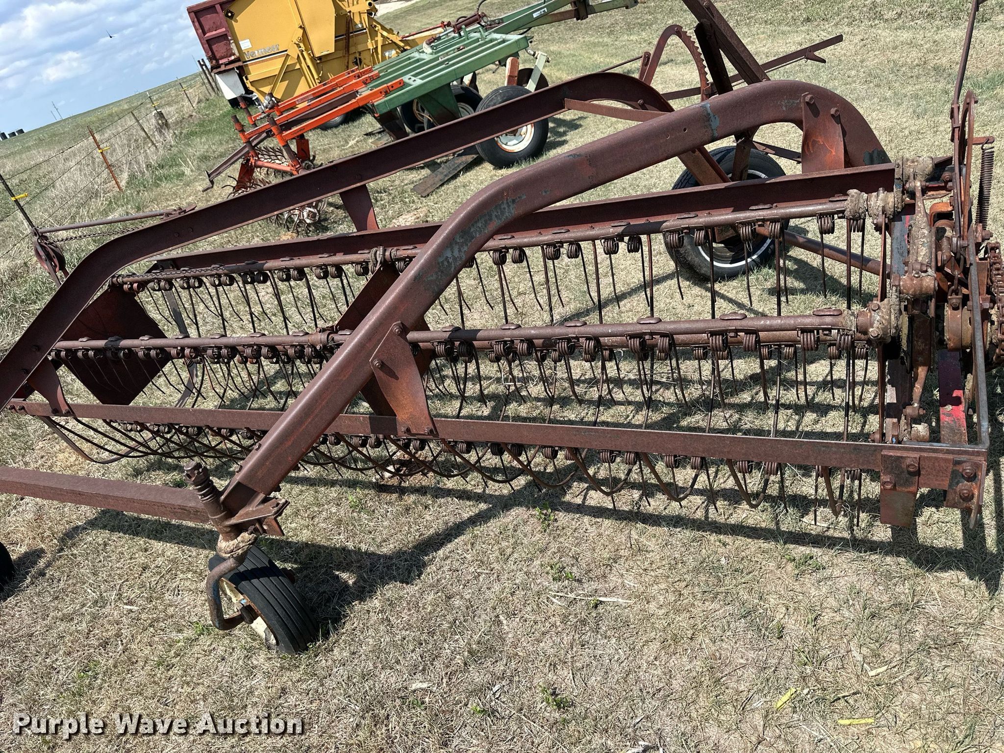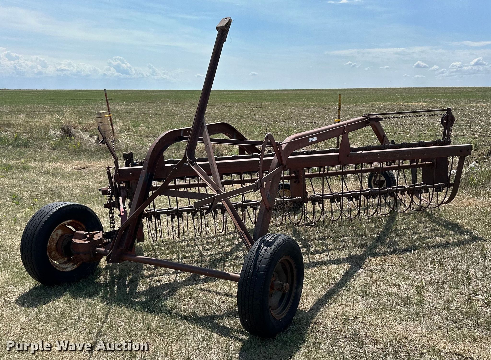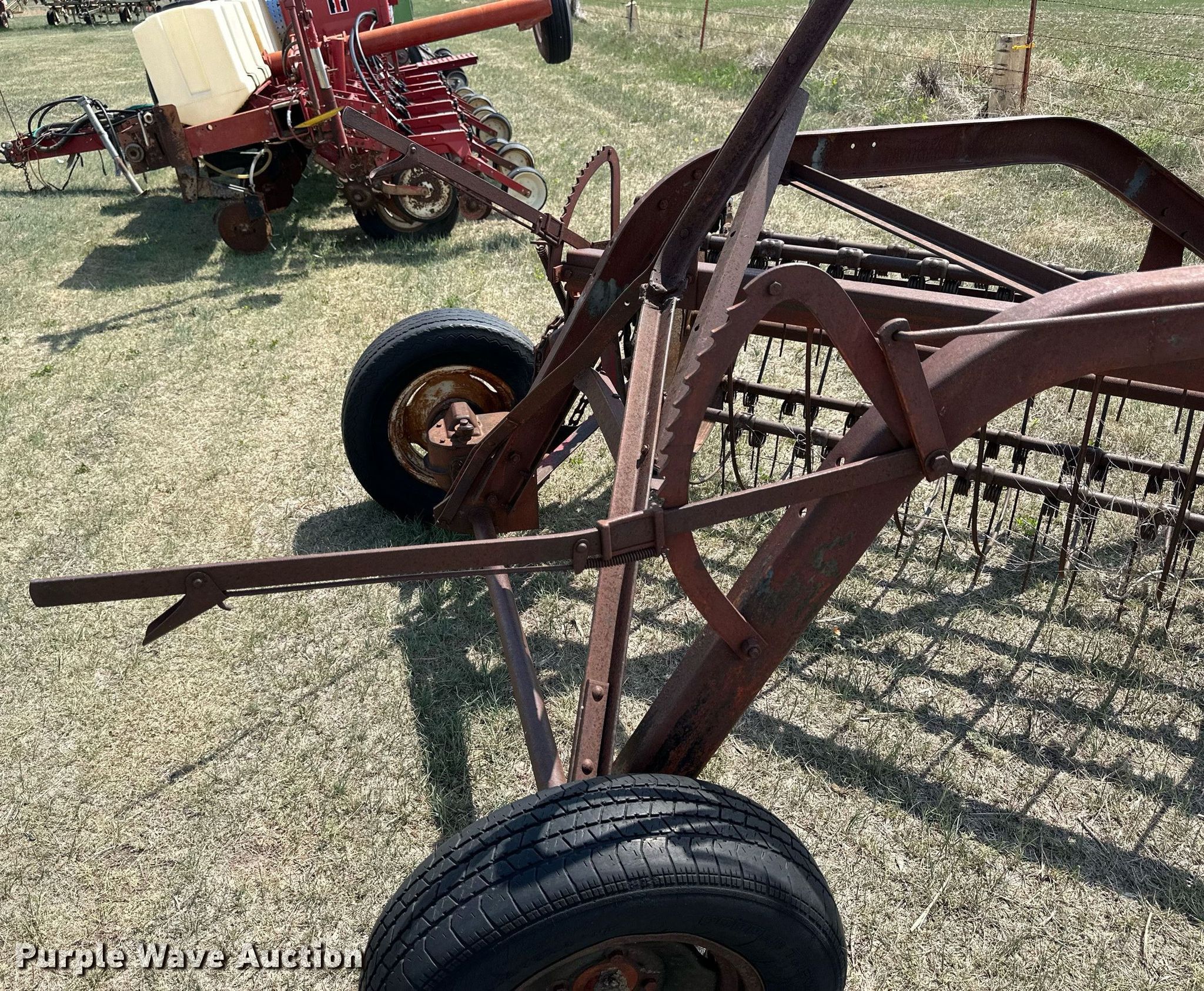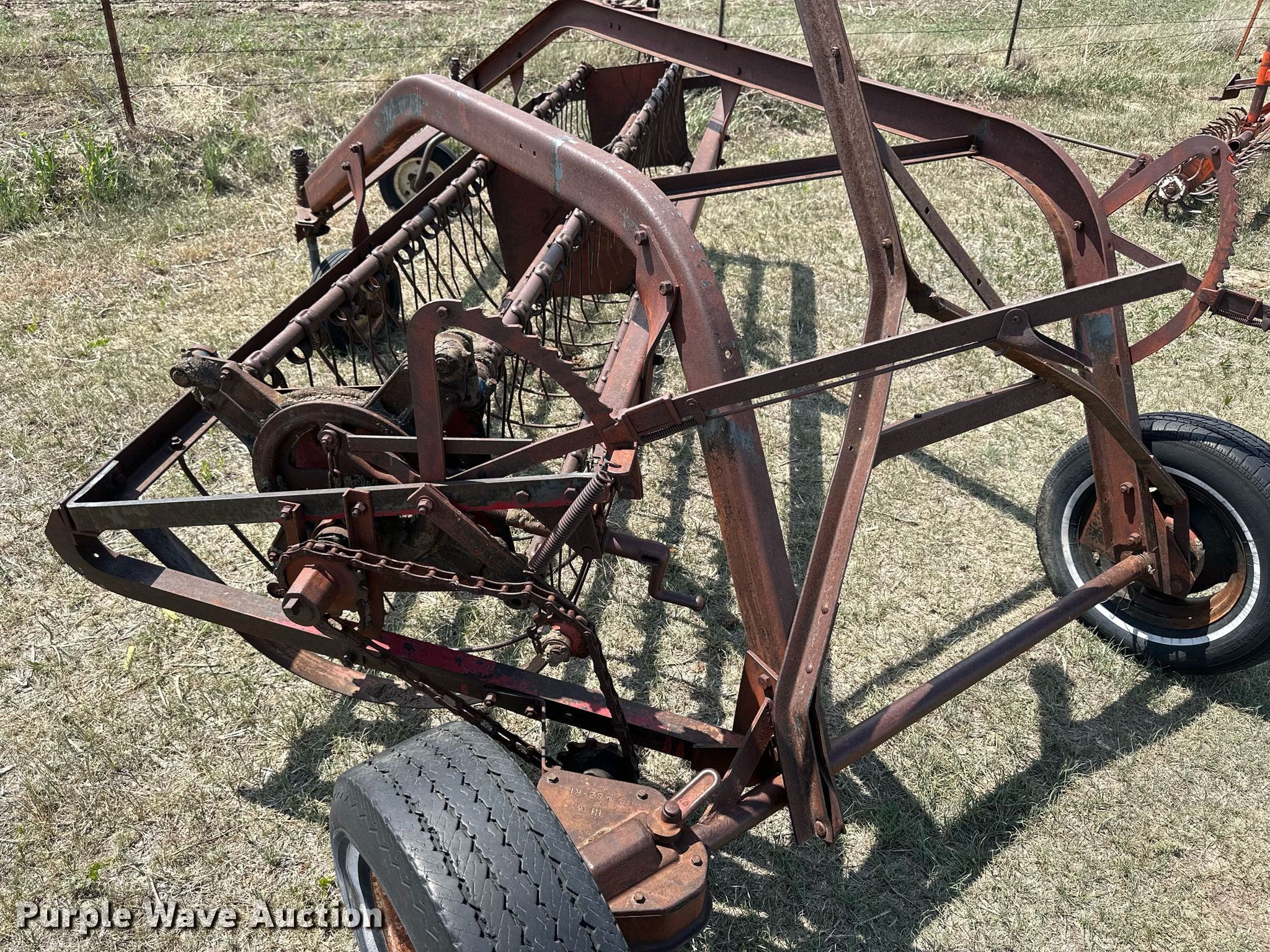 Purple Wave is selling a used Hay Rake in Kansas. This item is a International hay rake with the following: Serial: 453482-R1