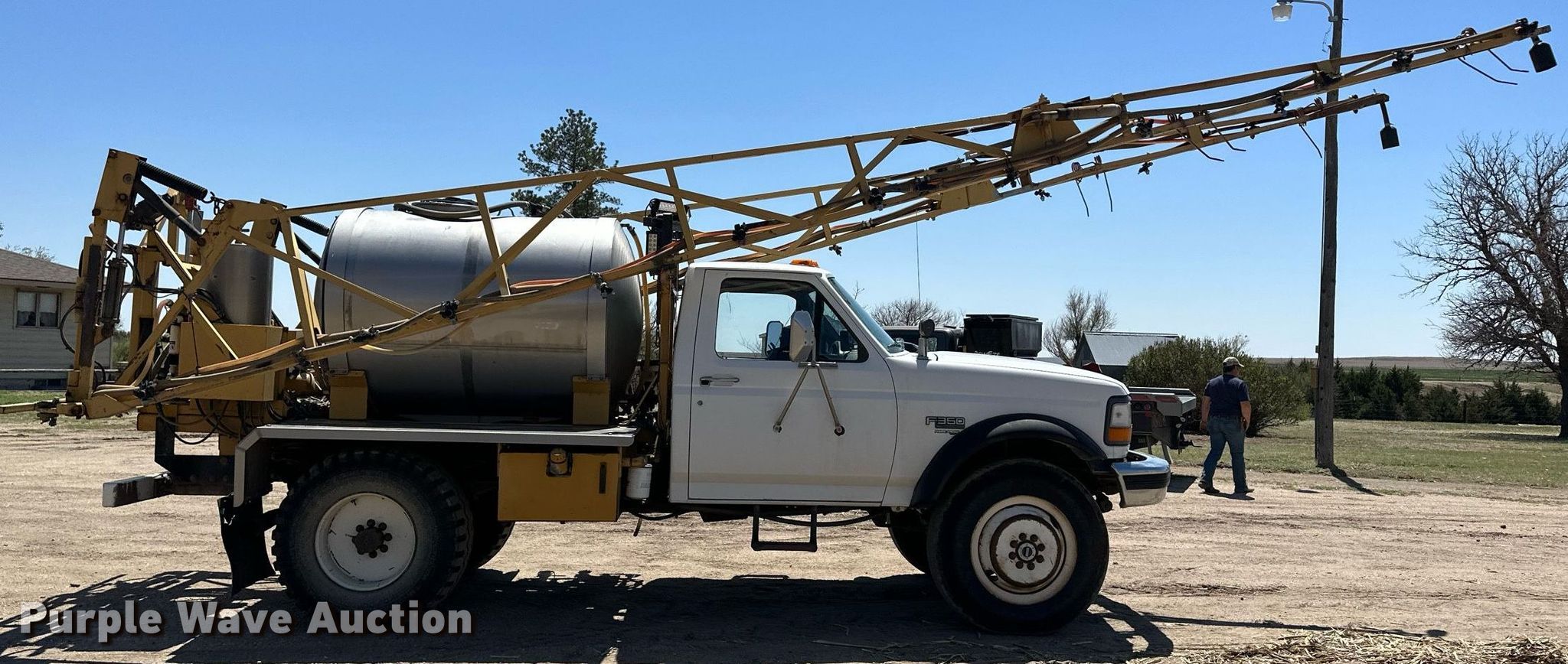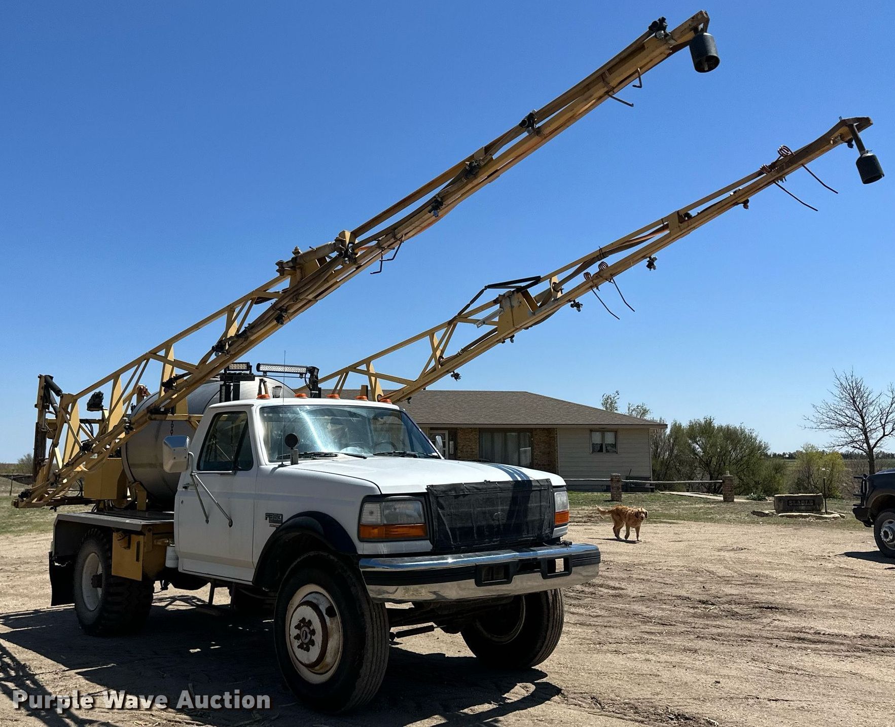 1997 Ford F350 applicator truck. Miles: 29,054 on odometer, Engine hours: 4,421 on meter, VIN: 3FEKF38F3VMA72730. Engine Displacement: 7.3L V8 OHV, Cylinders: 8, Fuel type: Diesel. Transmission Manual, Speed: 5, Four wheel drive. Interior AC, Heat. Features Solution tank Capacity: 550 gallons, Type: Stainless Steel, Chemical eductor Type: Stainless Steel, Foam marker, Boom Width: 60', Sections: 3, Hydraulic boom fold, Hydraulic height control, Nozzle Spacing: 30", Nozzle bodies: 3-way, Electronics GPS monitor Raven, Spray controls GVM.. Tires Front: 9.00R20, Rear: 40x19-19.5. Kansas title. Beeler, KS 67518