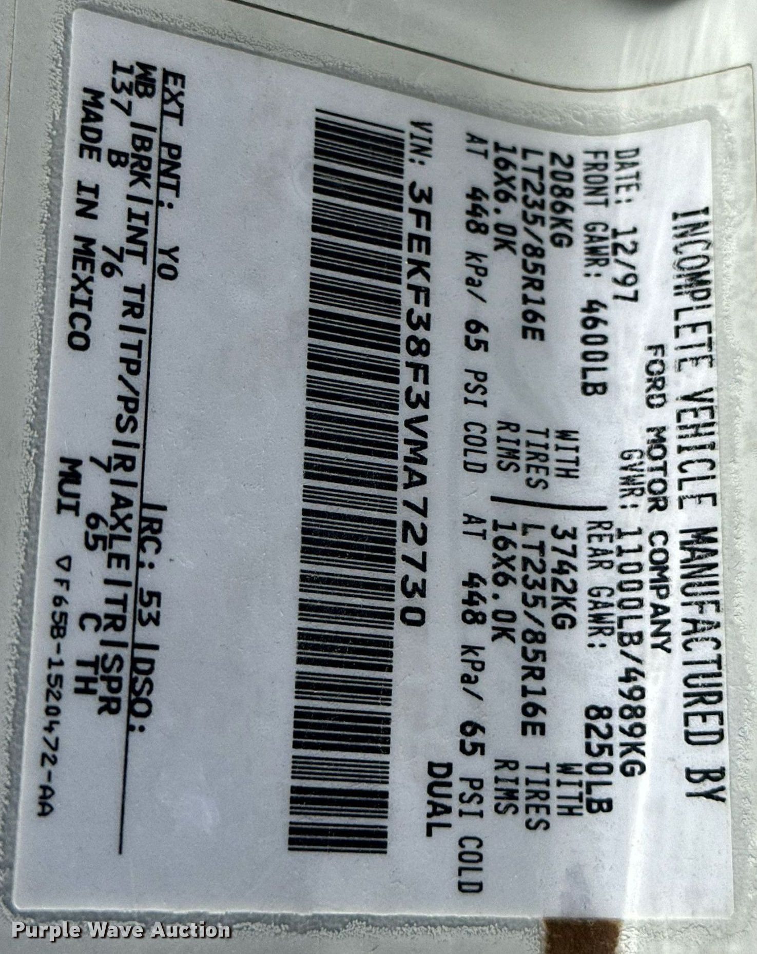 Purple Wave is selling a used Applicator Truck in Kansas. This item is a 1997 Ford F350 applicator truck with the following: Miles: 29,054 on odometer, Engine hours: 4,421 on meter, VIN: 3FEKF38F3VMA72730