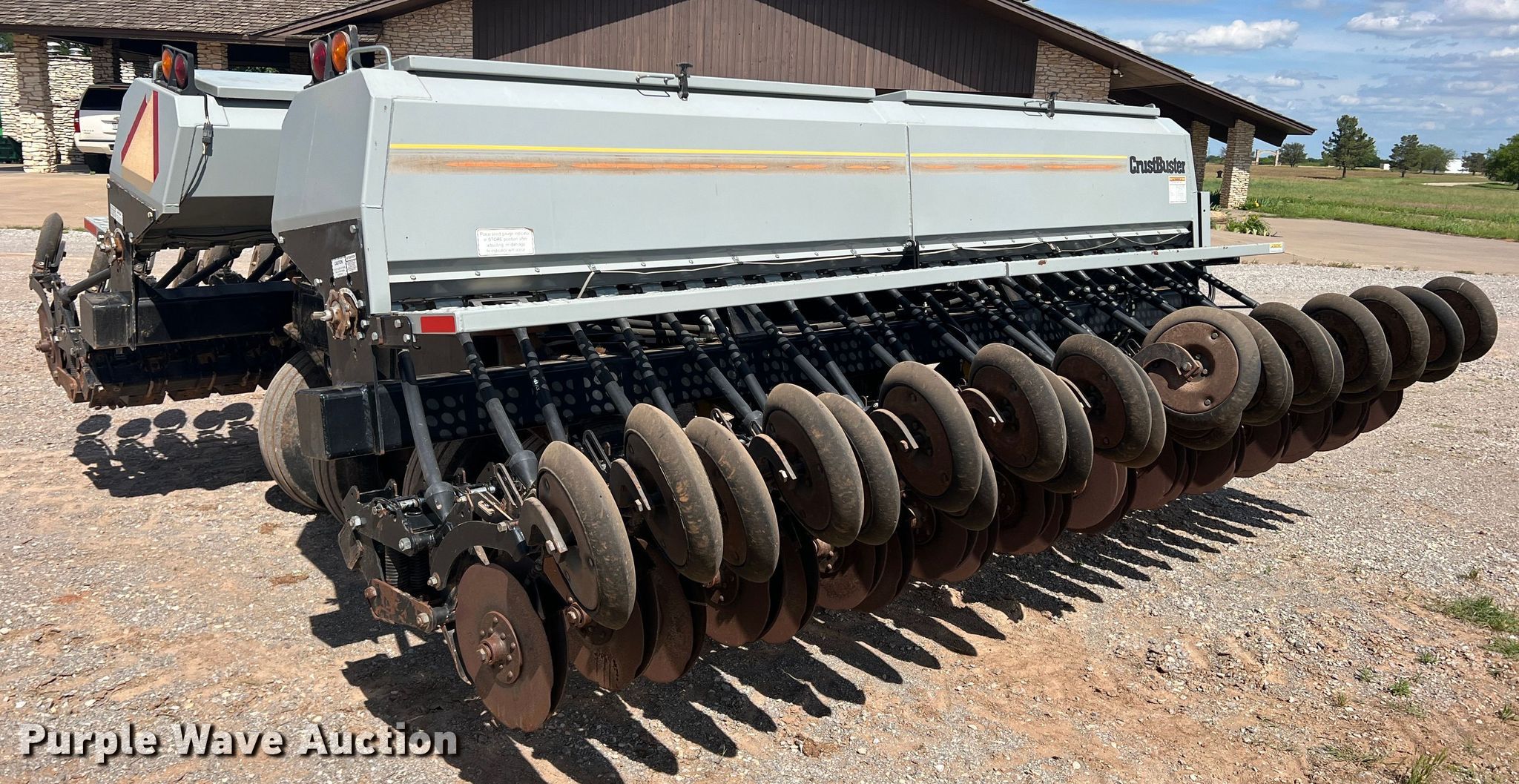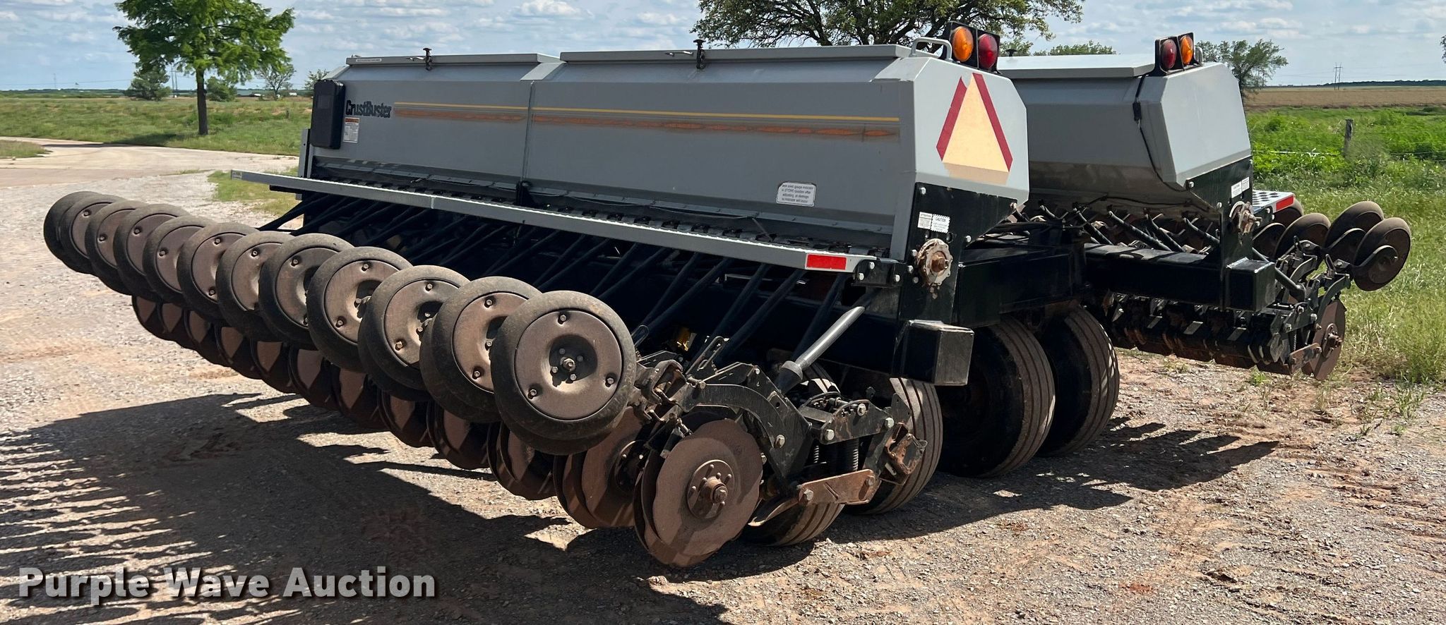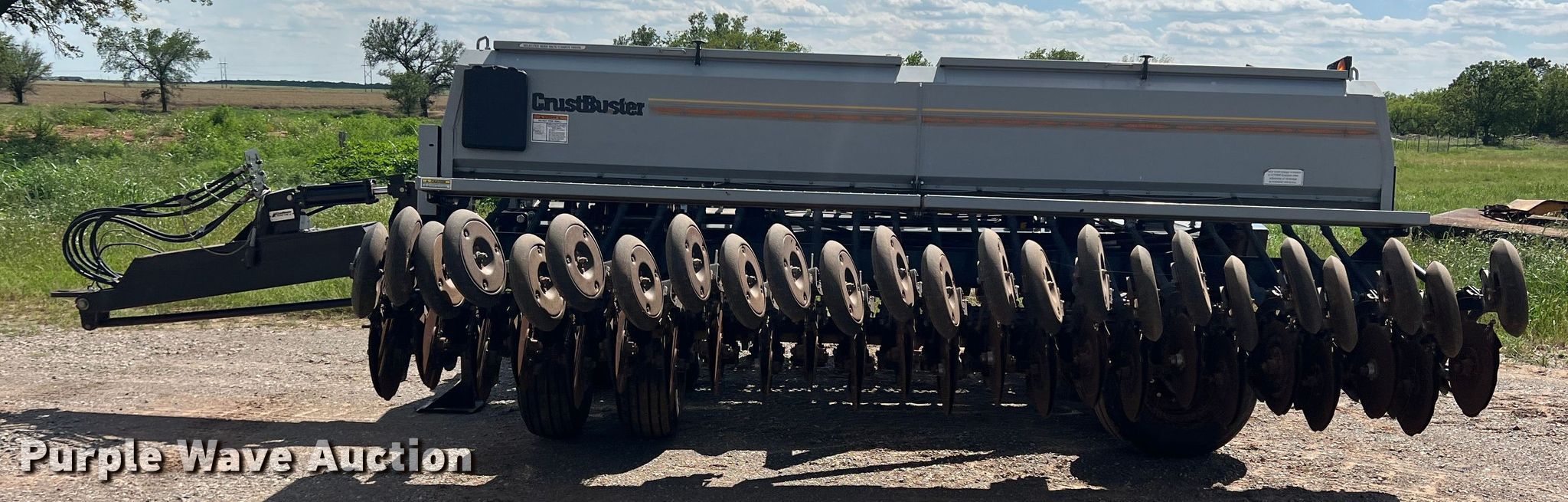 Purple Wave is selling a used Grain Drill or Seeder in Texas. This item is a CrustBuster grain drill with the following: Width: 30', Row units: 48, Row spacing: 7.5", Serial: 21016