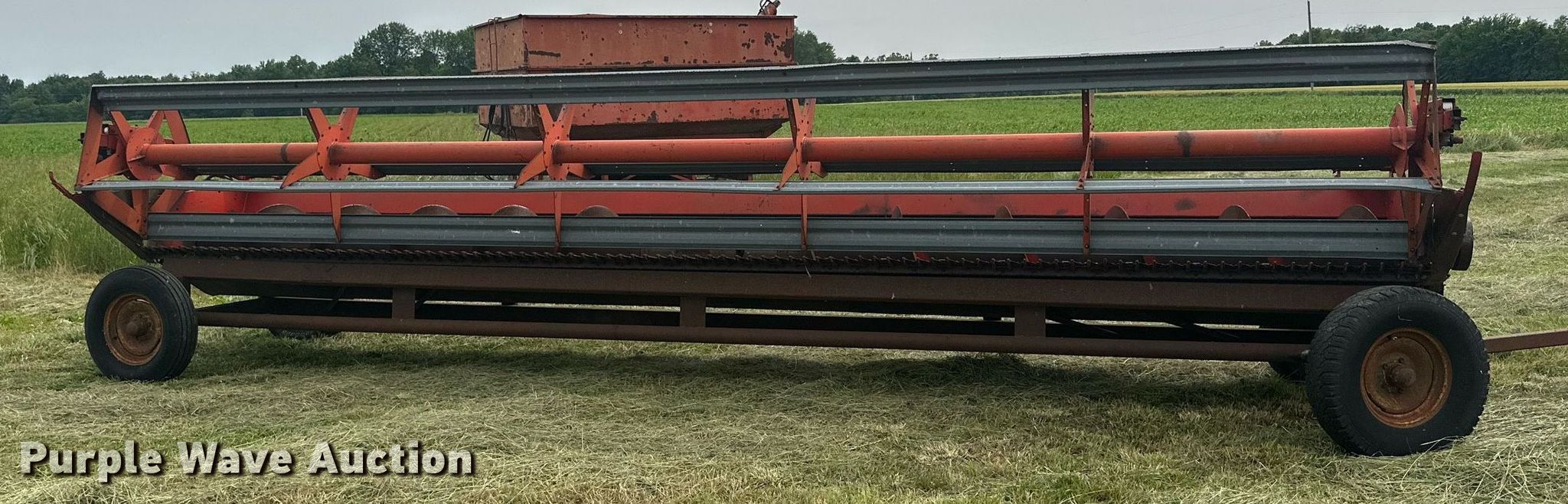 1981 Massey Ferguson 860 combine. Engine hours: 4,109 on meter, Serial: 174613716. Engine Cylinders: 8, Fuel type: Diesel. Transmission Hydrostatic, 4F - 4R. Interior AC, Heat. Features Concaves: Small wire, Chaff spreader, Power tailboard, Unloading auger length: 16', Rear hitch, Row crop head Corn, Rows: 11, Row spacing: 18", Drivelines: Dual, Header Massey Ferguson, Width: 24', Reel: Bat, Drivelines: Single. Tires Front: 24.5-32, Rear: 14L-16.1, Duals. Header Trailer. Dimensions Overall: 41', Deck: 25'. Features Deck type: Steel. Tires Size: LT235/85R16. I-49 Silver Dime Steel Roofing. 16562 County Rd 138. Carthage, MO 64836