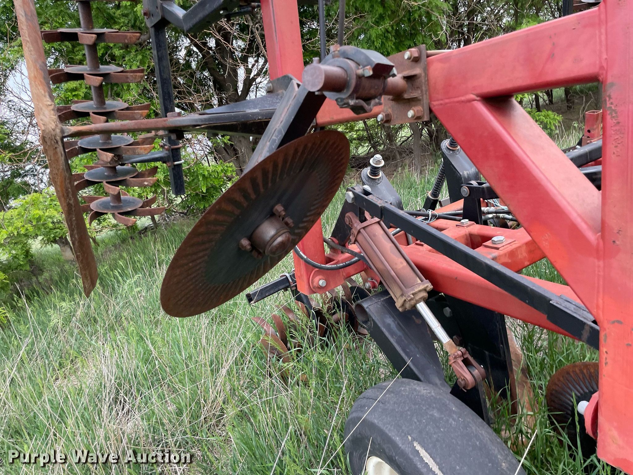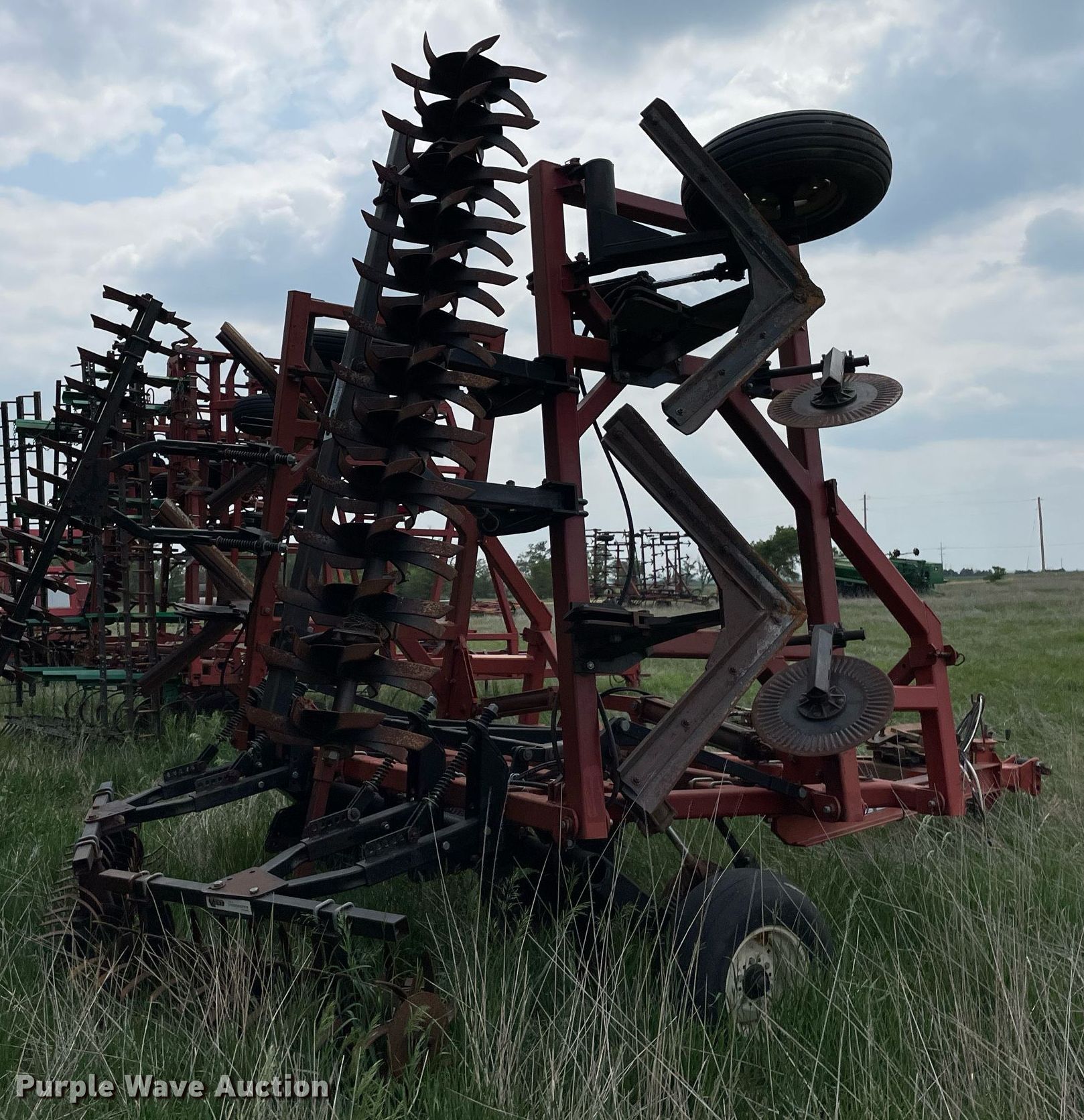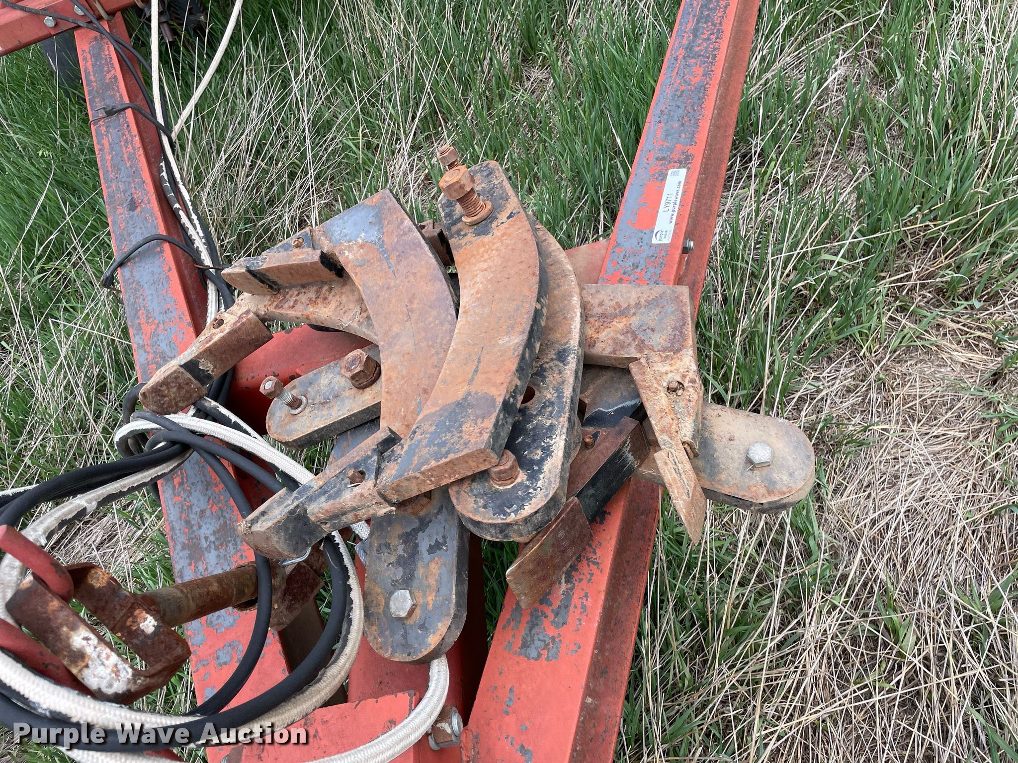 Kent 9326 Plains Plow sweep plow. Overall width: 26', Serial: 14237. Features Shanks: 7, Sweep width: 4', Operation Hydraulic lift, Hydraulic fold, Attachments Rolling pickers/ treader. Tires Tire size: 11L-15. Estate of Ernest E Habiger. Wilson, KS 67490