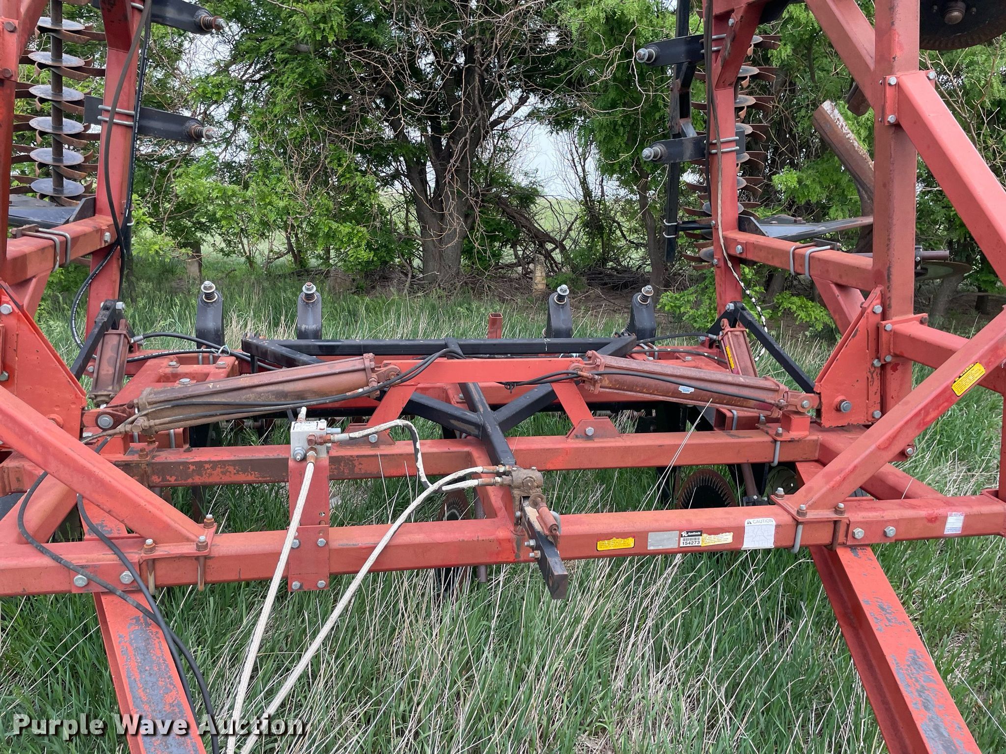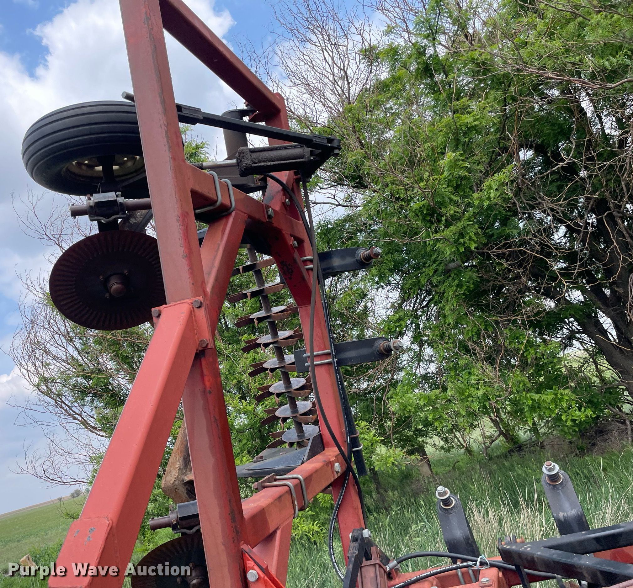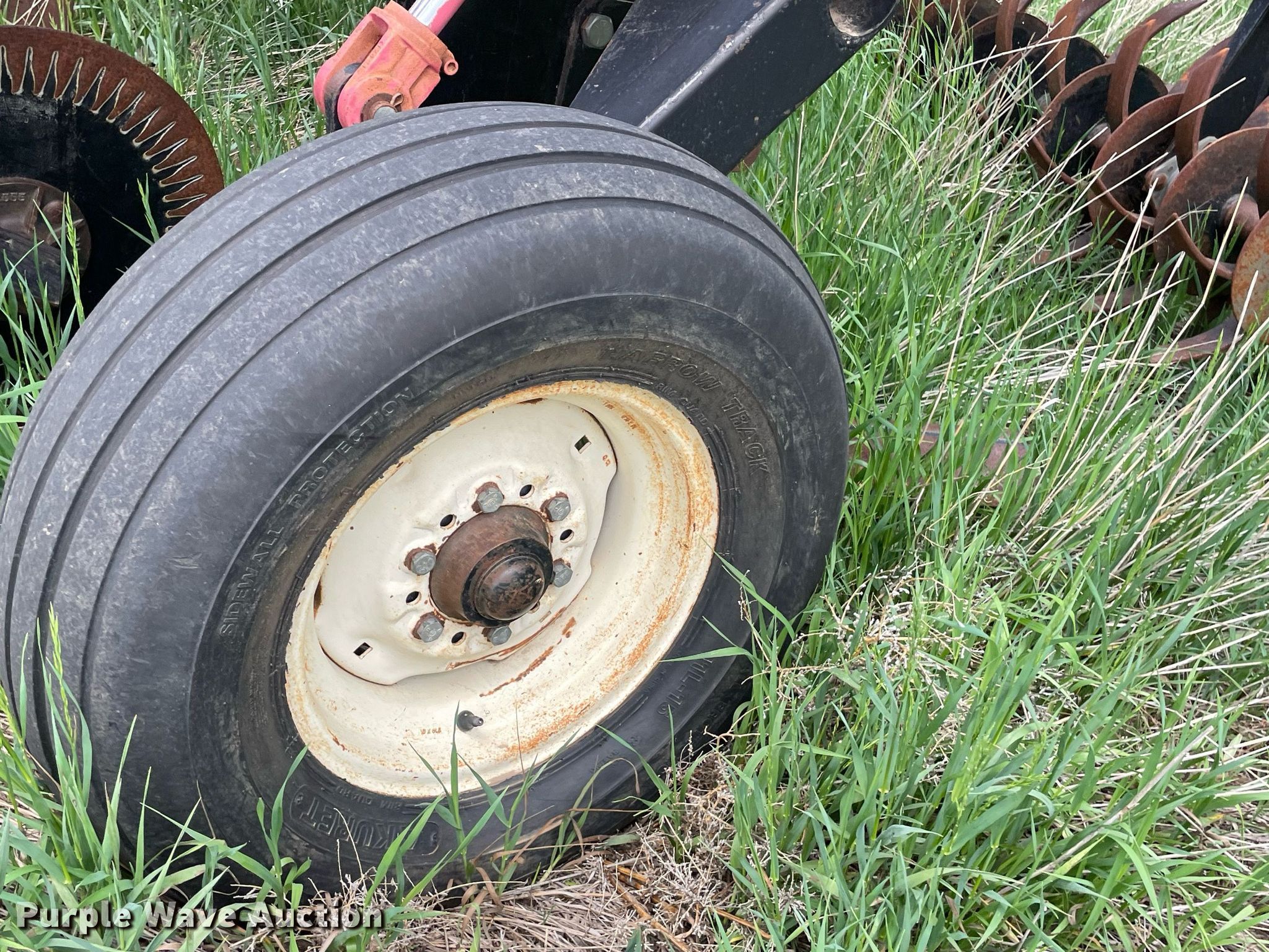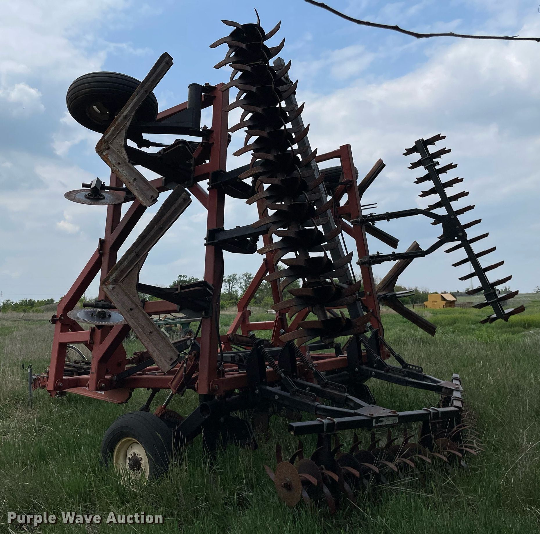 Kent 9326 Plains Plow sweep plow. Overall width: 26', Serial: 14237. Features Shanks: 7, Sweep width: 4', Operation Hydraulic lift, Hydraulic fold, Attachments Rolling pickers/ treader. Tires Tire size: 11L-15. Estate of Ernest E Habiger. Wilson, KS 67490