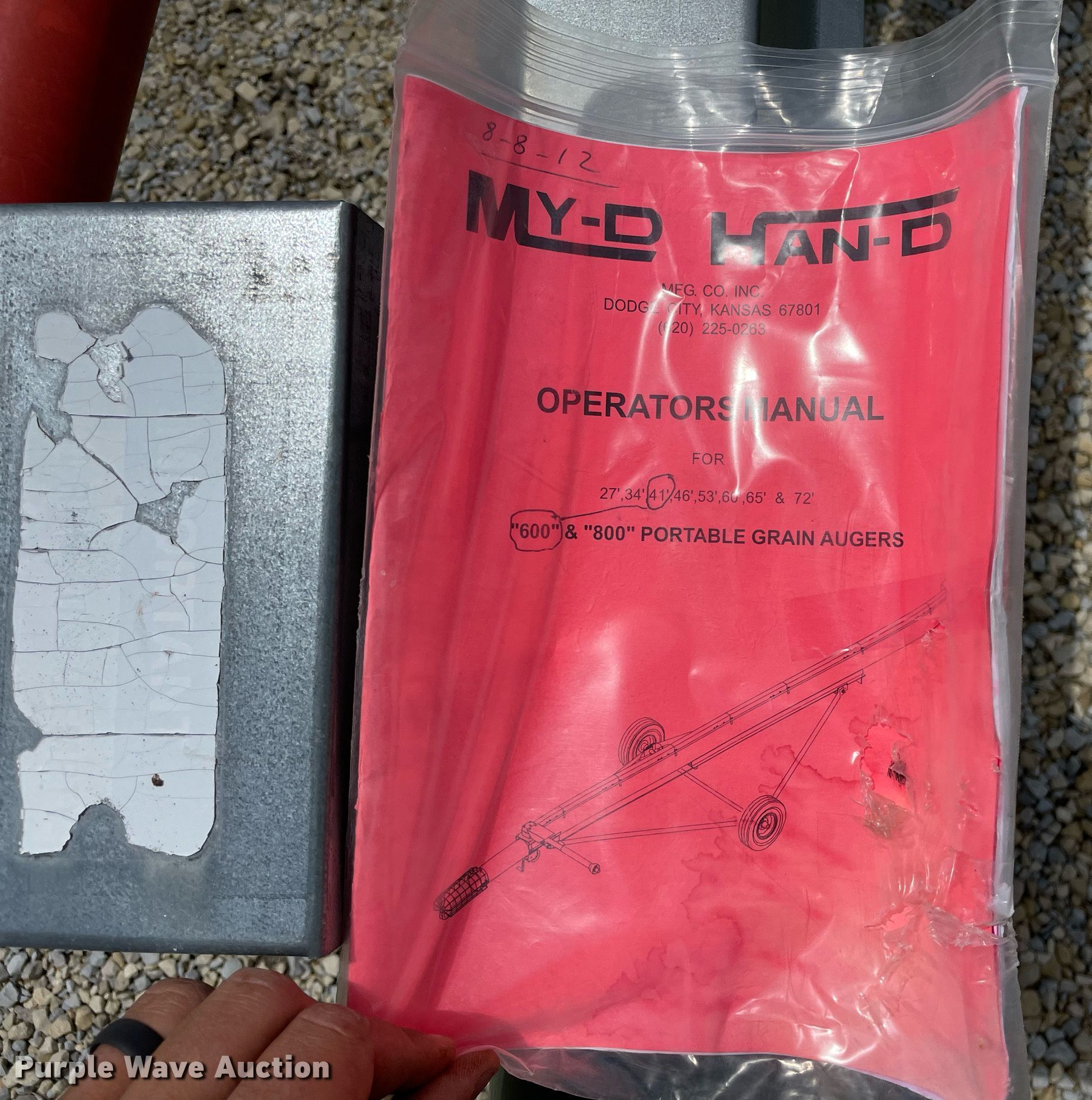 My-D Han-D 600 auger. Features. Length: 41', Diameter: 6", PTO: 540. Tires Size: 205/75D15. Lyons, KS 67554