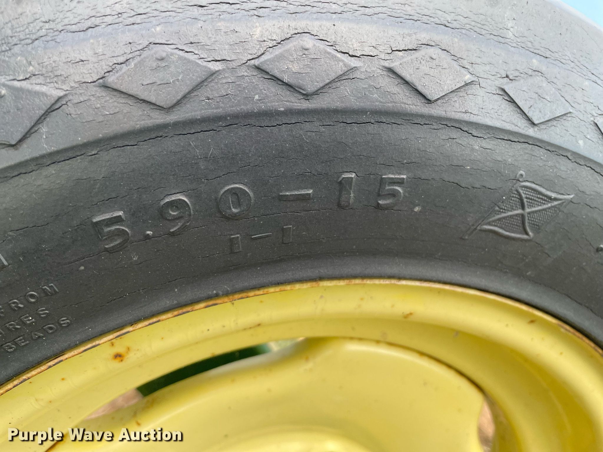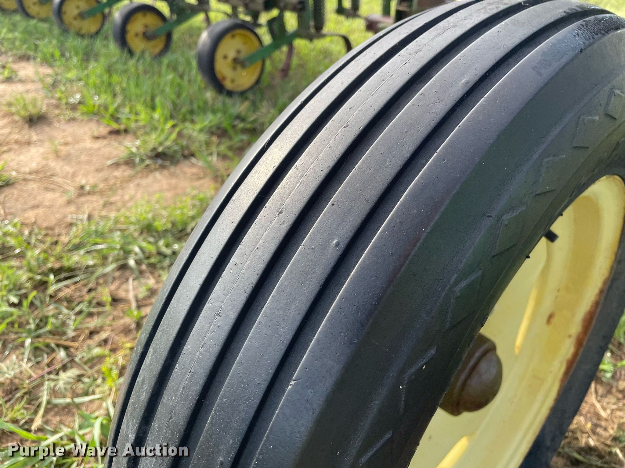 John Deere 825 row crop cultivator. Overall width: 20' 8", Serial: N00825X007501. Features Number of rows: 8, Row spacing: 30", Shanks, Gauge wheels. Tires Tire size: 5.90-15, Gauge wheels Size: Solid. Pratt, KS 67124