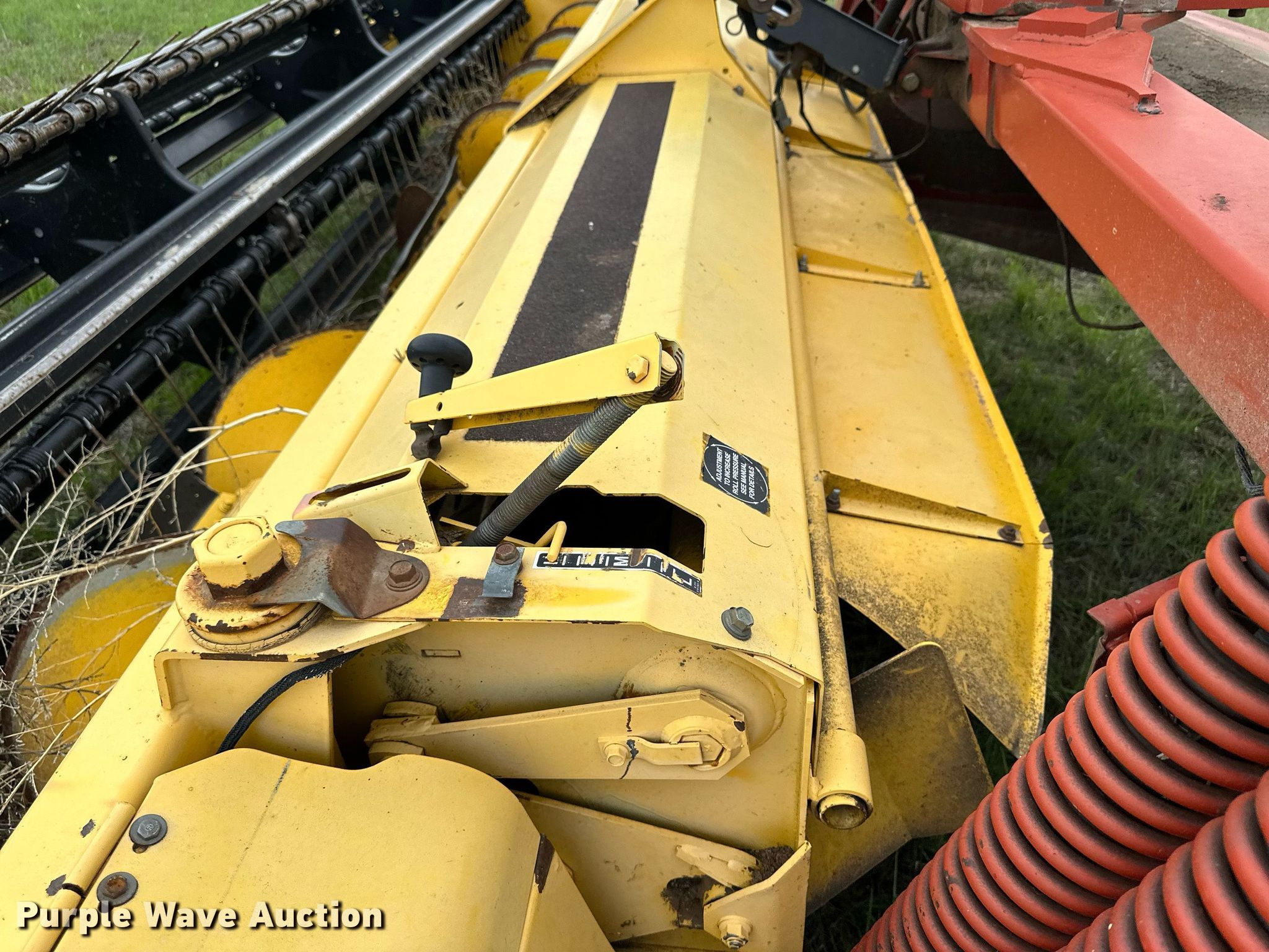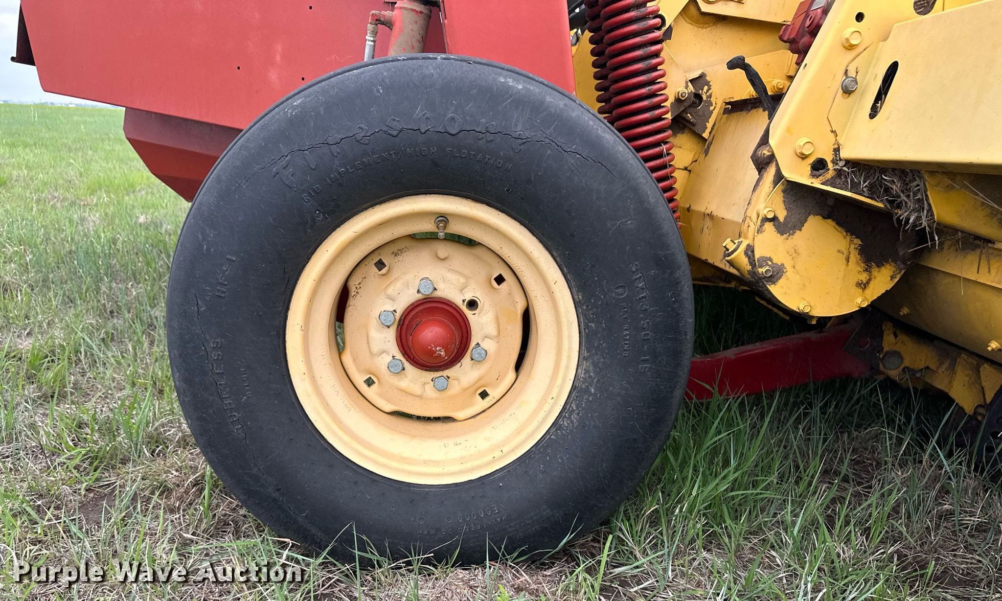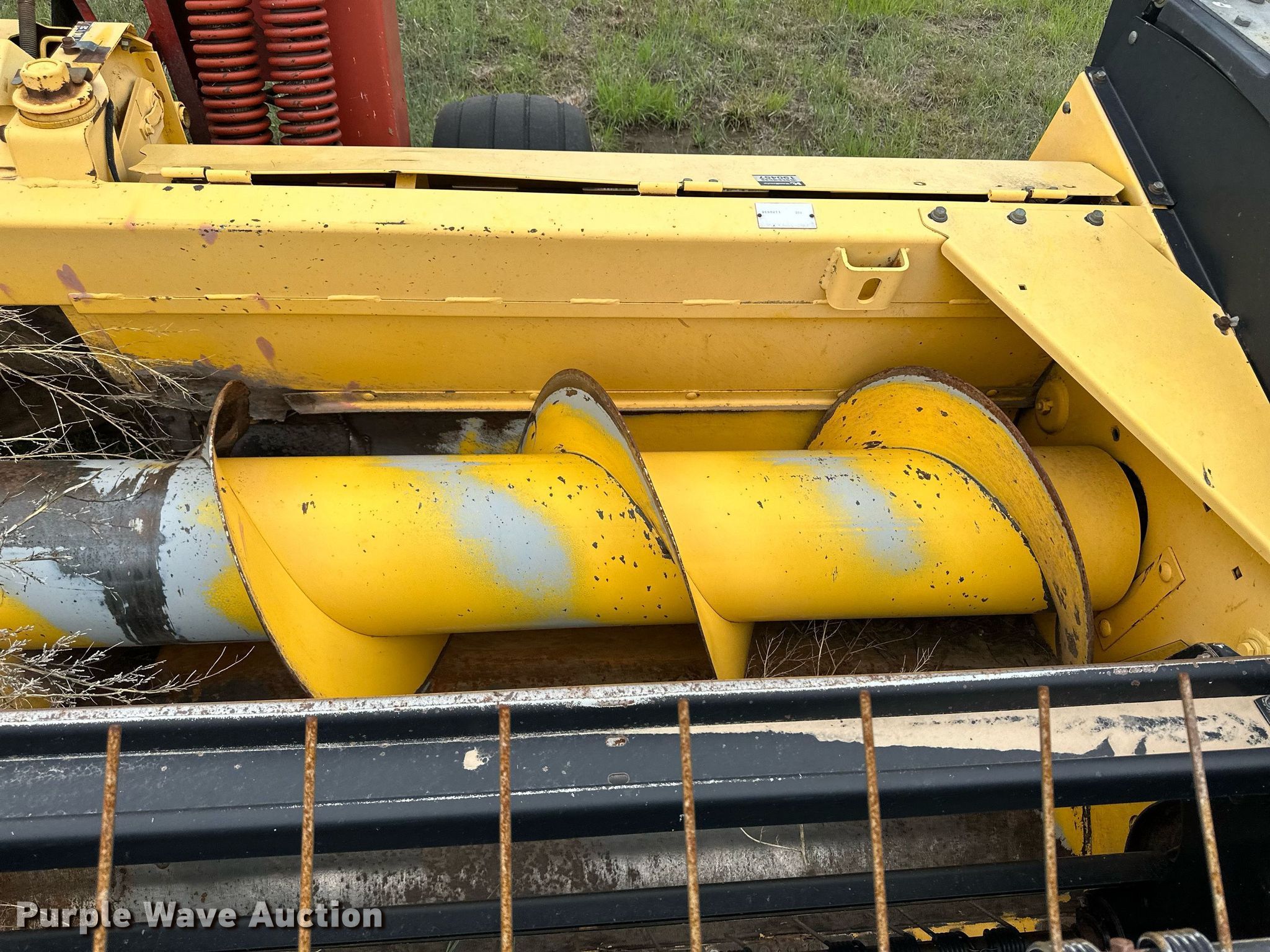 New Holland 1475 swather / windrower. Serial: 1120035. Features PTO: 1000, Hydraulic PTO pump, Center pivot, Hitch Draw bar, Head Sickle, Draper, Width: 18', Hydraulic head tilt, Conditioners: Rubber/ rubber. Tires Size: 31x13.50-15. Hanston, KS 67849