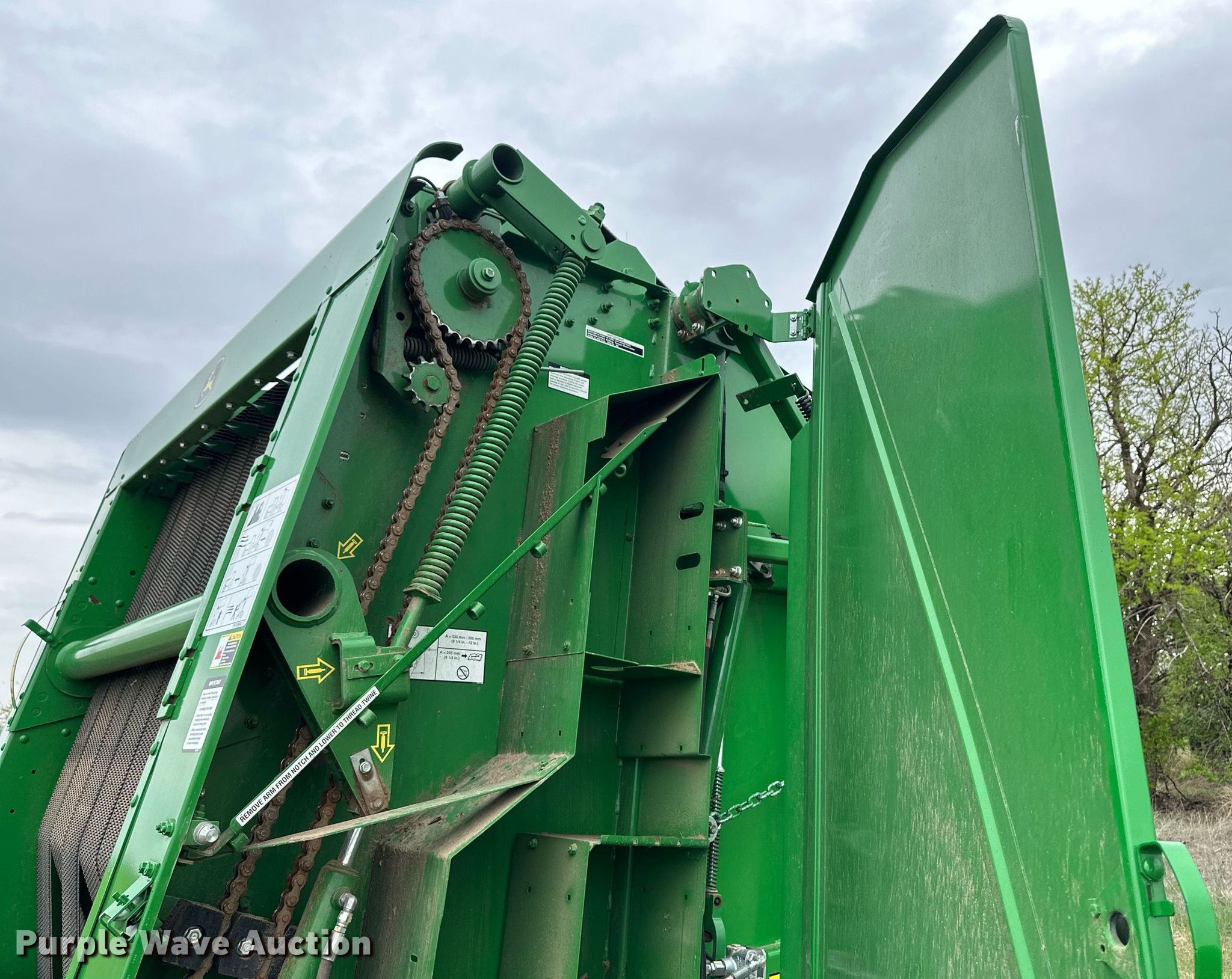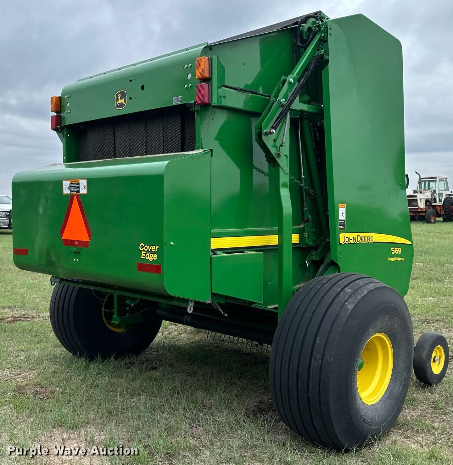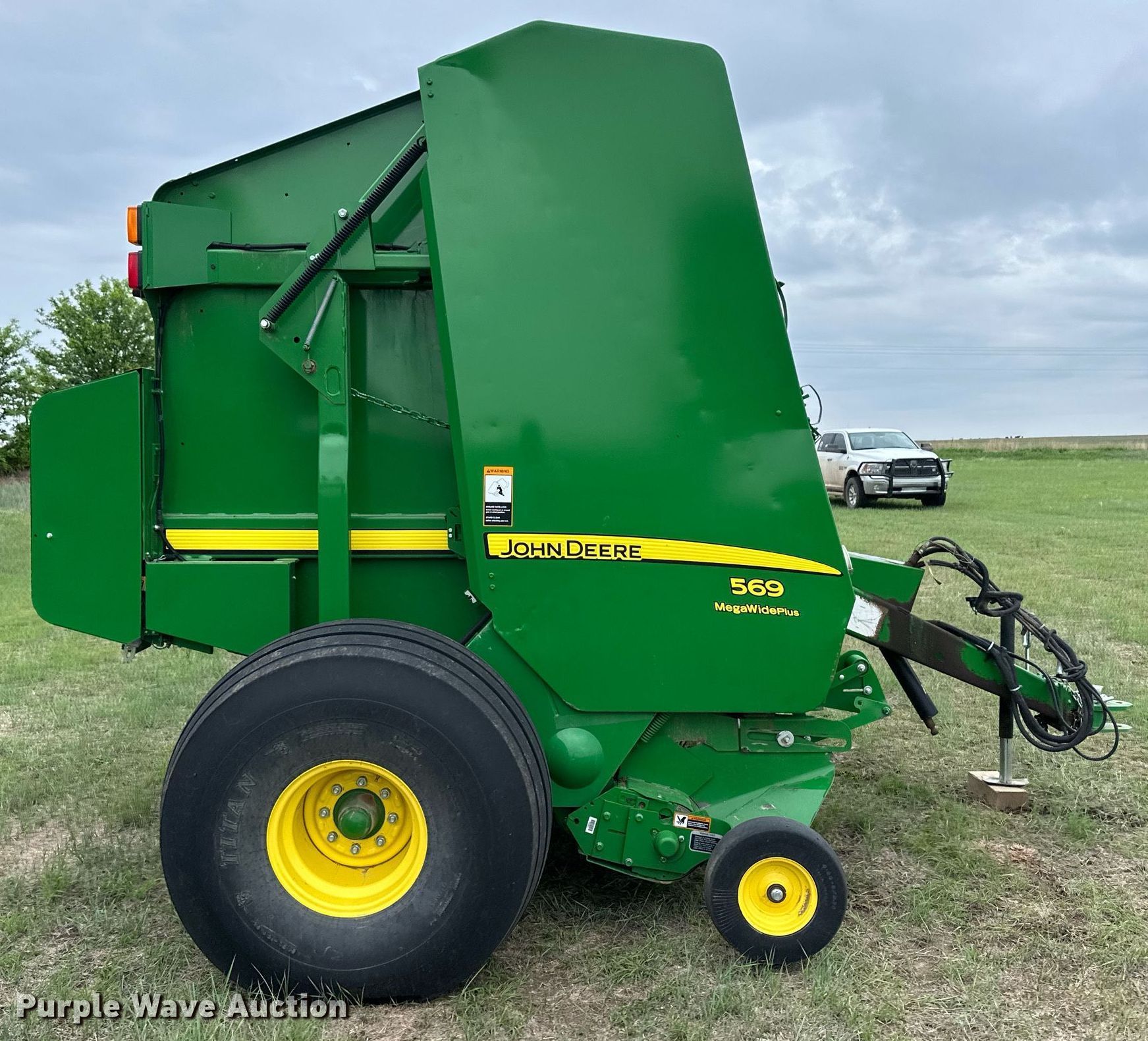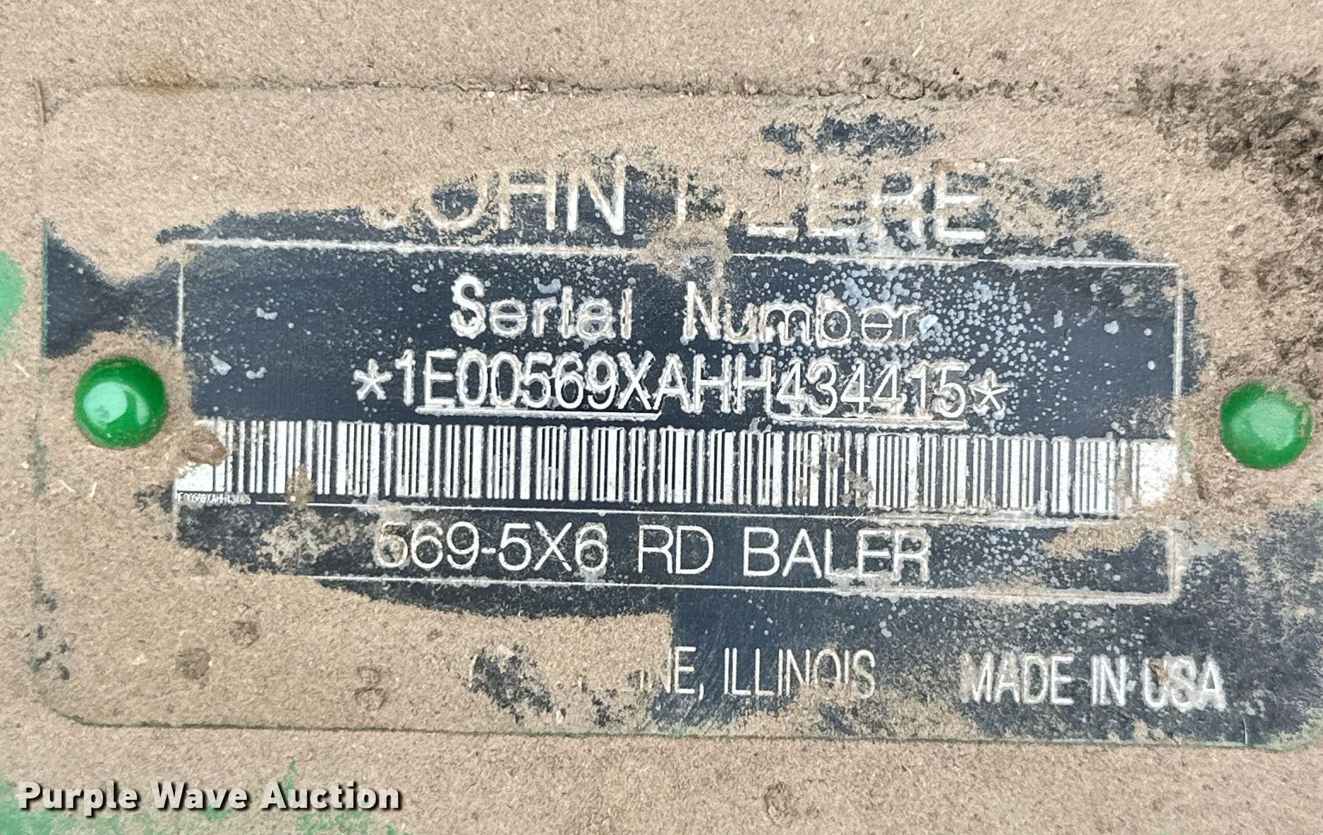 Purple Wave is selling a used Round Baler in Kansas. This item is a 2017 John Deere 569 Mega Wide Plus round baler with the following: Serial: 1E00569XAHH434415