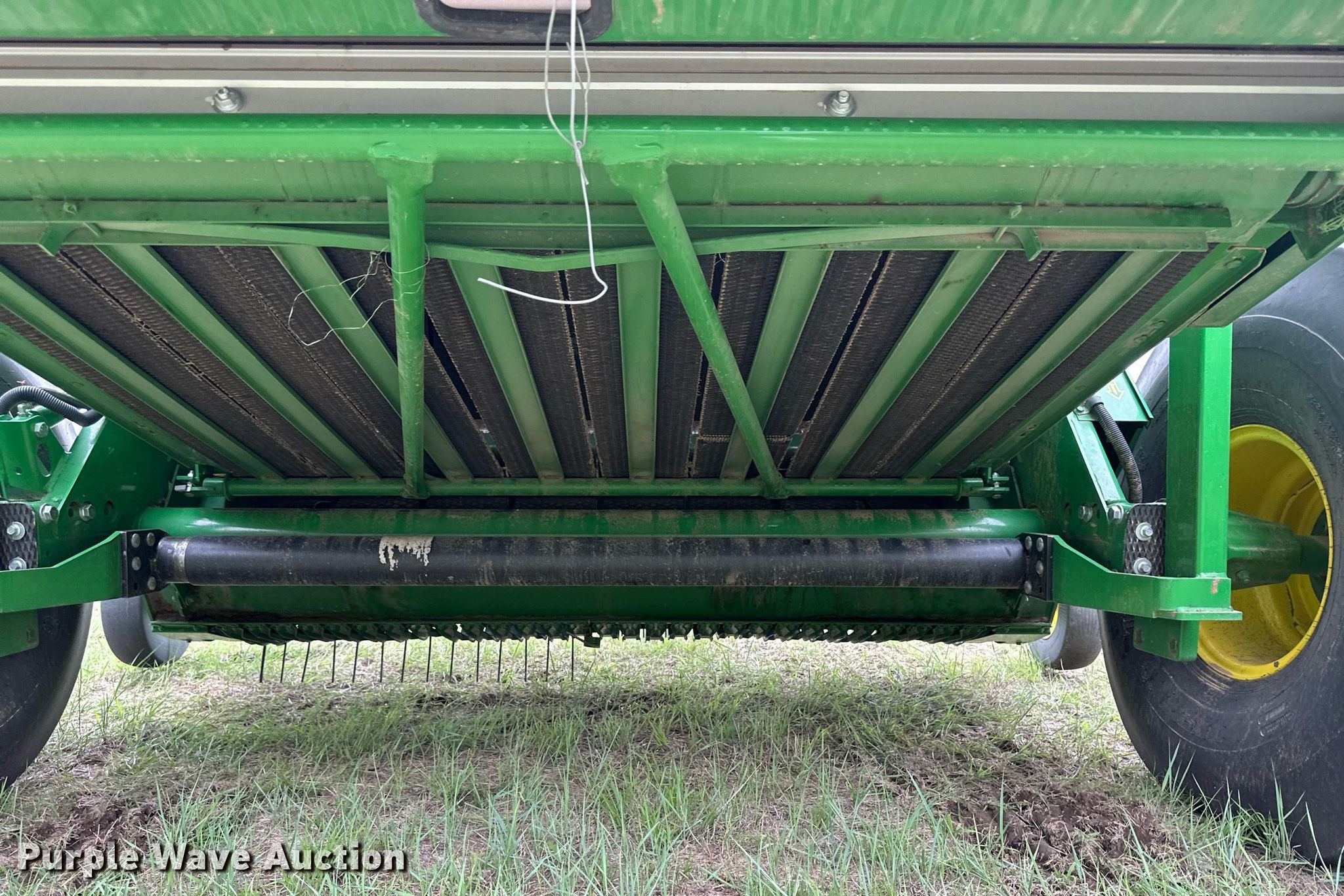 2017 John Deere 569 Mega Wide Plus round baler. Serial: 1E00569XAHH434415. Features PTO: 1000, Monitor John Deere, Silage special, Transport lights, Gauge wheels Size: 4.80-8/3.75, Pickup width: 6', Hydraulic pickup lift, Bale size: 5' x 6', Twine tie, Net-wrap. Tires Size: 21.5L-16.1SL. Hanston, KS 67849