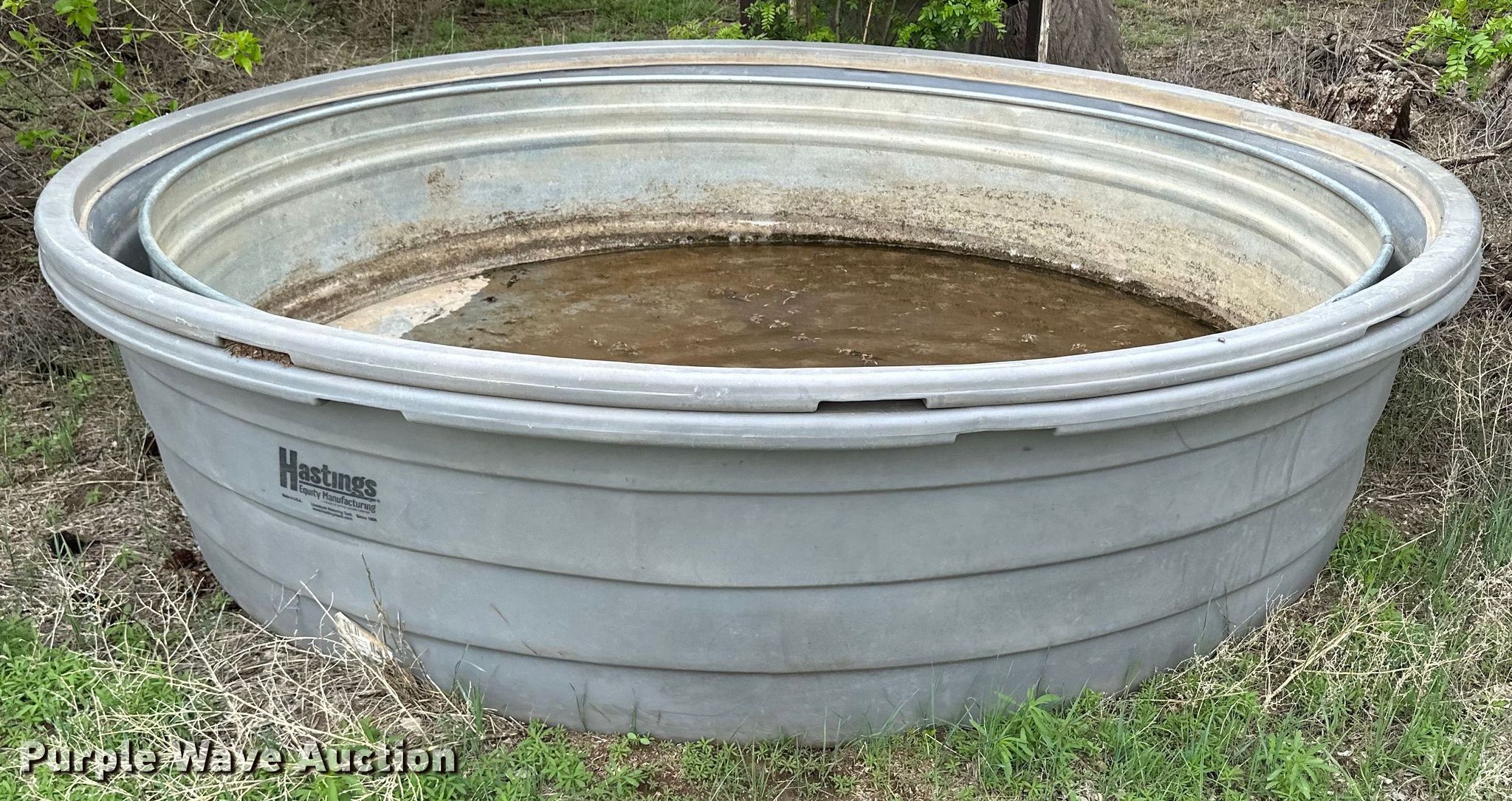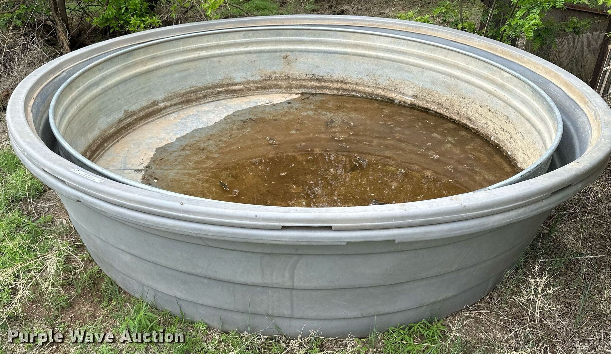 Purple Wave is selling a used Livestock Equip. in Kansas. This item is a (3) stock tanks with the following: (2) poly tanks, Diameter: 10', Galvanized steel, Diameter: 9'