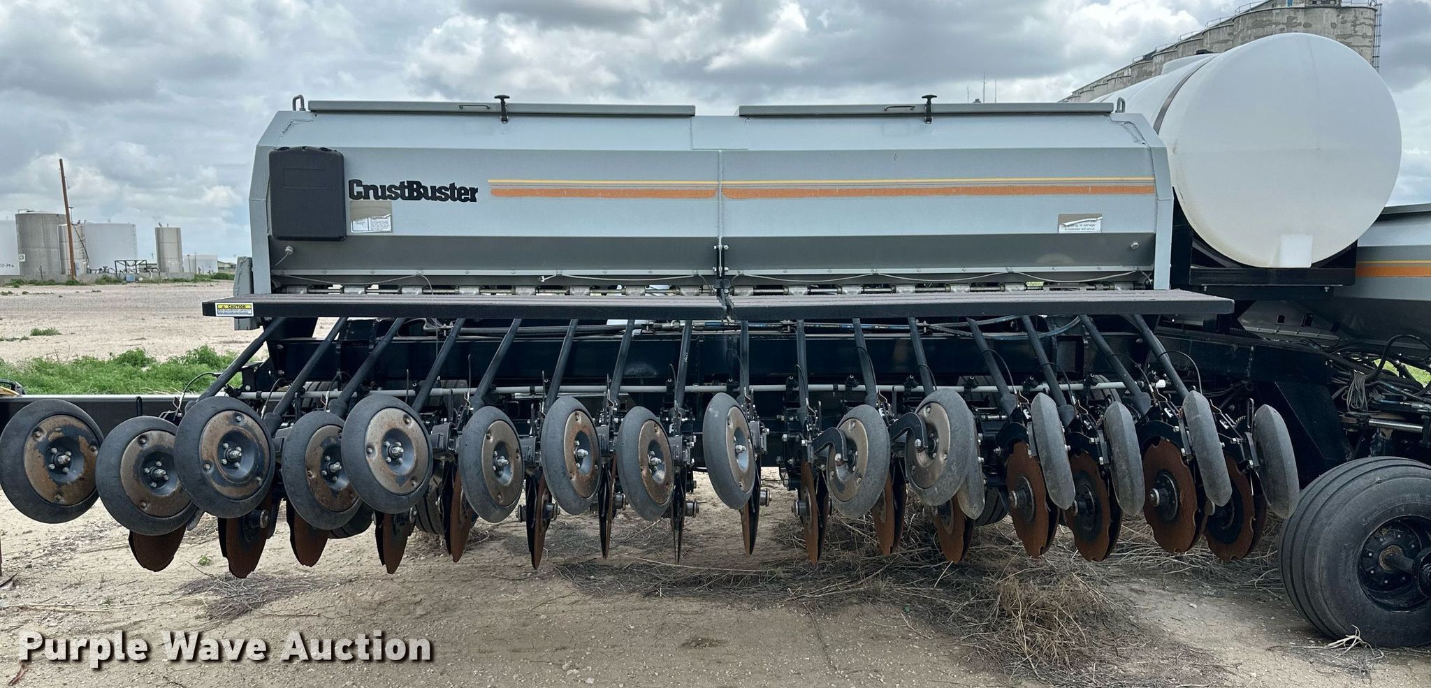 Purple Wave is selling a used Grain Drill or Seeder in Kansas. This item is a CrustBuster 4740 grain drill with the following: Width: 40', Row units: 48, Row spacing: 10"