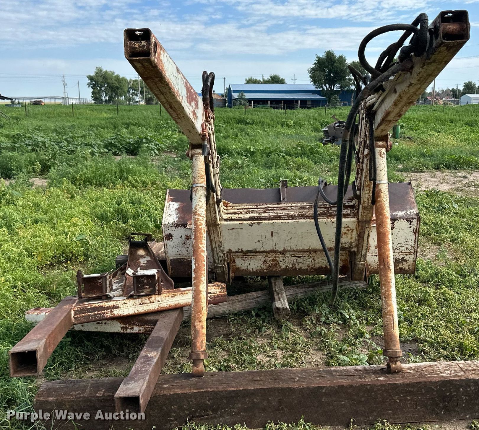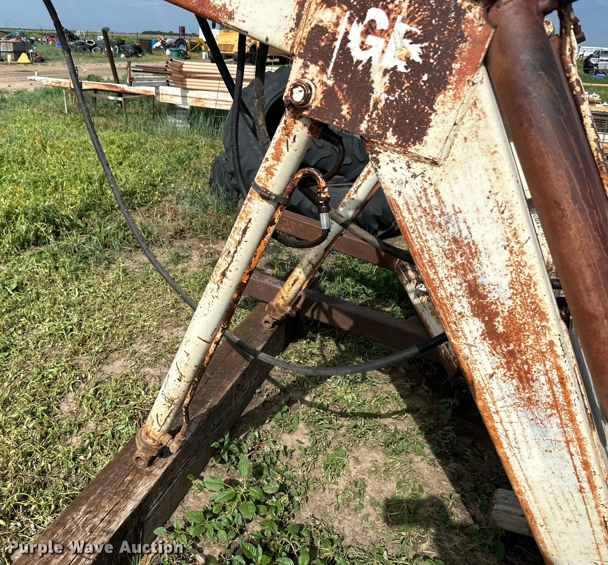 Purple Wave is selling a used Ag Tractor Loader or Attach. in Kansas. This item is a Great Bend loader with the following: Bucket, Width: 72"