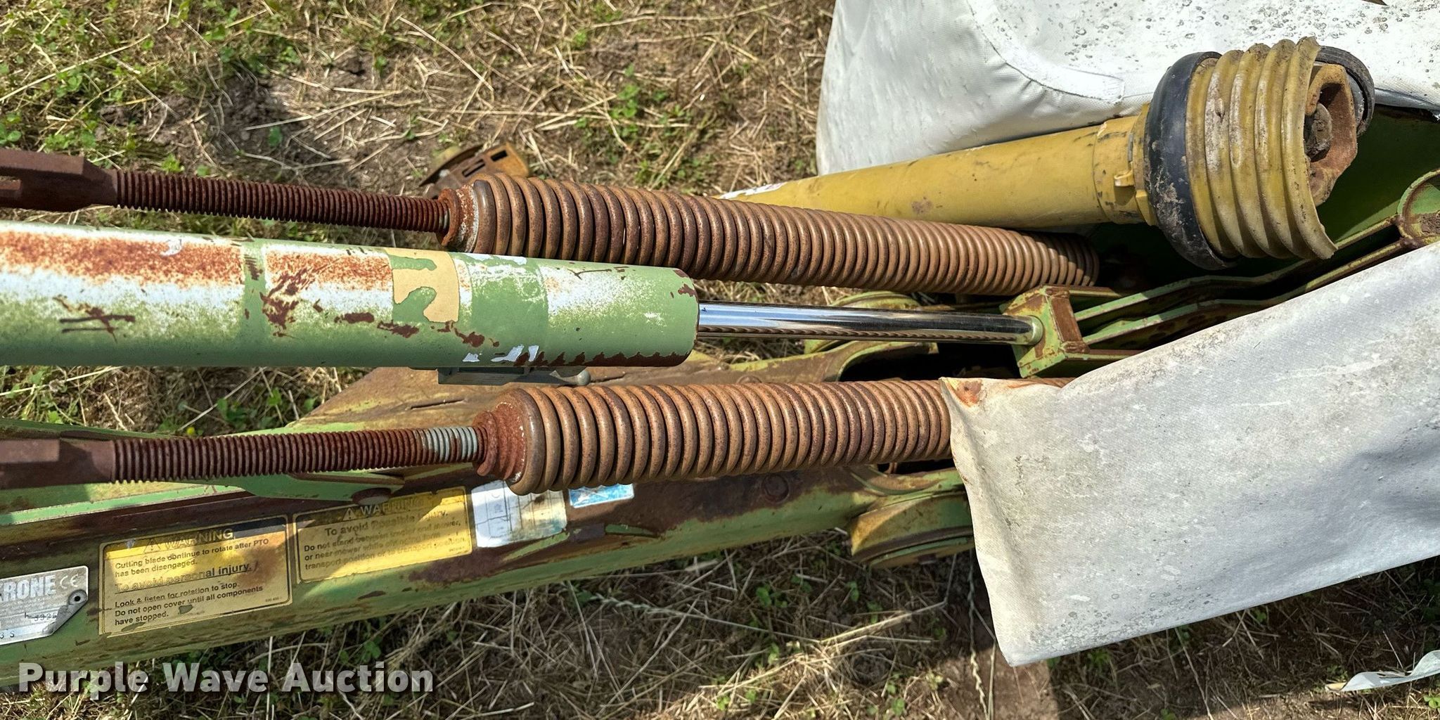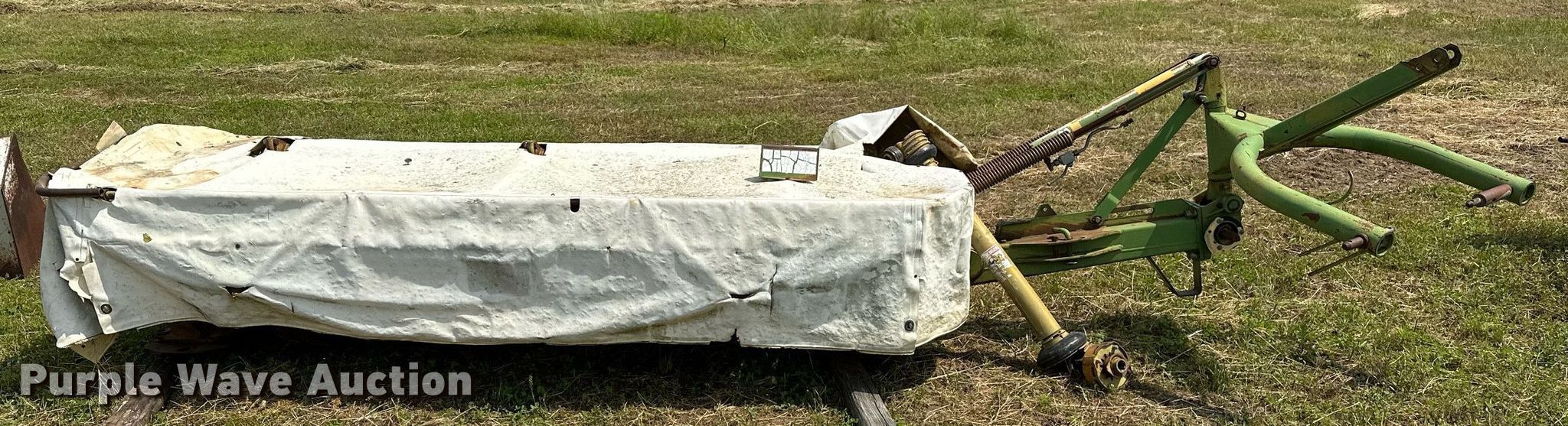 Krone AM283S disc mower. Serial: 392537. Features Width: 9', Hydraulic fold, PTO: 540, Hitch: Three point. Notes PTO shaft U-joint broken, Non-operational unit. 100097 Oklahoma 56. Okemah, OK 74859