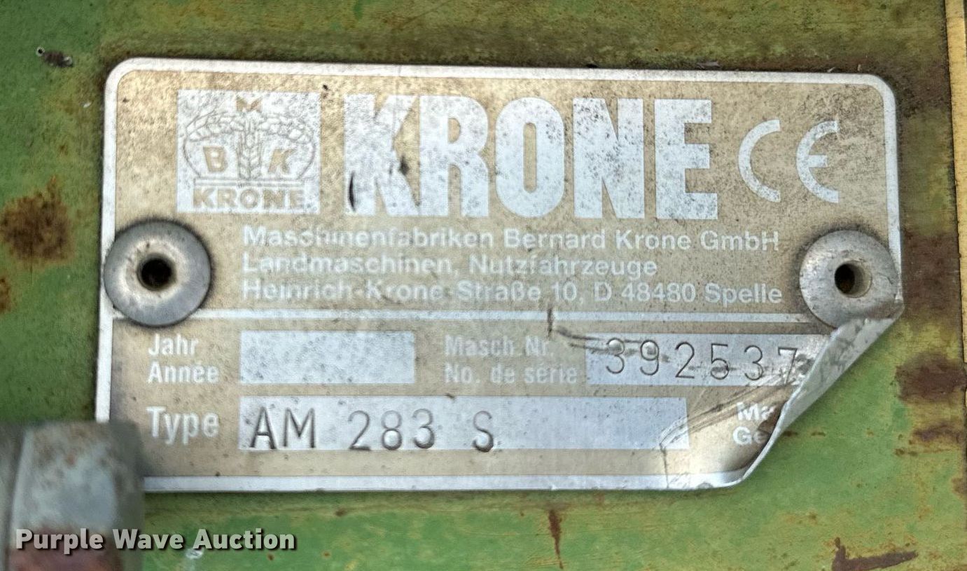 Purple Wave is selling a used Disc or Sickle Mower in Oklahoma. This item is a Krone AM283S disc mower with the following: Serial: 392537