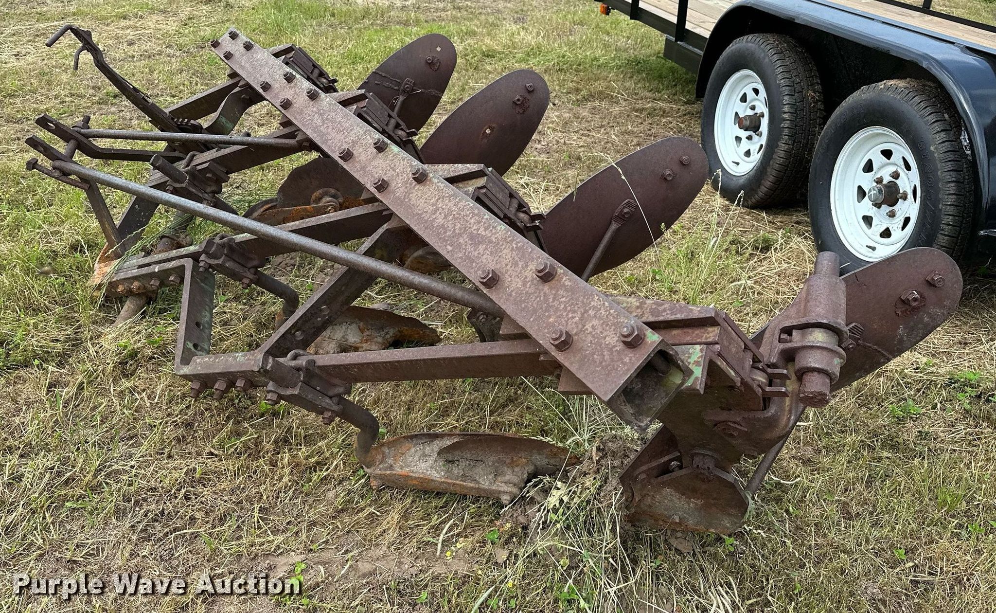 Purple Wave is selling a used Plow in Oklahoma. This item is a Four bottom plow with the following: Hitch: Three point