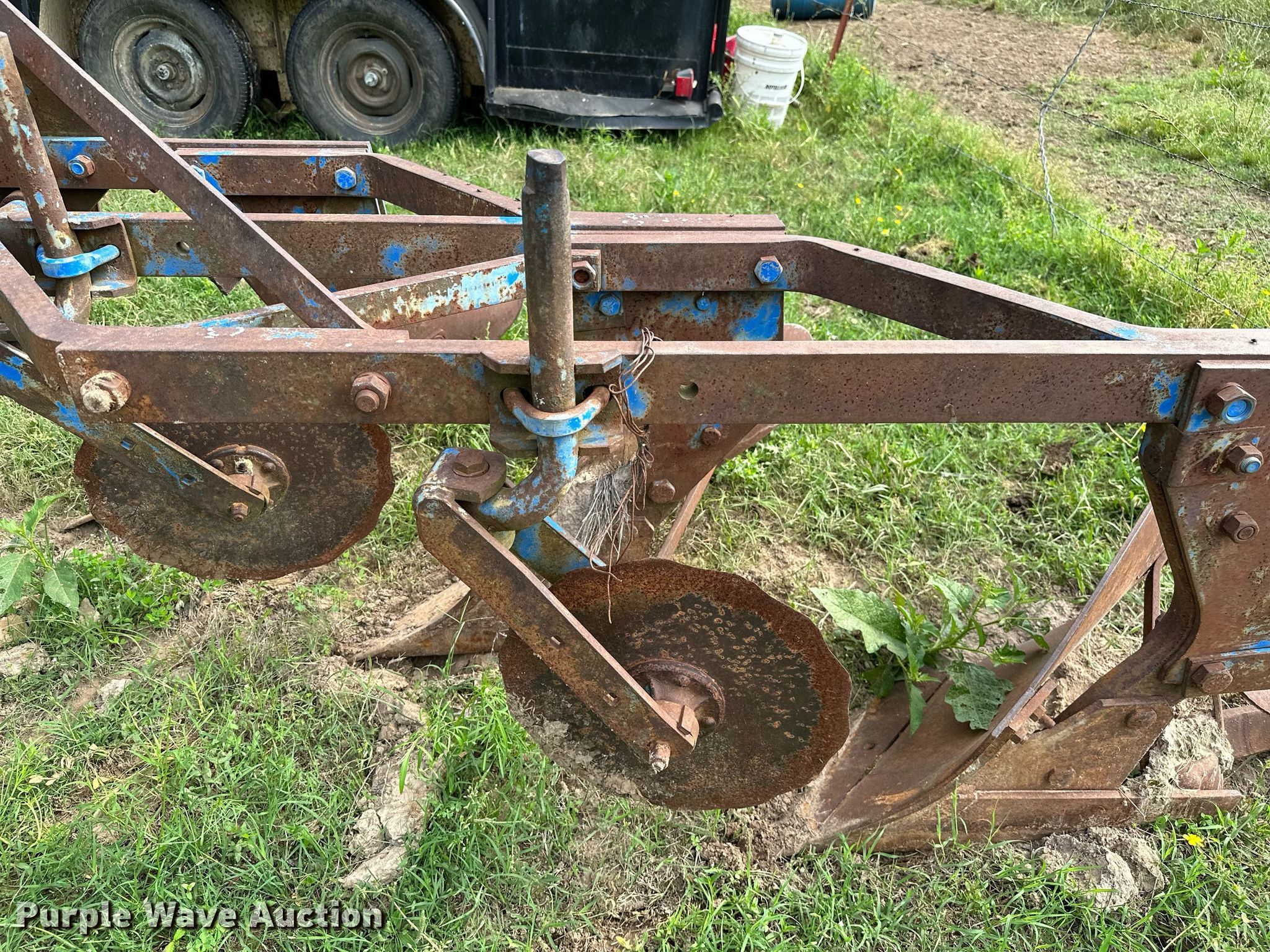 Purple Wave is selling a used Plow in Oklahoma. This item is a Ford three bottom plow with the following: Overall width: 46"