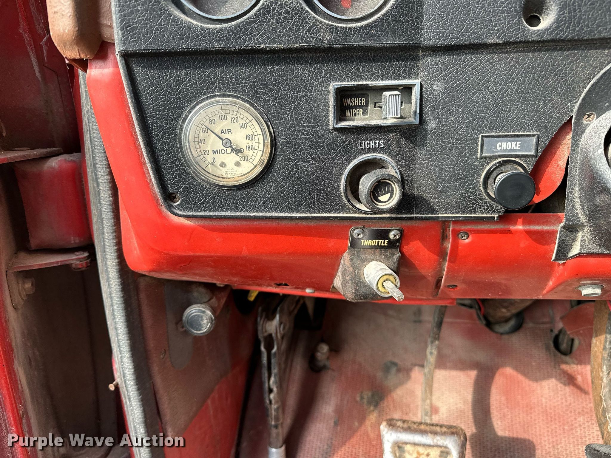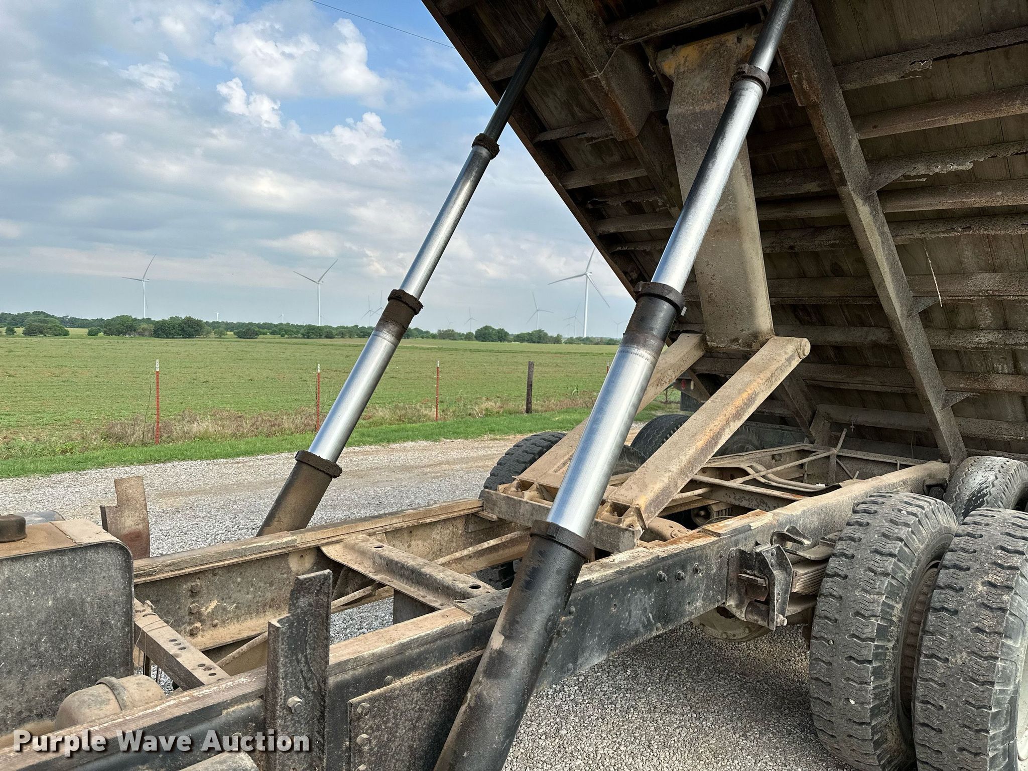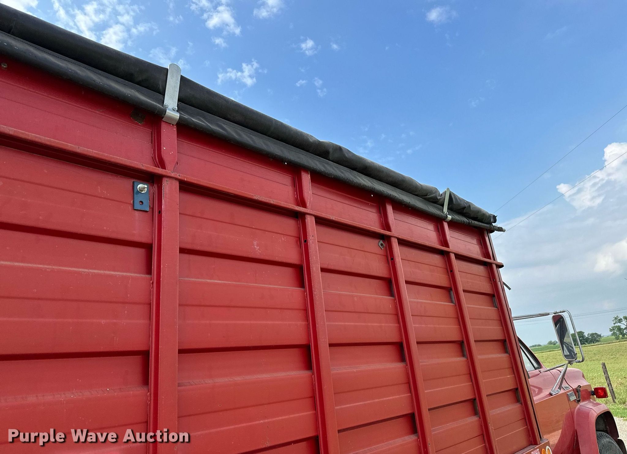1977 GMC Sierra 6500 grain truck. Miles: 73,174 on odometer, VIN: TCE677V557569. Engine Cylinders: 8, Fuel type: Gas. Transmission Manual, Speed: 5, plus 2. Chassis Axles: Tandem, Tag axle, Suspension: Spring, Brakes: Air, PTO. Interior Heat. Features Dump bed Knapheide , 20' L x 96" W, Side height: 64", Bed type: Steel, Roll tarp, Ram: Dual, End gate: Manual. Tires Size: 10.00-20. Oklahoma classic title. Title distribution may be delayed up to 14 days from verification of funds. 4800 East Kildare Road. Ponca City, OK 74604