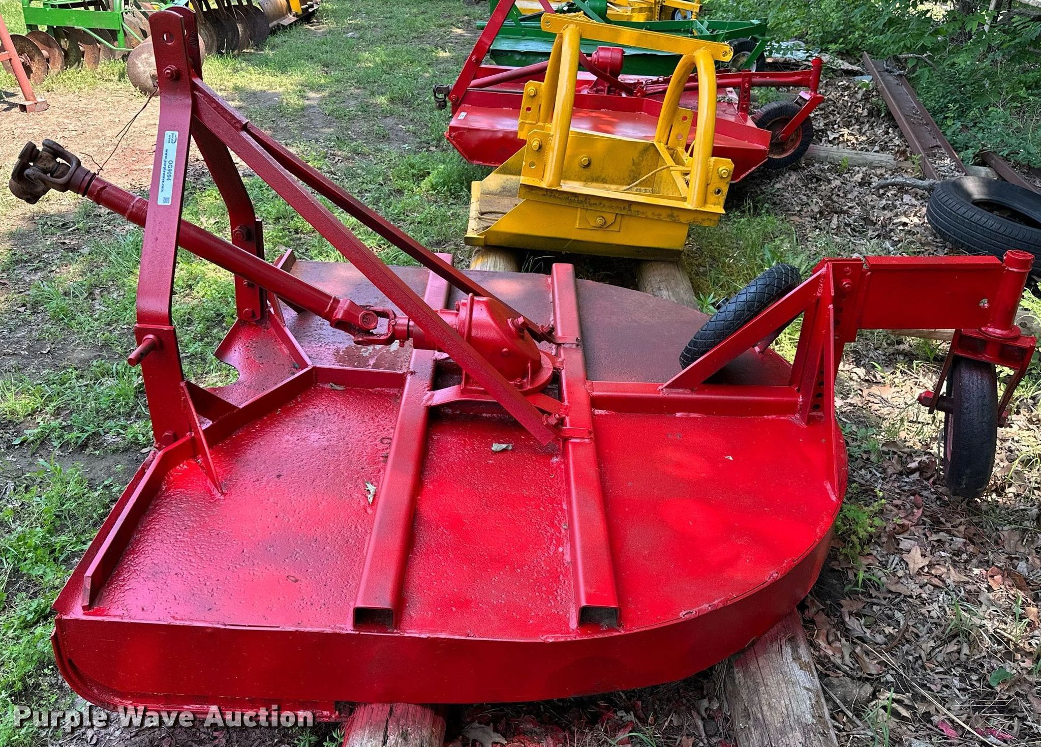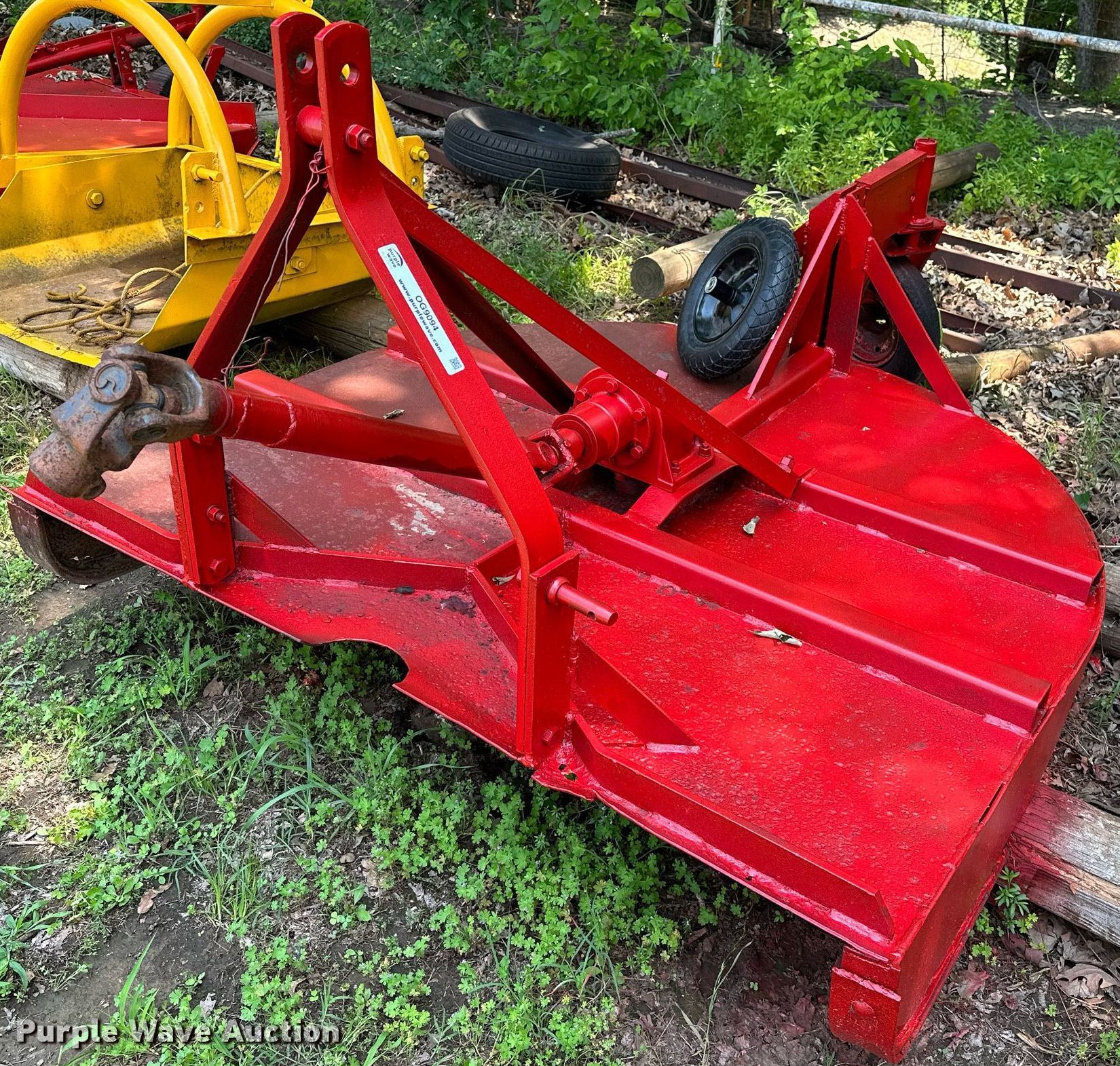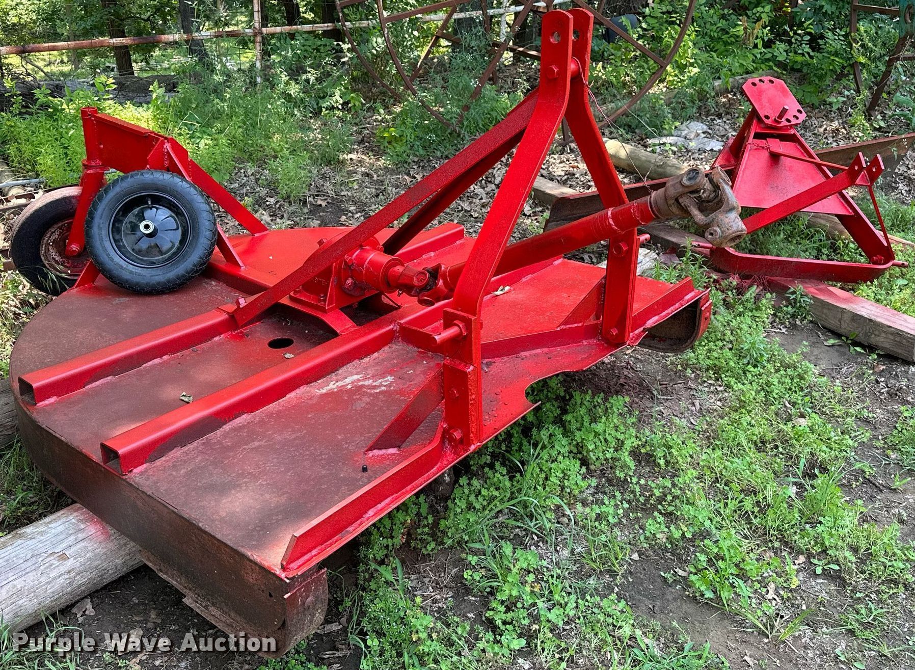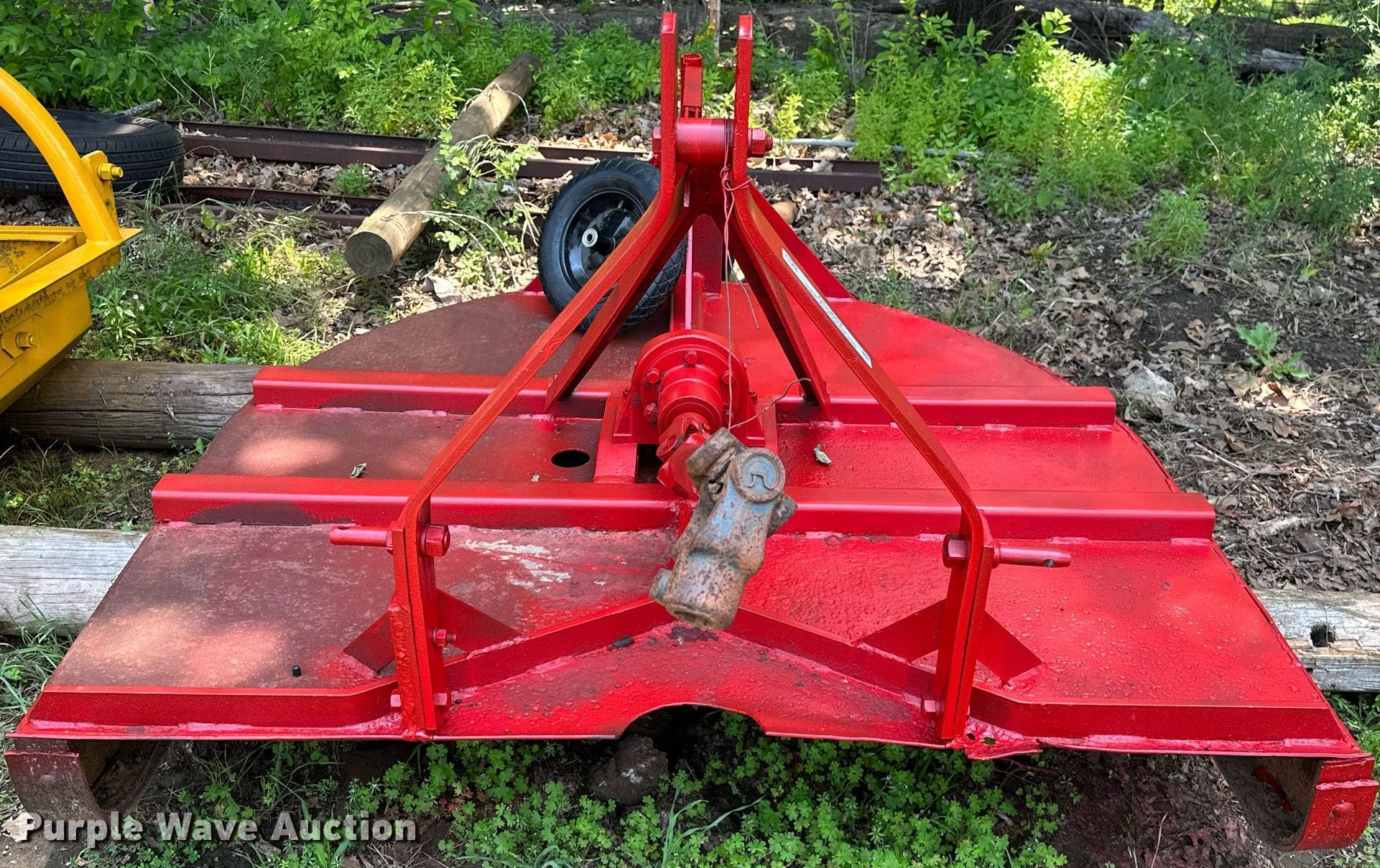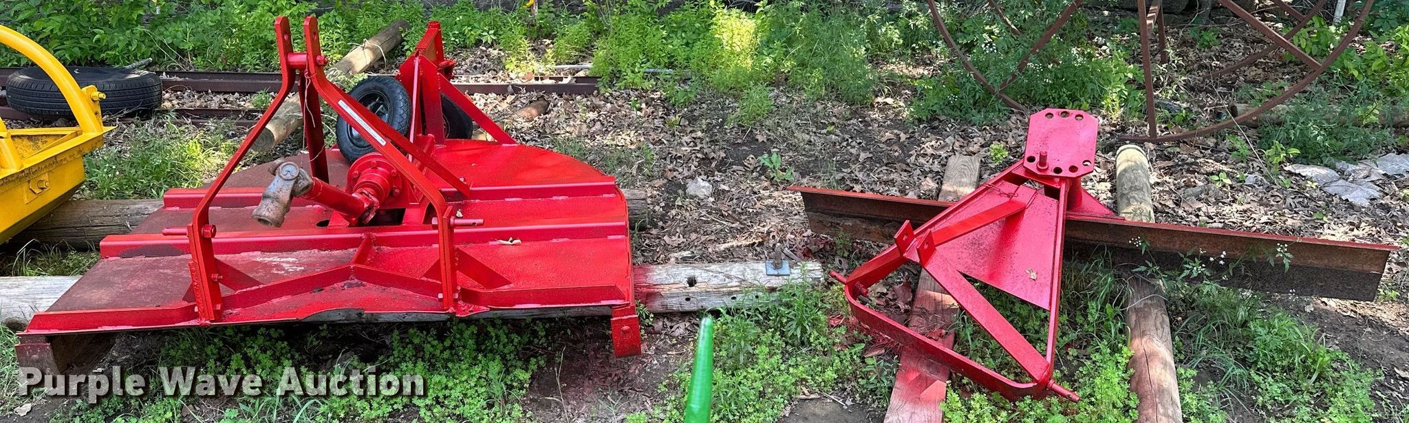 (2) pieces of ag equipment. 72"W blade. Features. Hitch: Three point. Rotary mower. Features Width: 63", PTO: 540, Hitch: Three point. Tires Size: 3.25/3.00-8. Notes Unknown operating condition. Ponca City, OK 74601