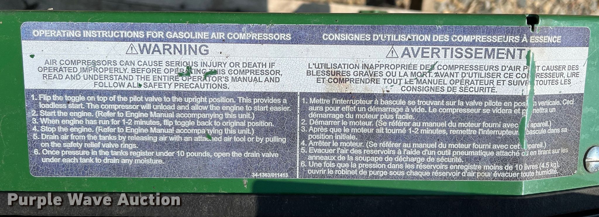 Purple Wave is selling a used Air Compressor in Texas. This item is a John Deere AC2-8GH air compressor with the following: Serial: 20218310